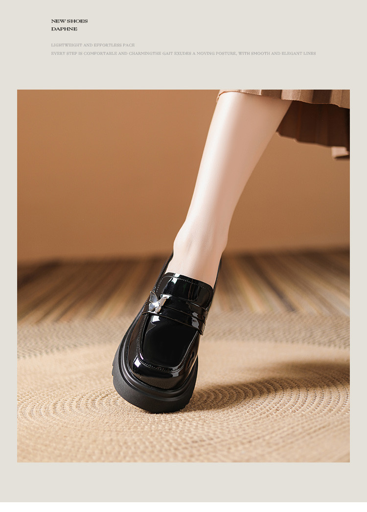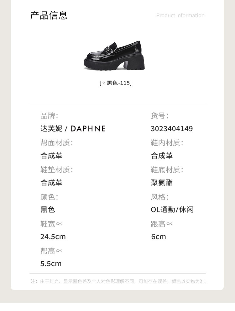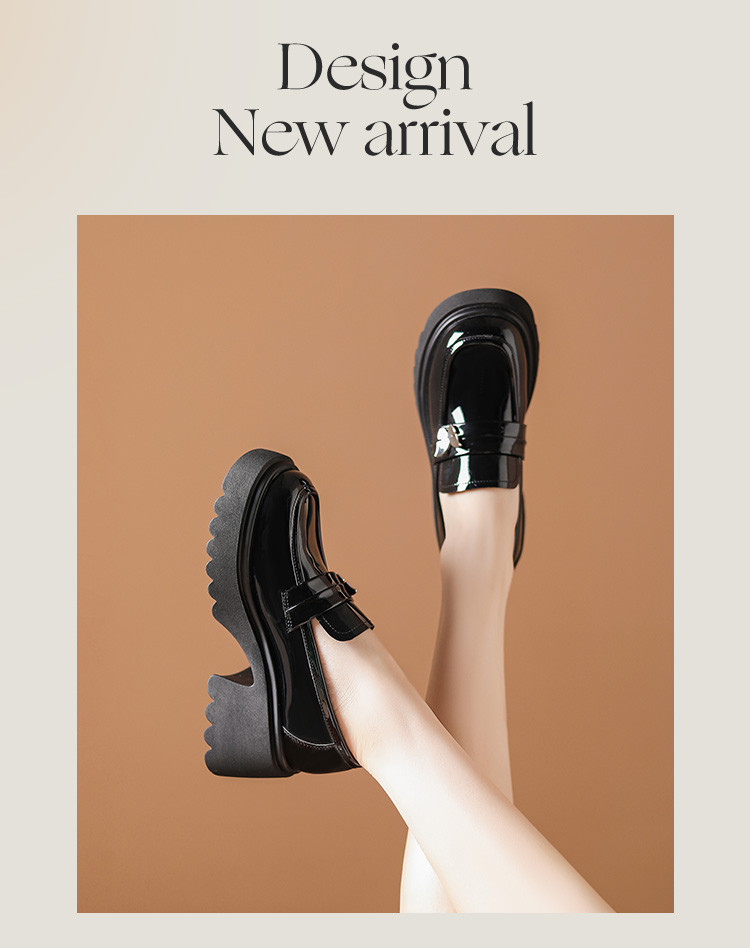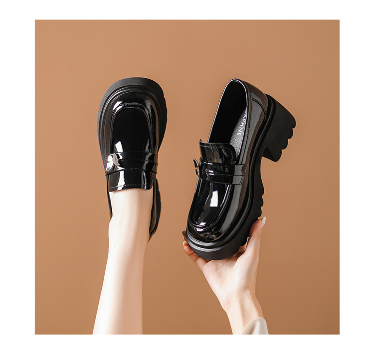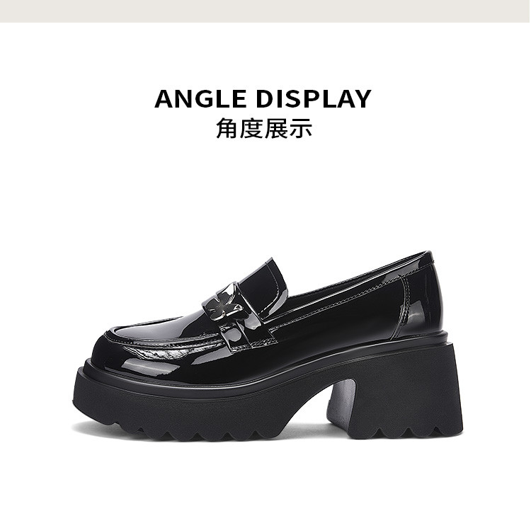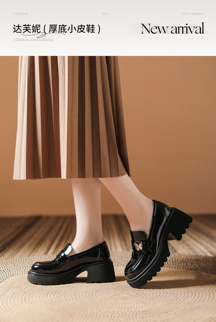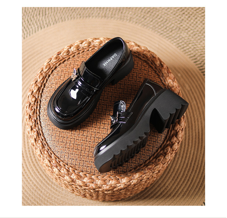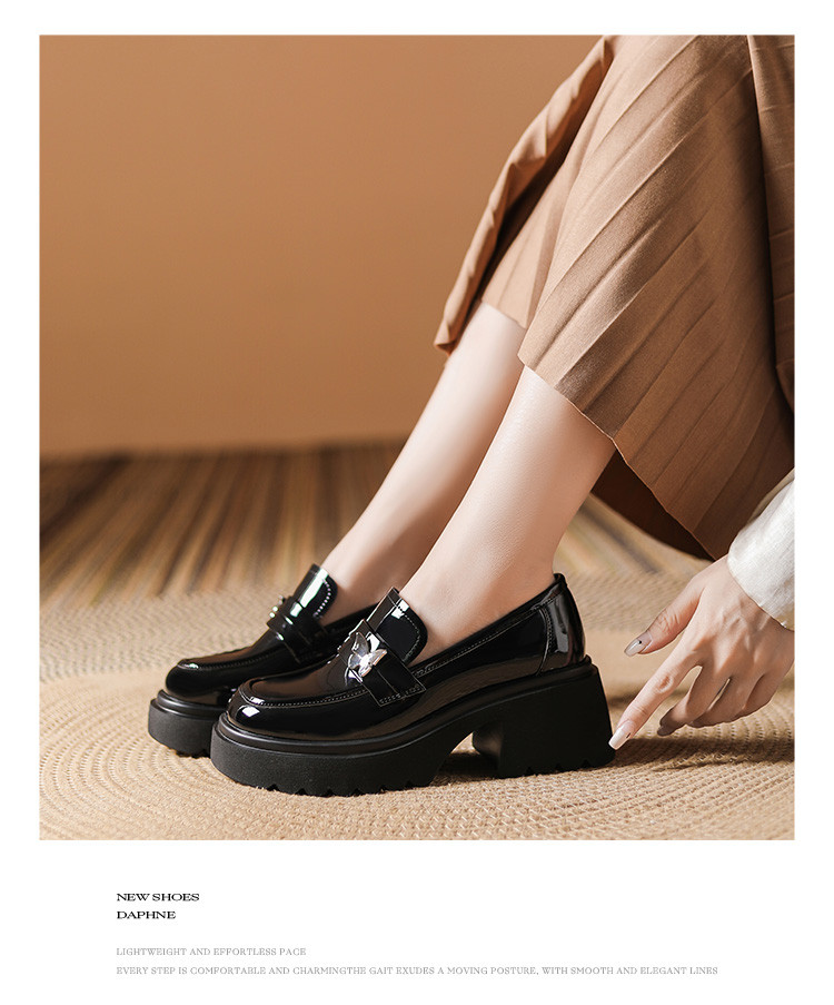 商品名称:黑色百搭厚底乐福鞋女春秋小蝴蝶女鞋子英伦风粗跟增高女单鞋 993306