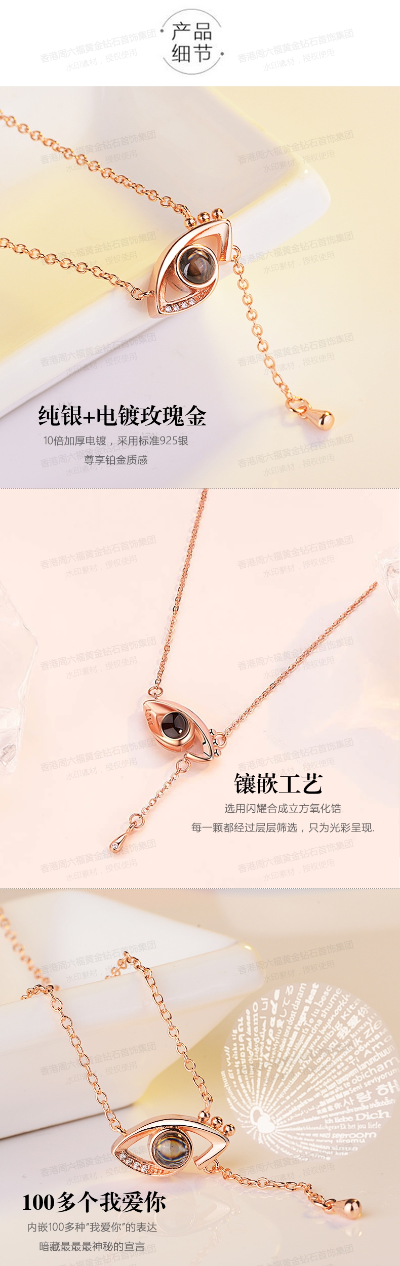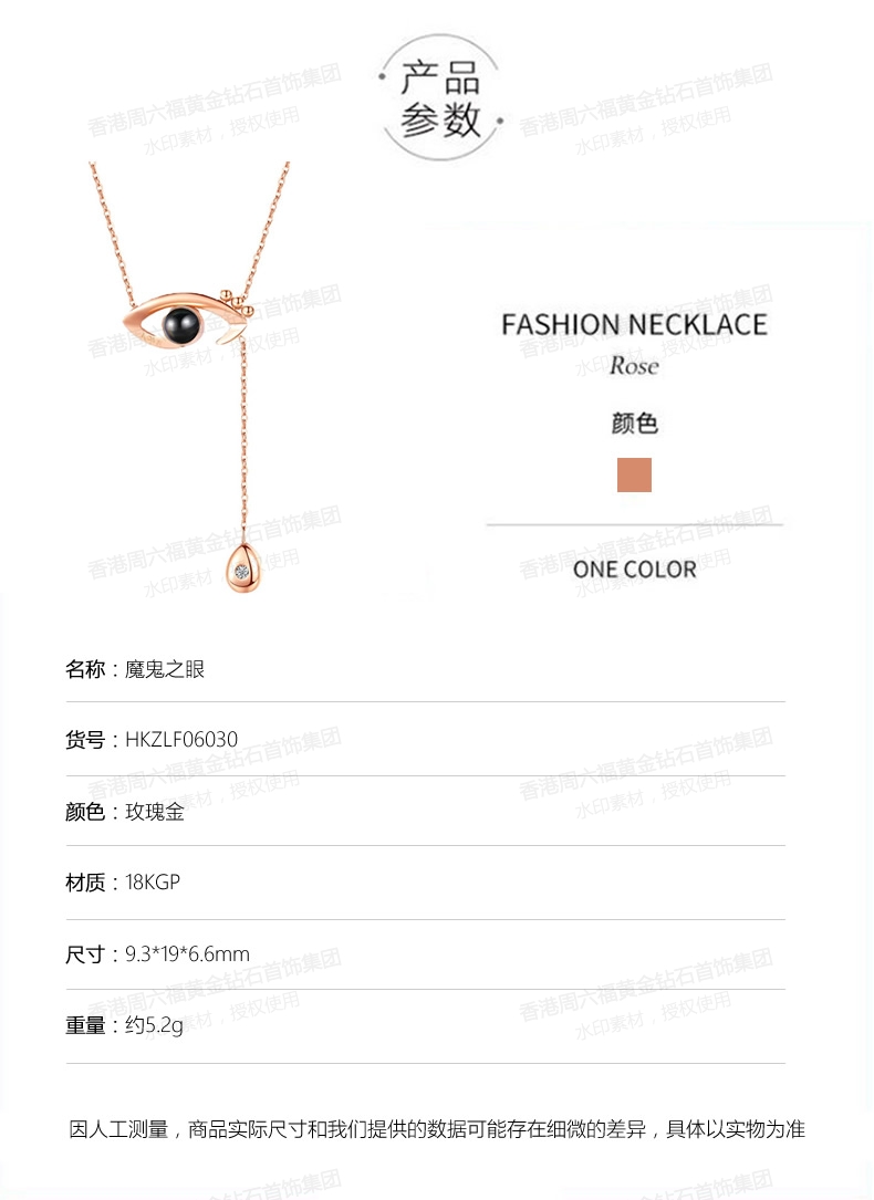 商品名称:香港周六福天然南非真钻项链-眼睛 净重约2克