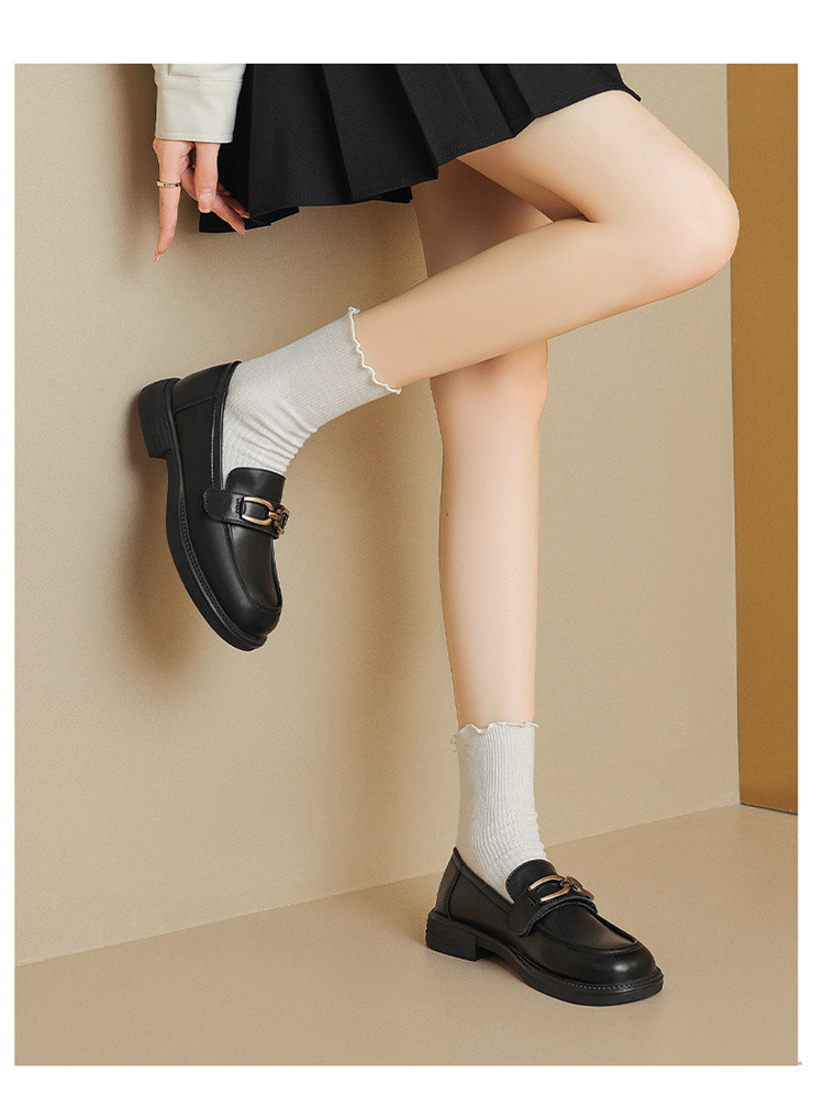 商品名称:【多种魔术贴饰扣】夏季女单鞋低帮百搭厚底乐福鞋女鞋JK制服鞋 600983