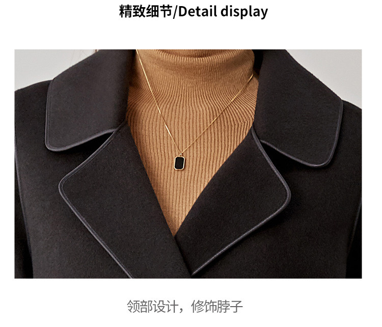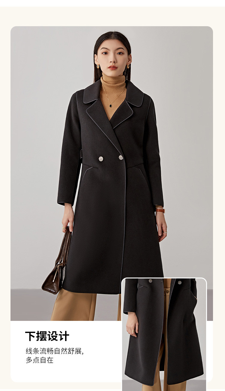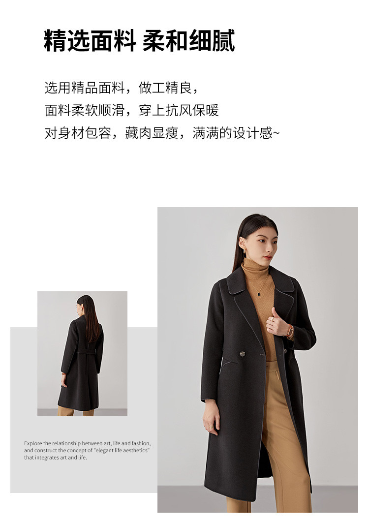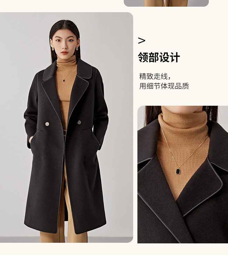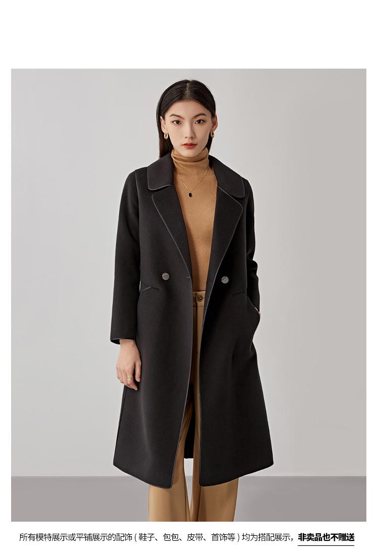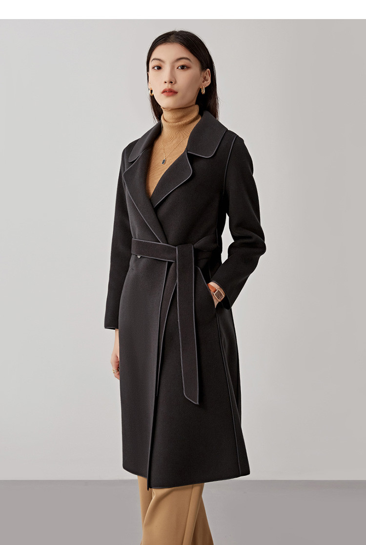 商品名称:秋冬系带100%绵羊毛大衣女式长款休闲显瘦双面呢外套 994719