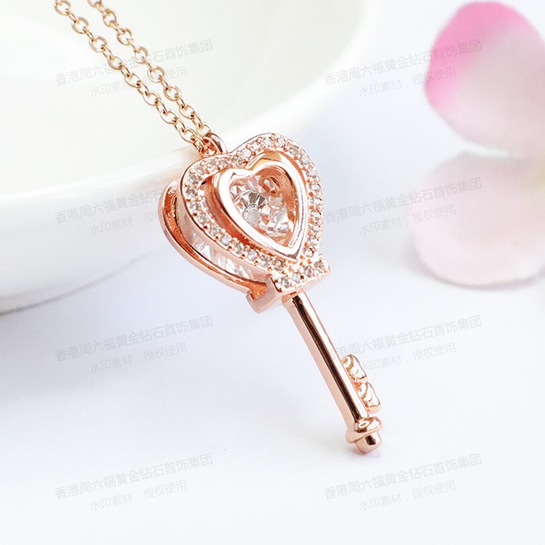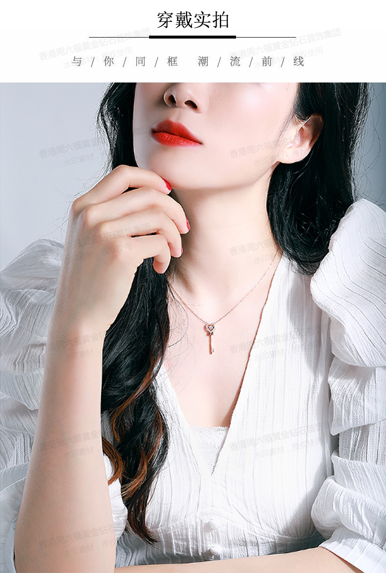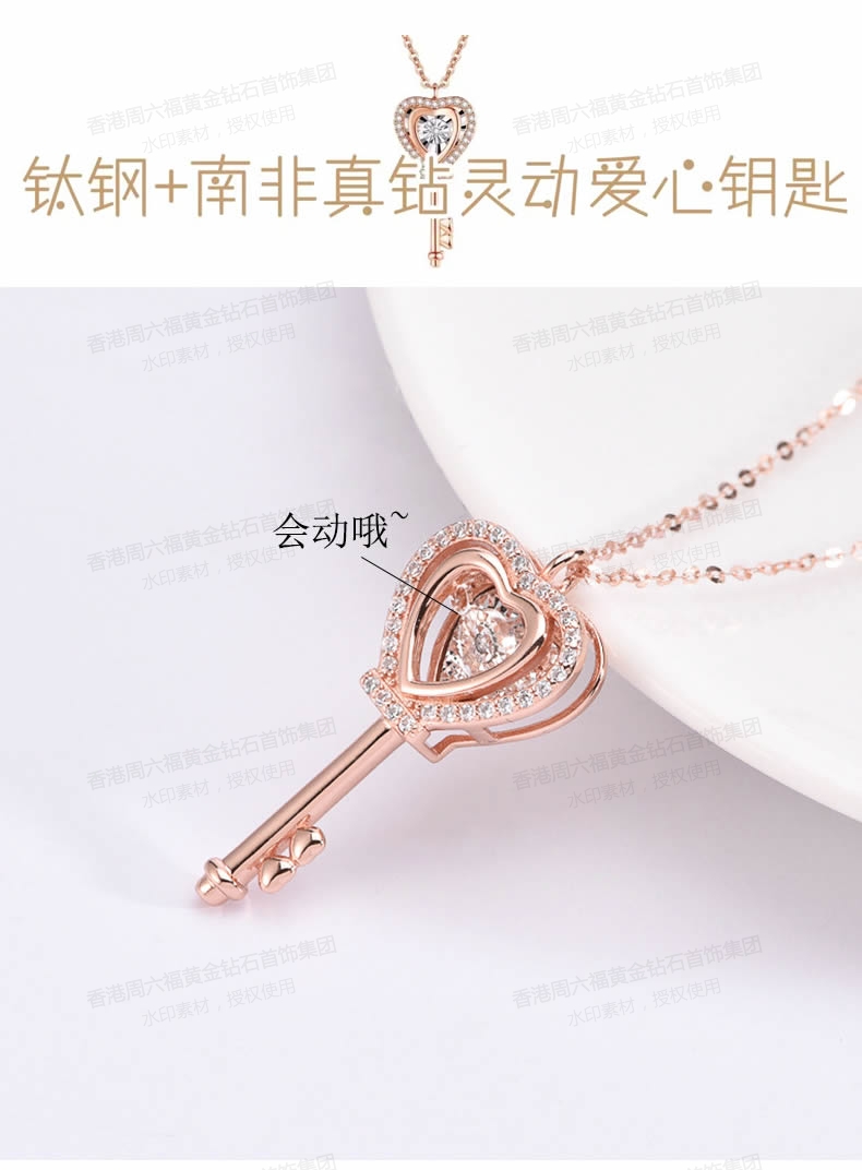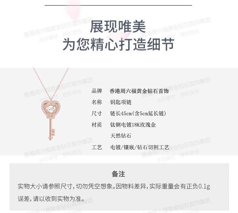 商品名称:香港周六福天然南非真钻项链-灵动爱心钥匙 净重约2克
