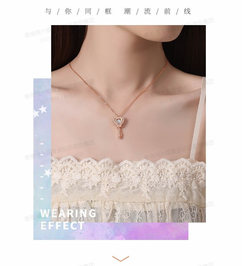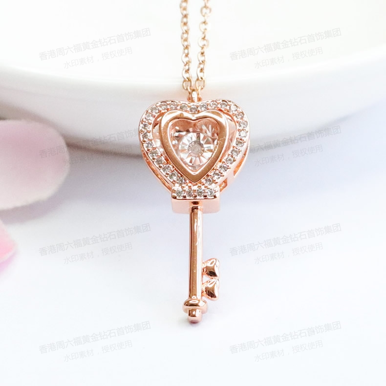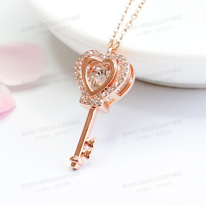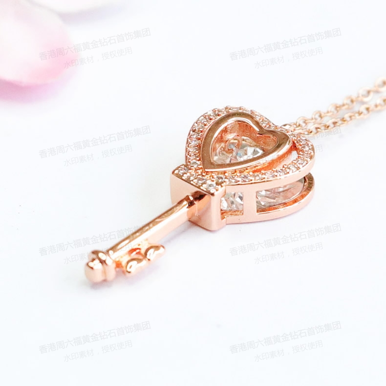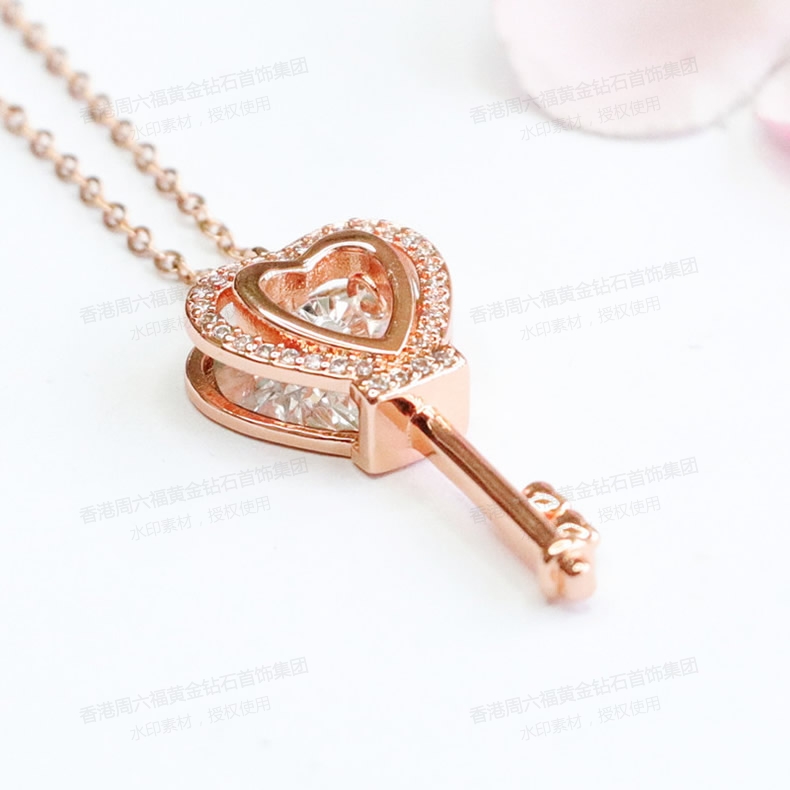 商品名称:香港周六福天然南非真钻项链-灵动爱心钥匙 净重约2克