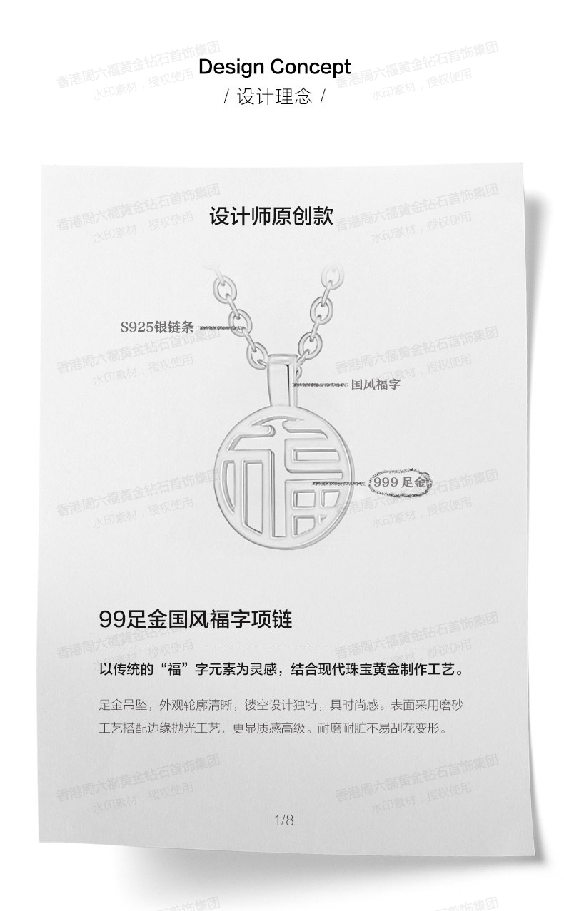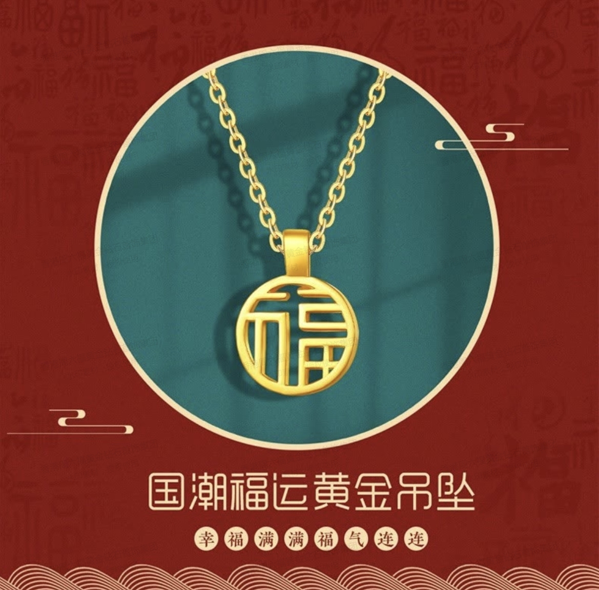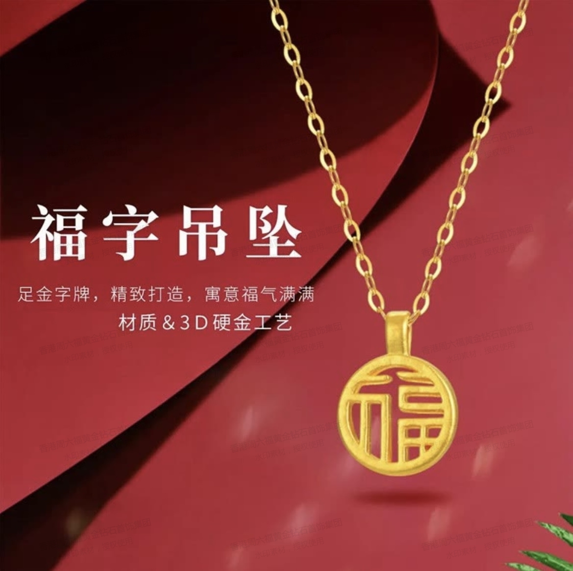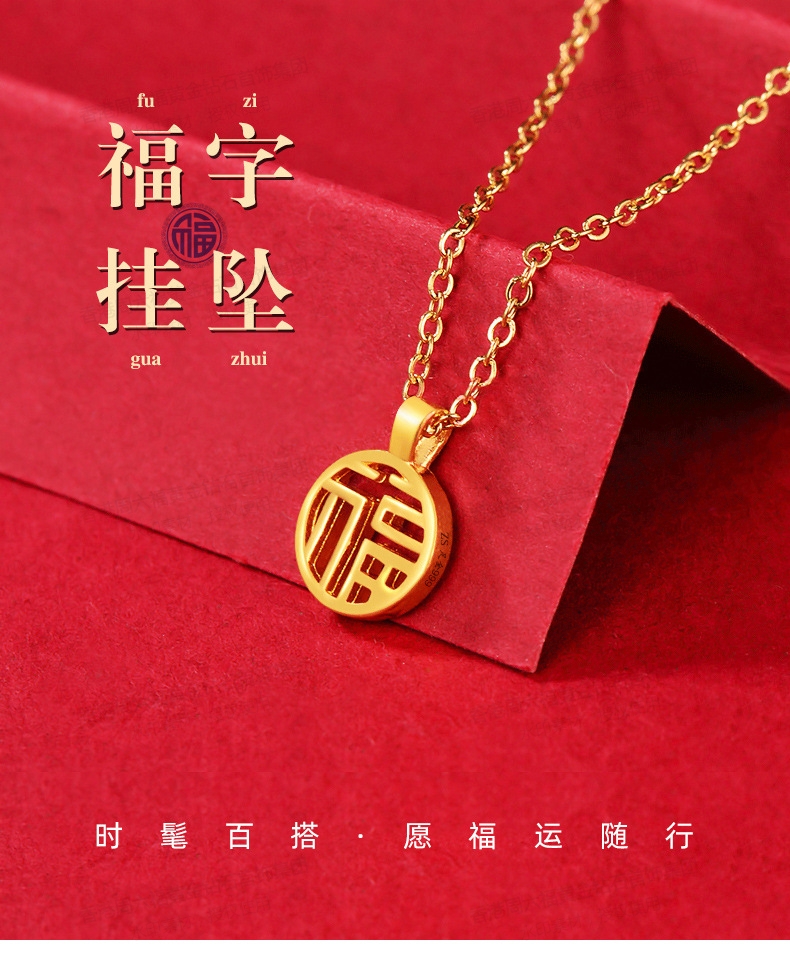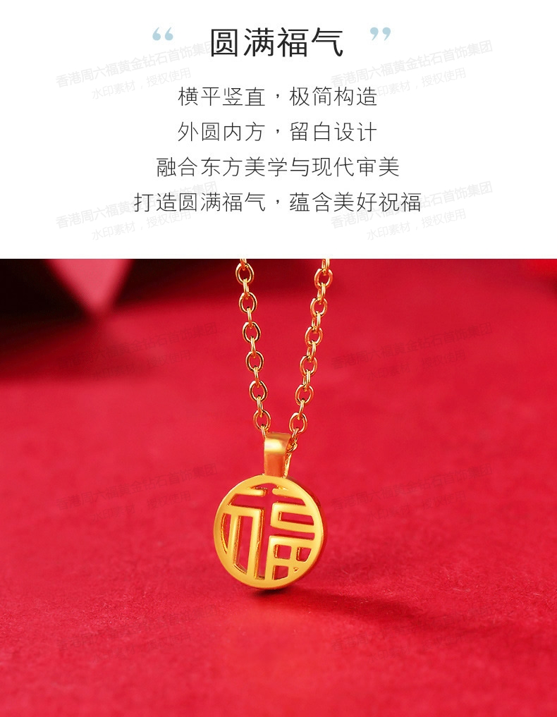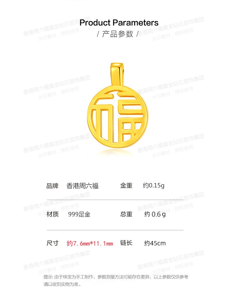 商品名称:香港周六福镂空福牌吊坠(赠钛金项链)足金吊坠0.15g±0.03g,总重约:0.6g