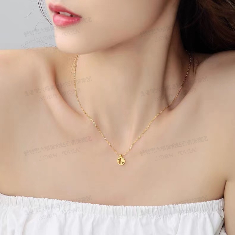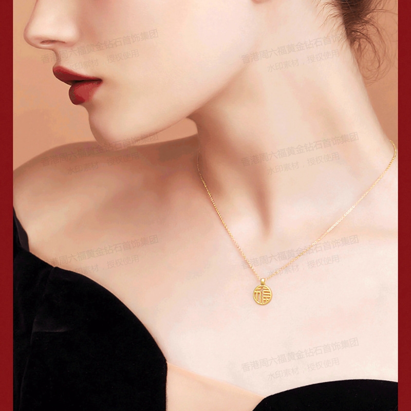 香港周六福镂空福牌吊坠(赠钛金项链)足金吊坠0.15g±0.03g,总重约:0.6g
