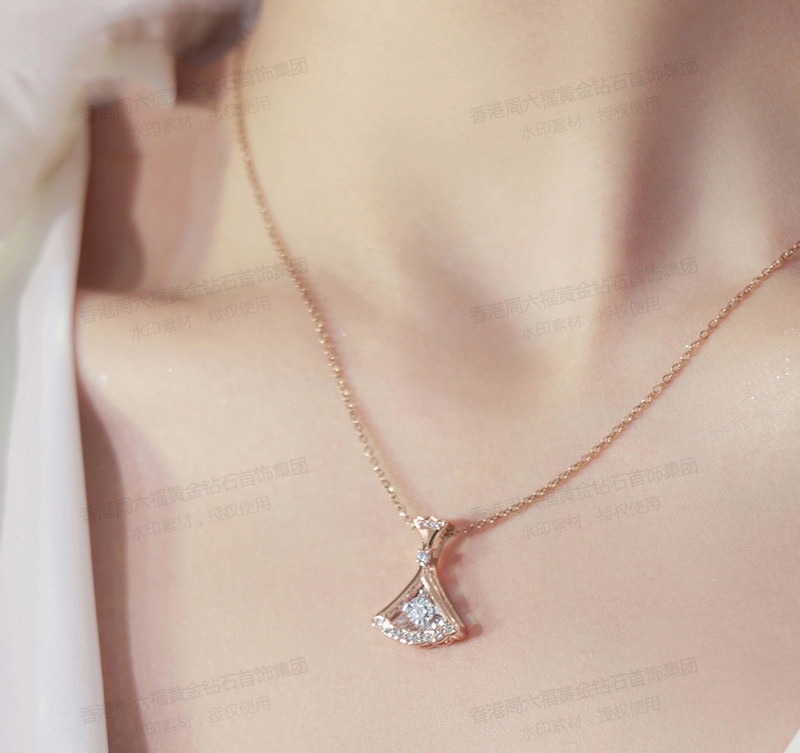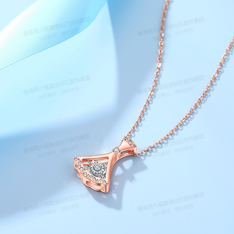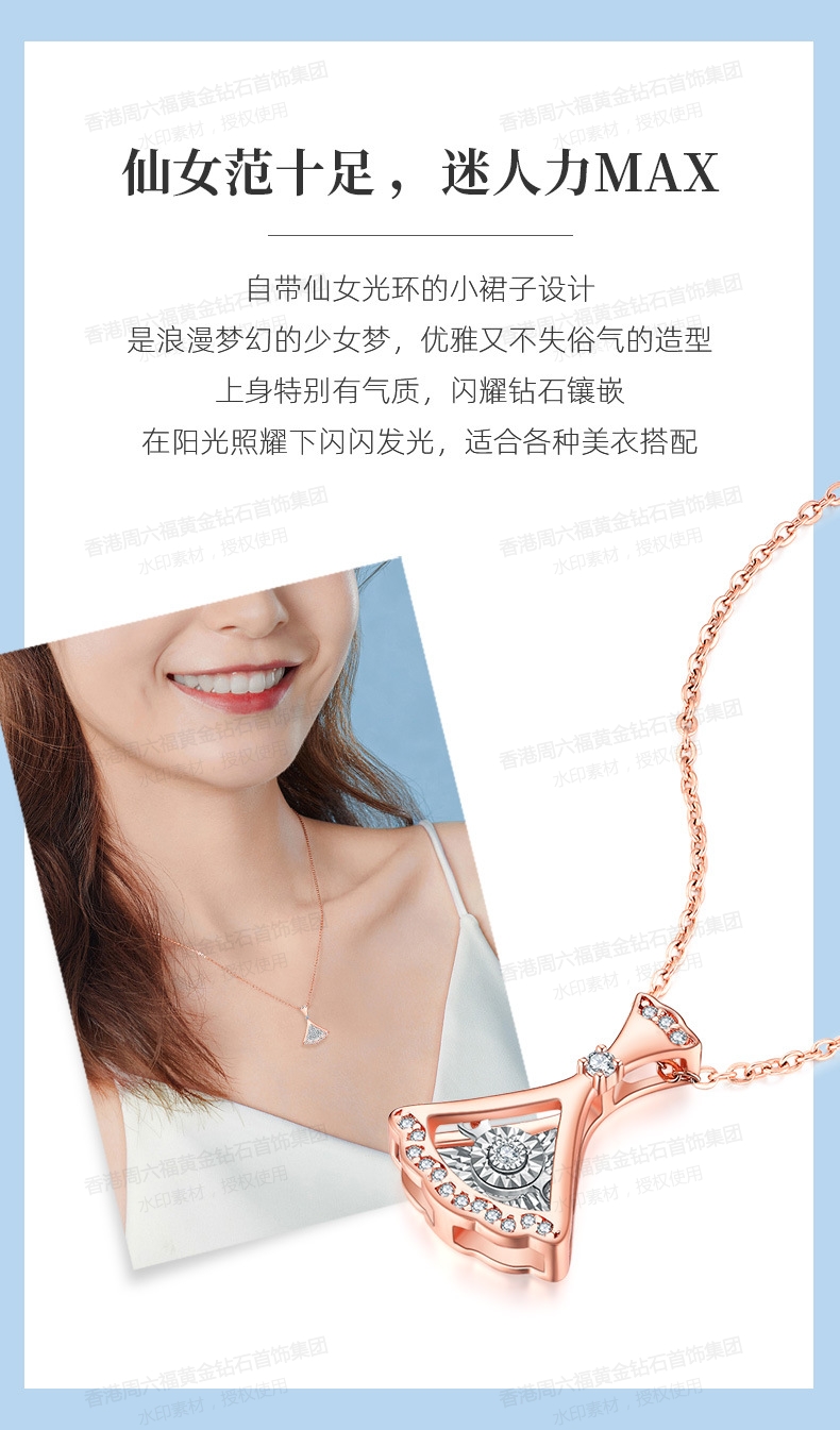 商品名称:香港周六福天然南非真钻项链-灵动裙子 净重约2克