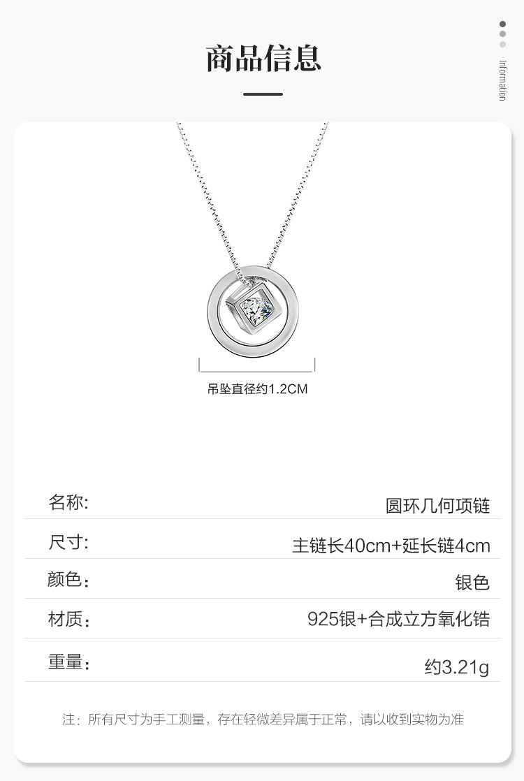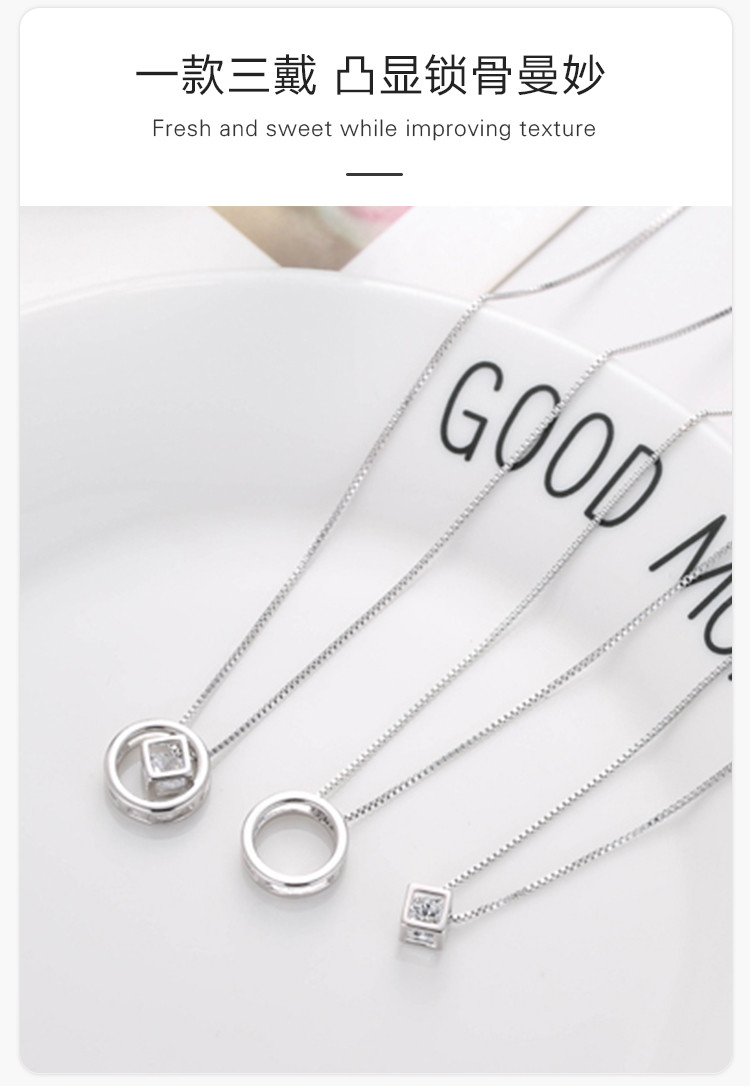 商品名称:【个性设计】s925银项链女时尚圆环几何魔方锁骨链一款三戴 120577