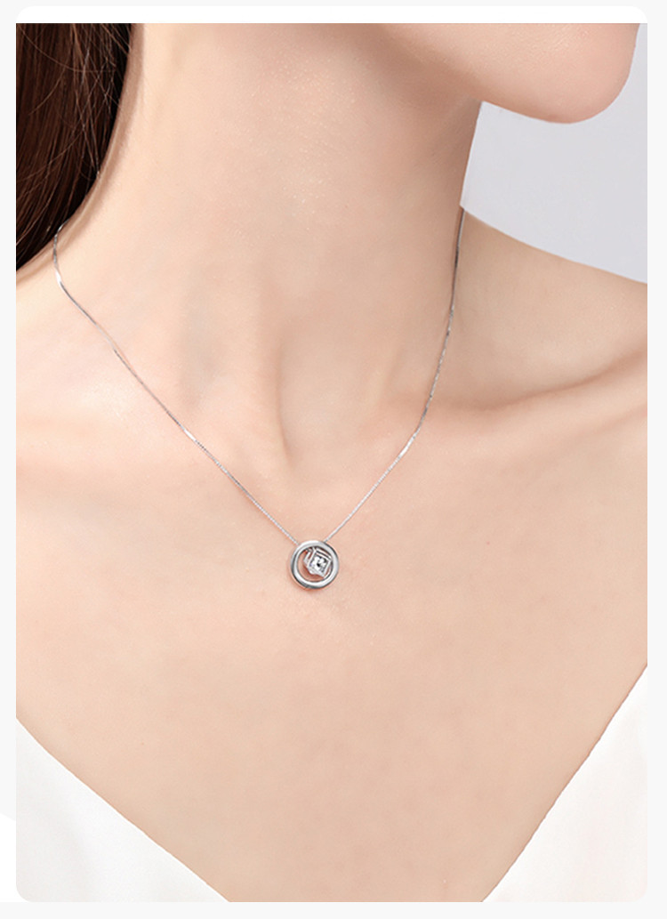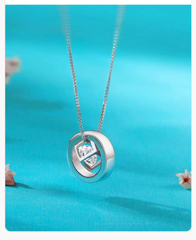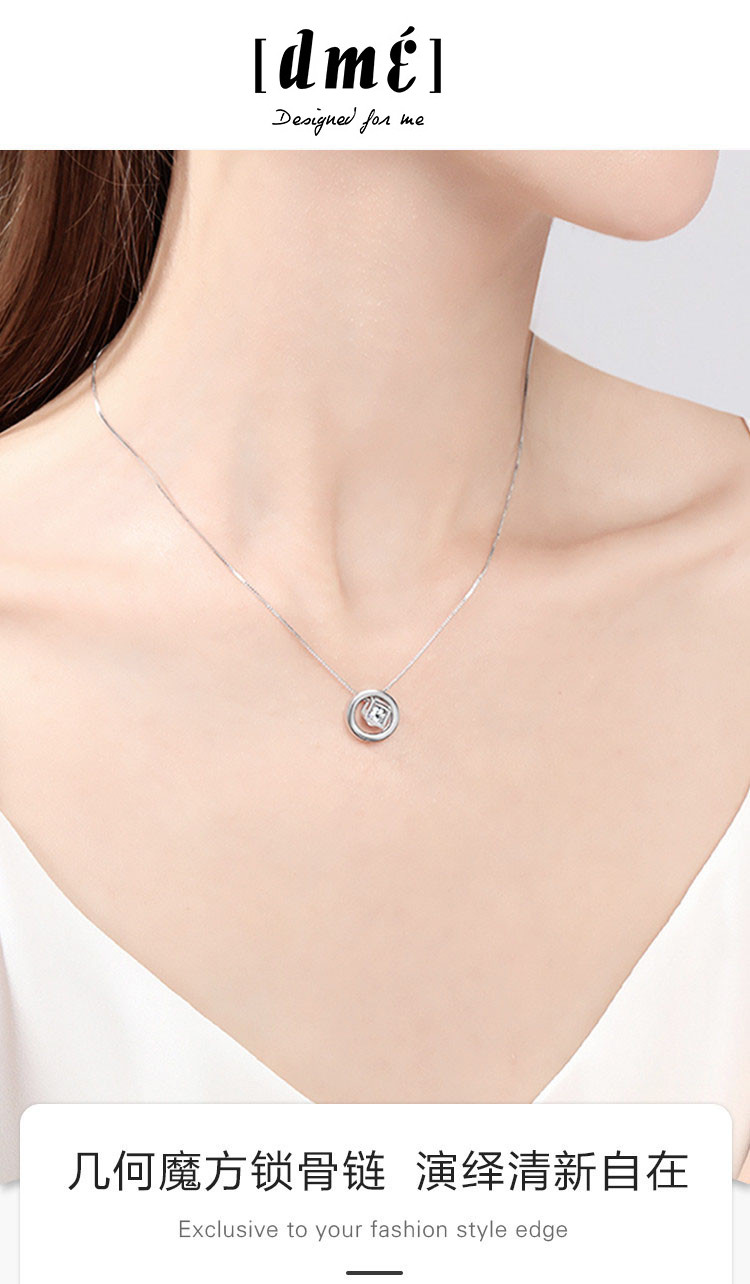 【个性设计】s925银项链女时尚圆环几何魔方锁骨链一款三戴 120577