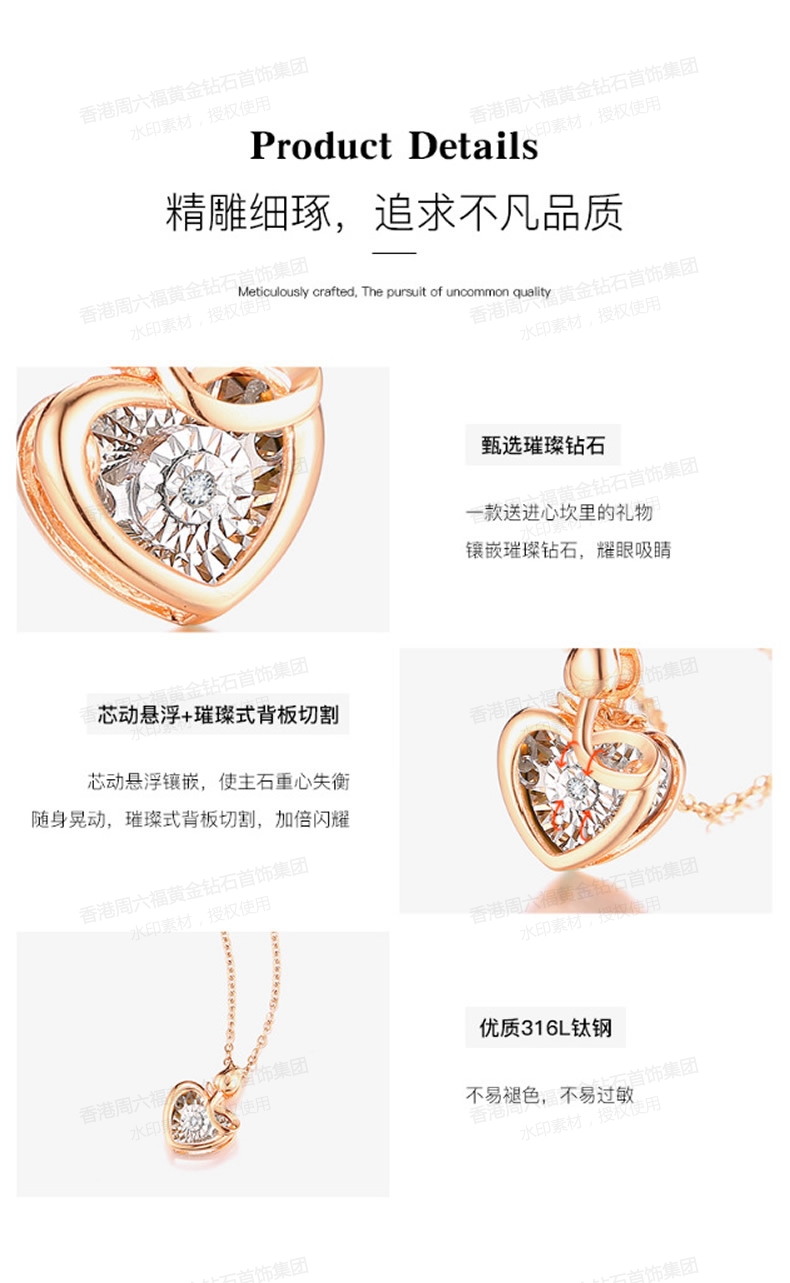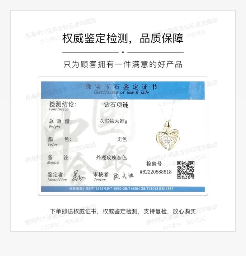 商品名称:香港周六福天然南非真钻项链-灵动爱心 净重约2克