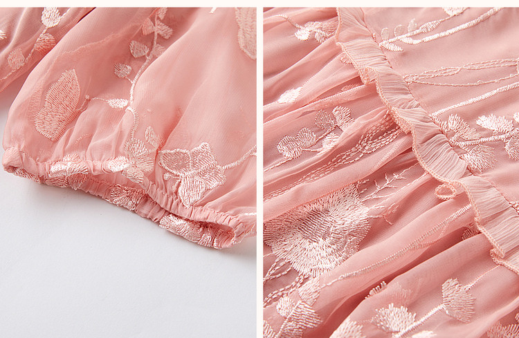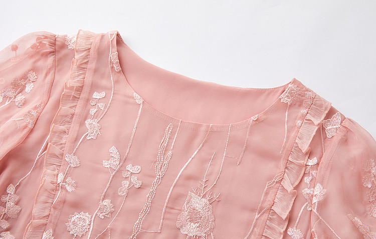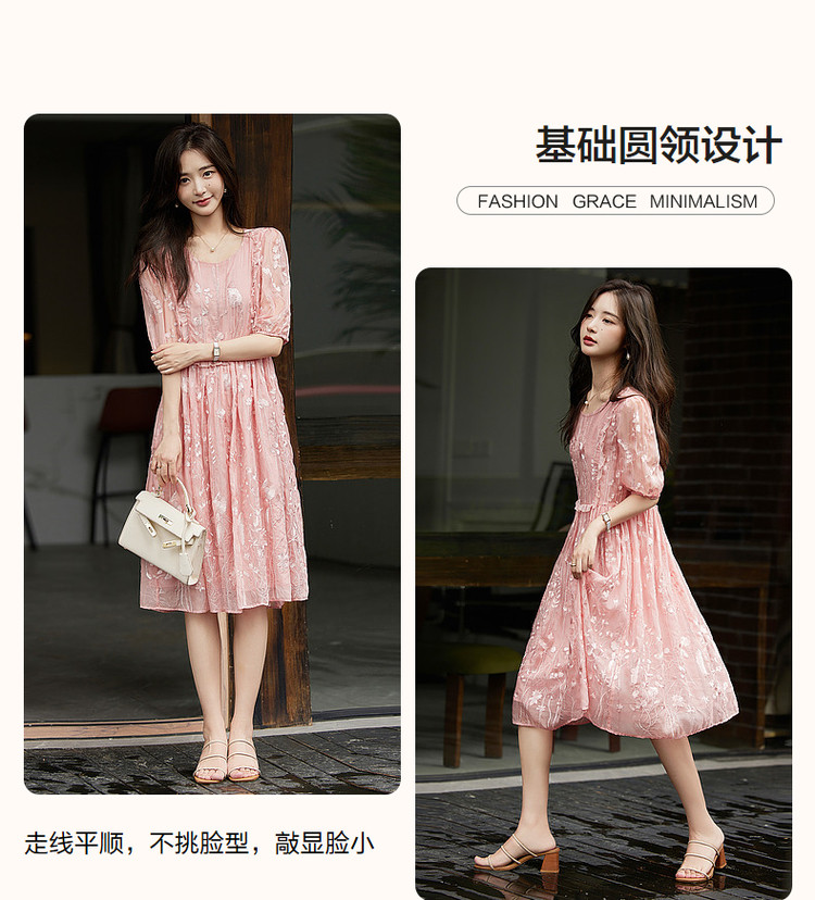 【超仙典雅雪纺绣花】秋季圆领刺绣连衣裙子女短袖中长款 351617