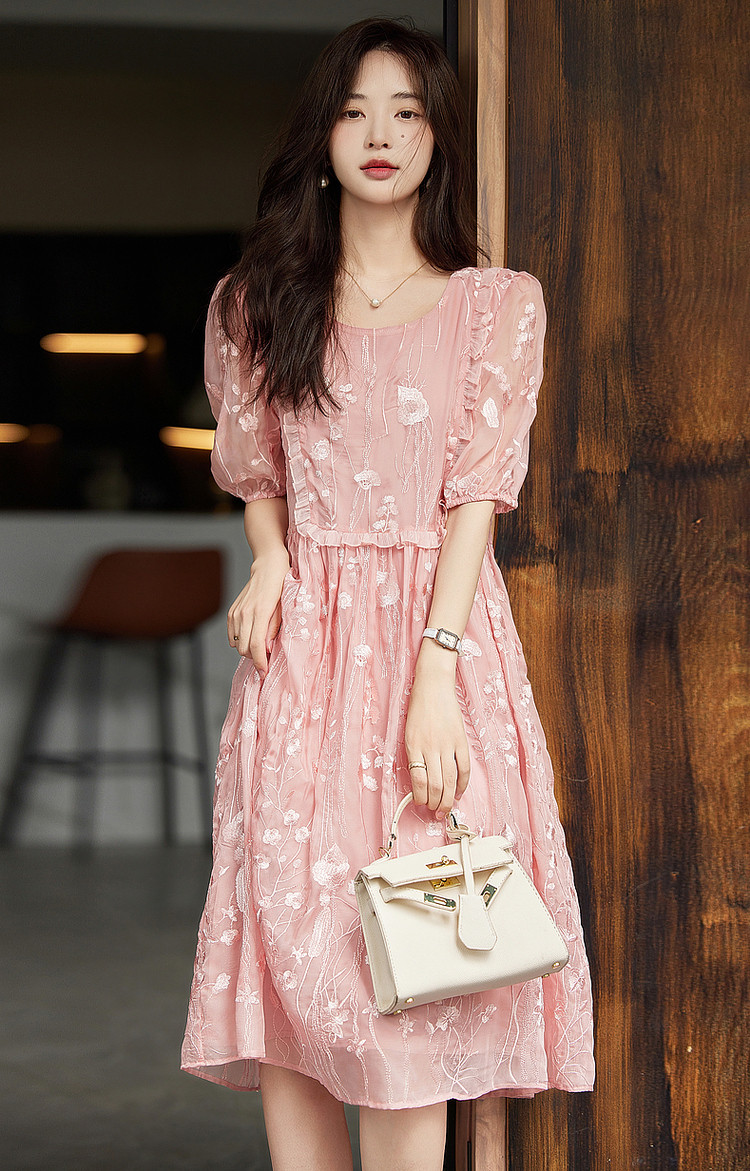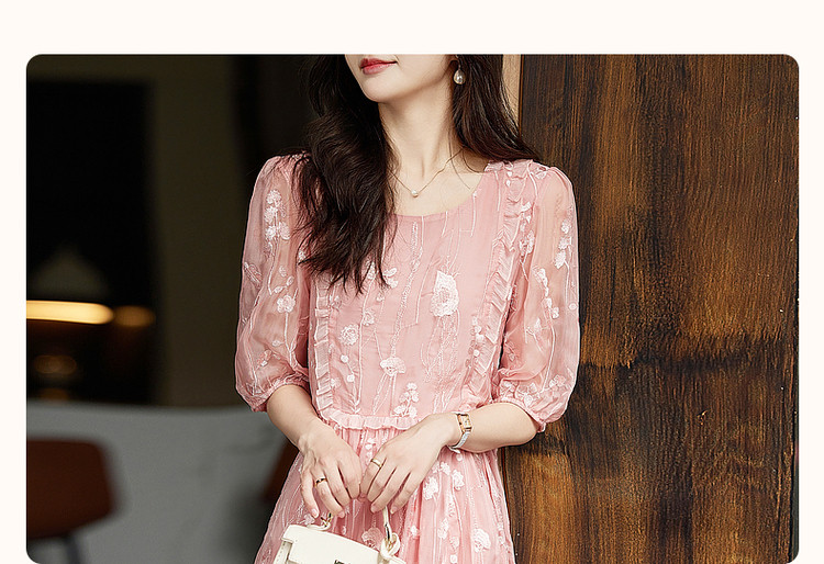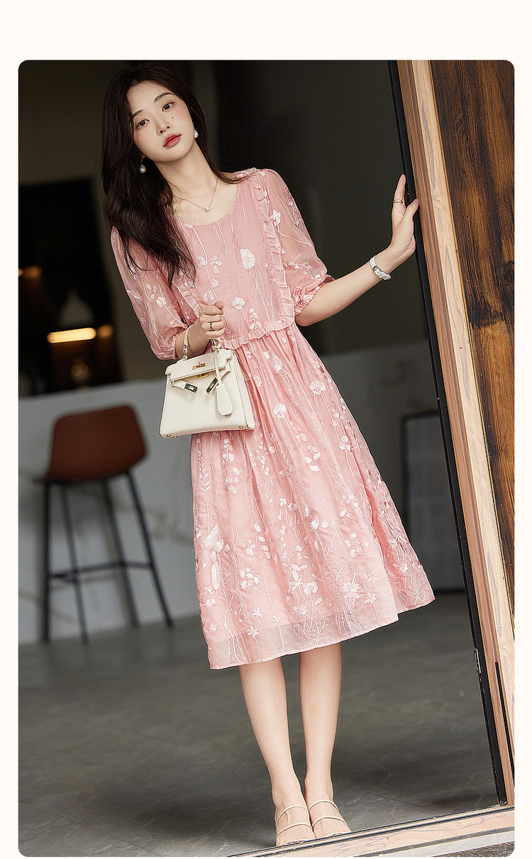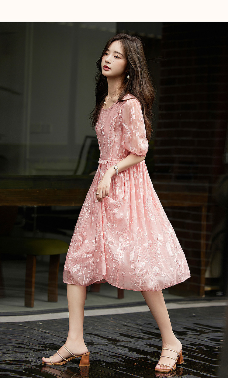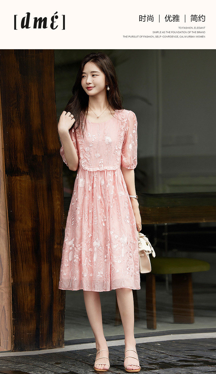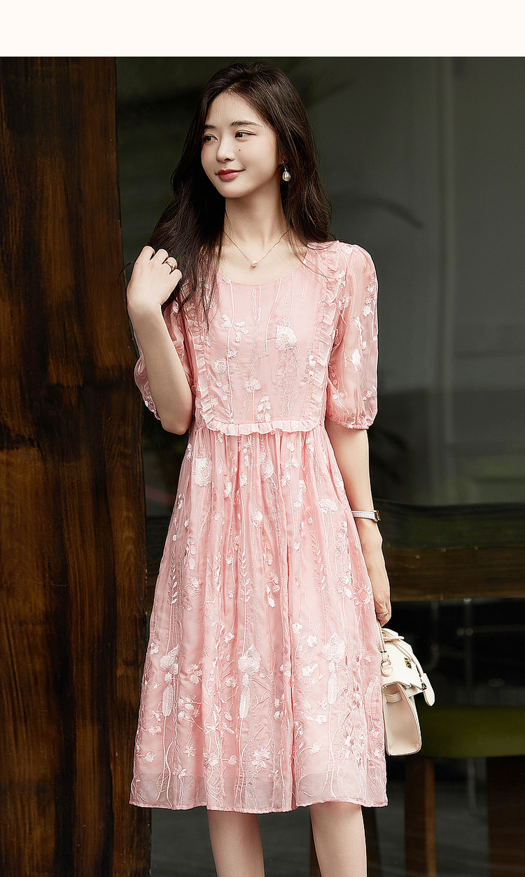 商品名称:【超仙典雅雪纺绣花】秋季圆领刺绣连衣裙子女短袖中长款 351617