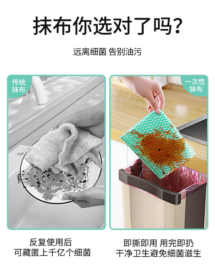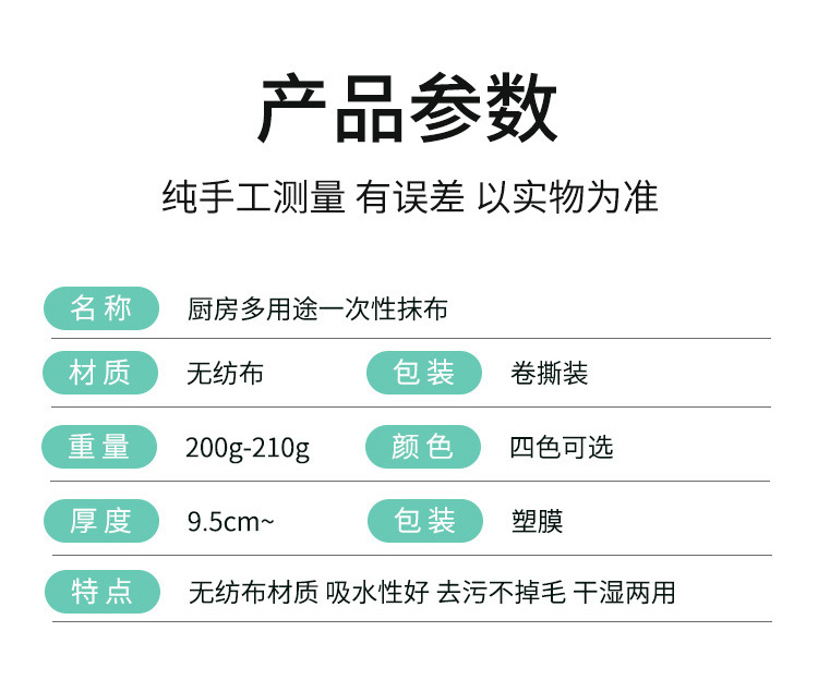 商品名称:一次性无纺布懒人抹布干湿两用洗碗布1卷颜色随机发(1卷-50片)