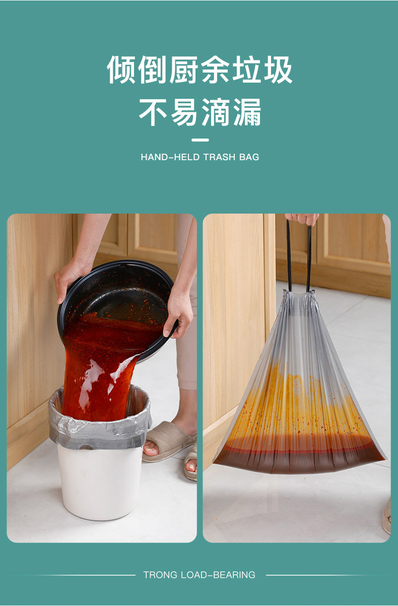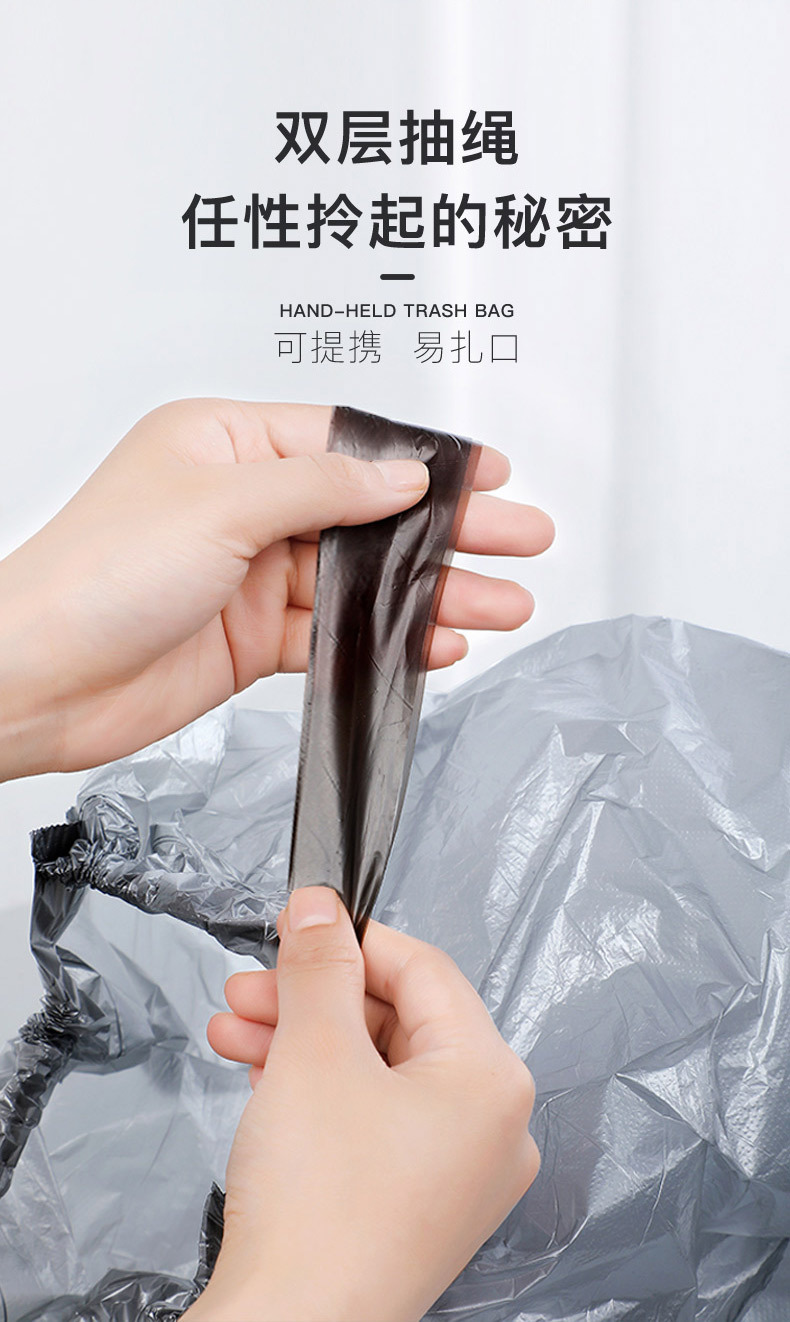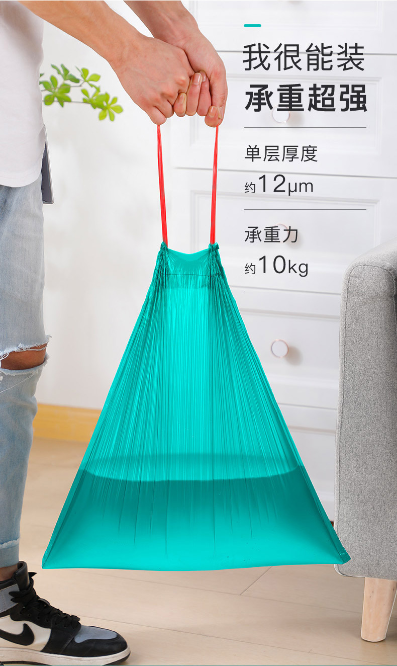 垃圾袋彩色抽绳自动收口不脏手垃圾袋(5卷75只)