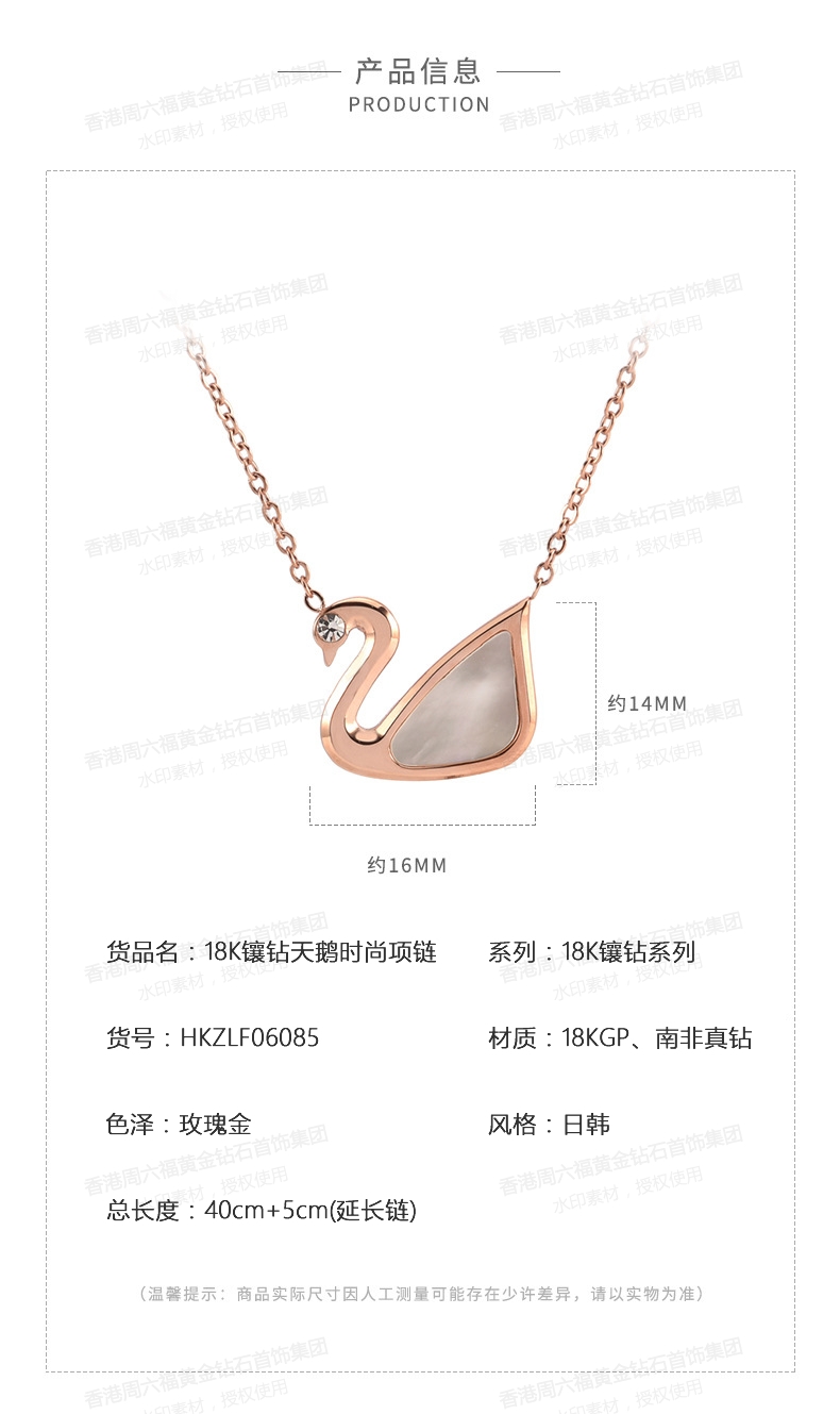 商品名称:香港周六福天然南非真钻项链-天鹅 净重约2克