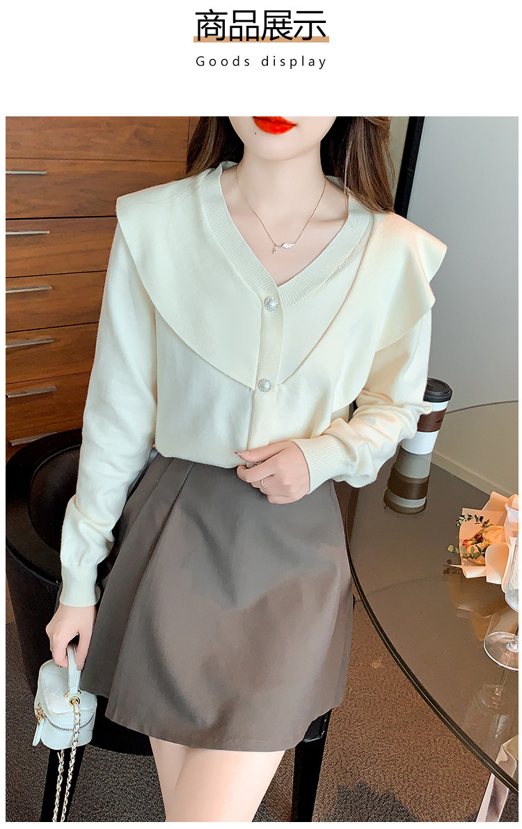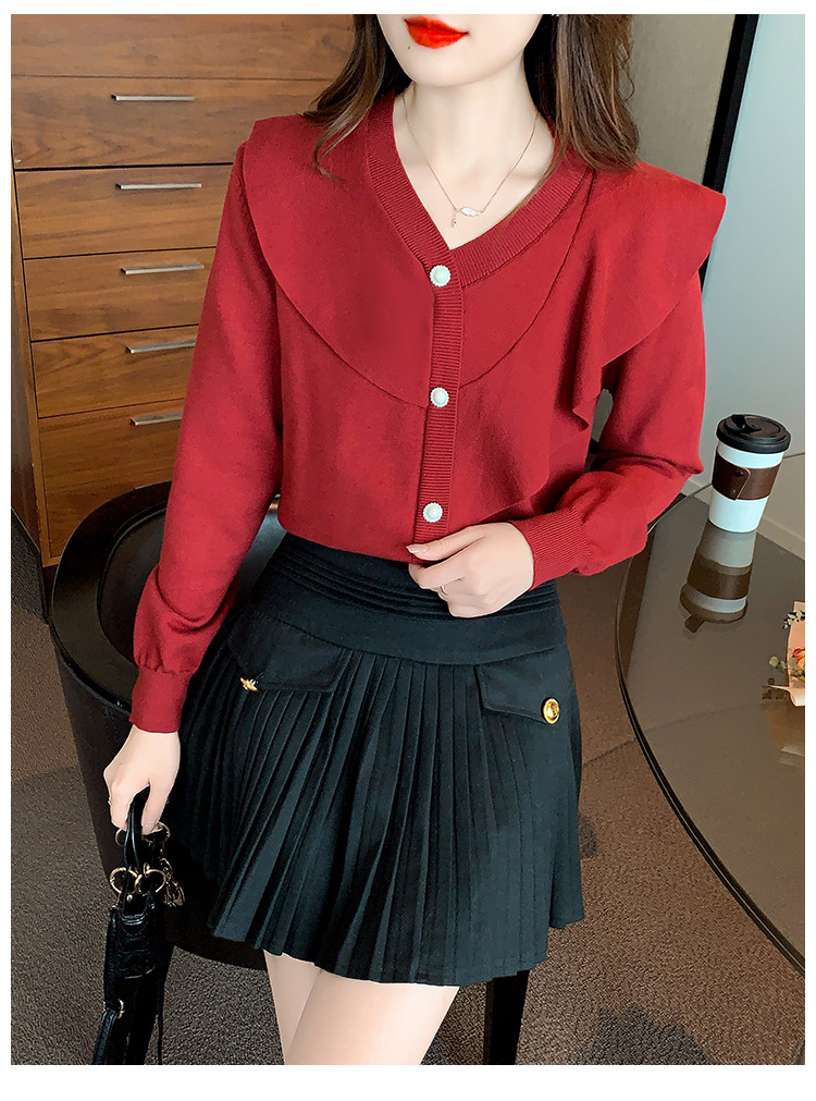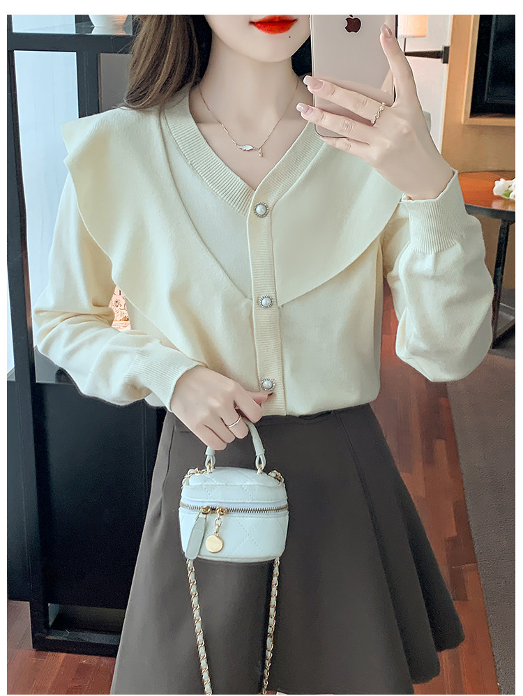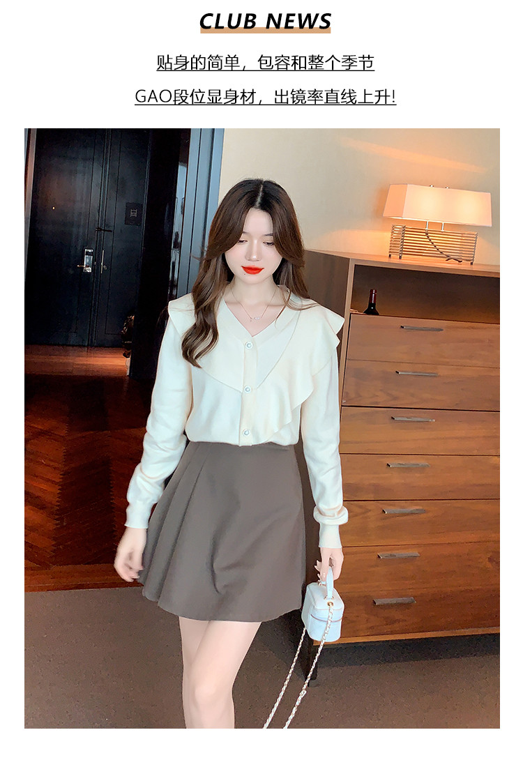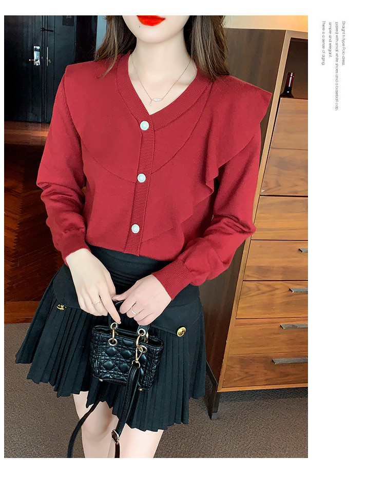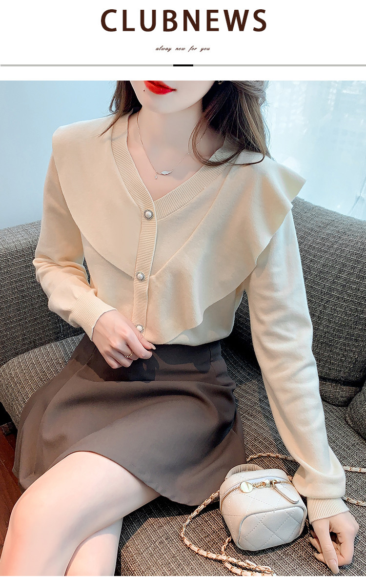 商品名称:针织衫荷叶边针织衫温柔优雅毛衣淑女针织上衣女 896259