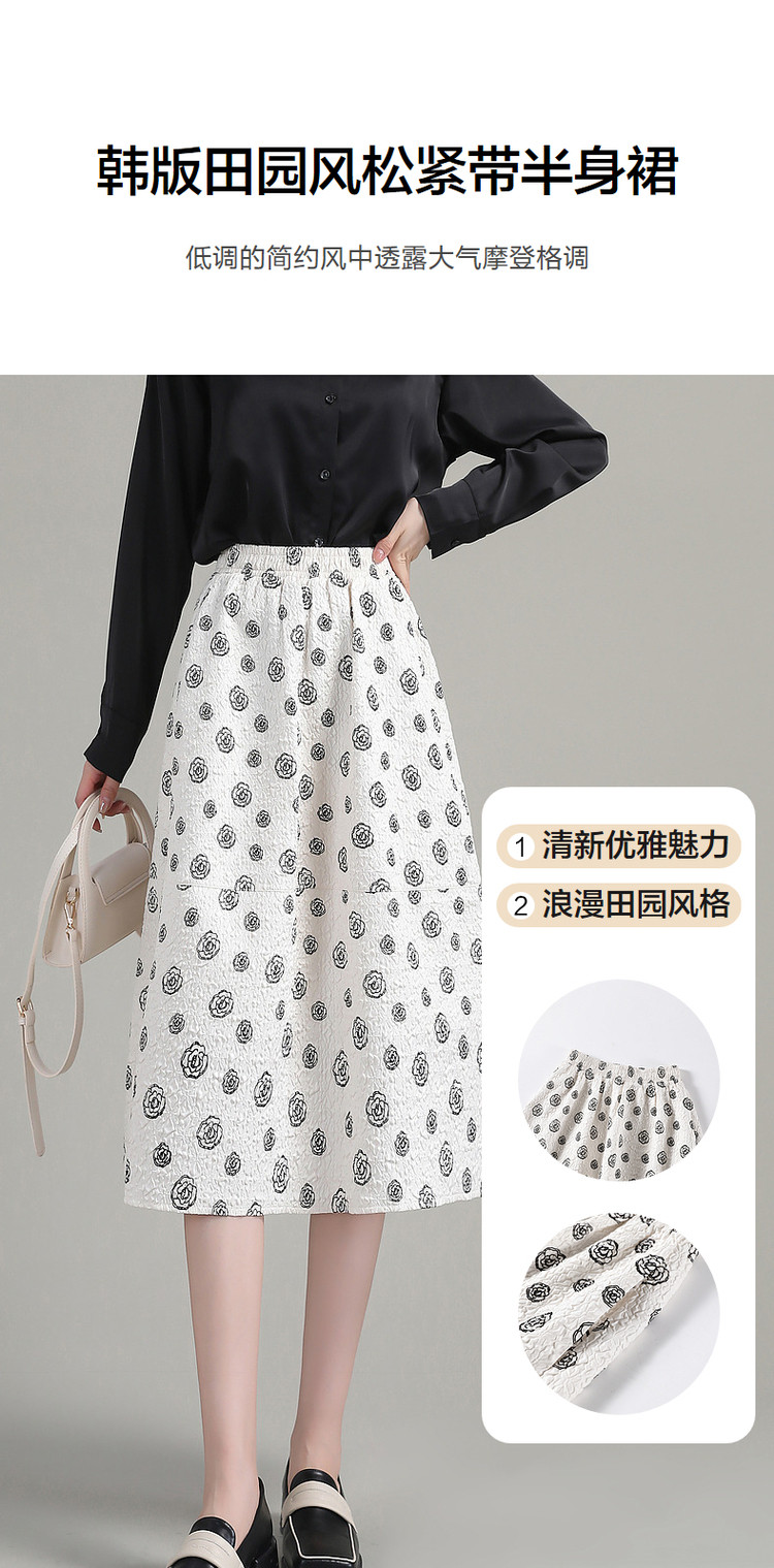 商品名称:【美拉德复古】春秋季新质感松紧带a字半裙大摆半身裙子女中长款 834433