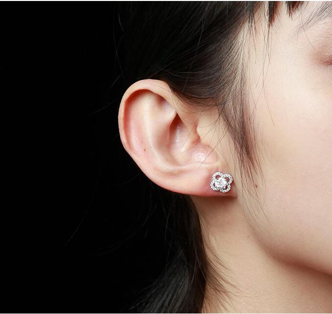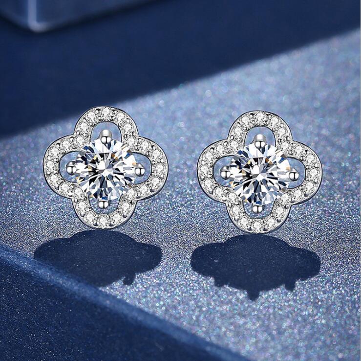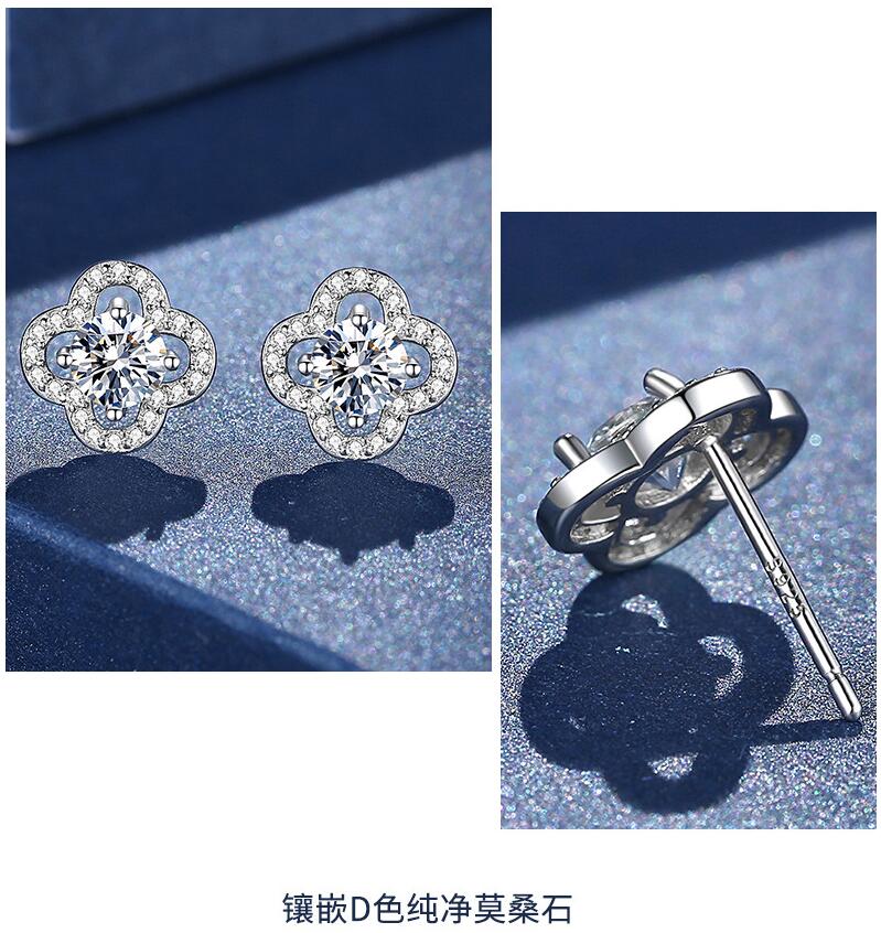 商品名称:香港周六福莫桑钻耳钉-四叶草【D级无暇莫桑钻+S925银 主石:5.0mm 50分】