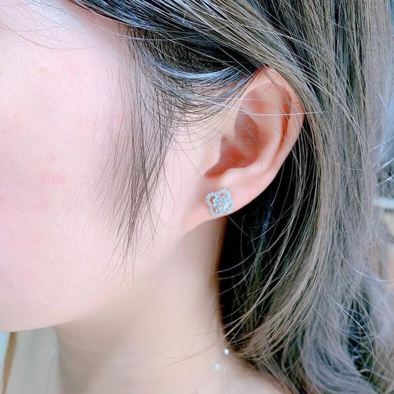 香港周六福莫桑钻耳钉-四叶草【D级无暇莫桑钻+S925银 主石:5.0mm 50分】