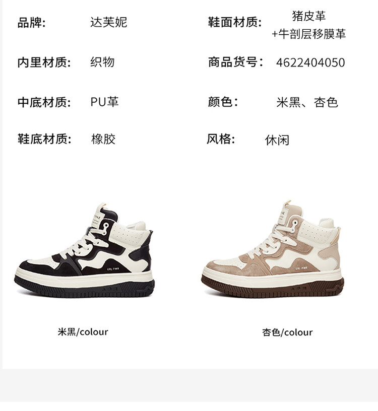 商品名称:【爆款】夏季德训鞋小白鞋高帮板鞋百搭复古休闲鞋运动鞋厚底 254487
