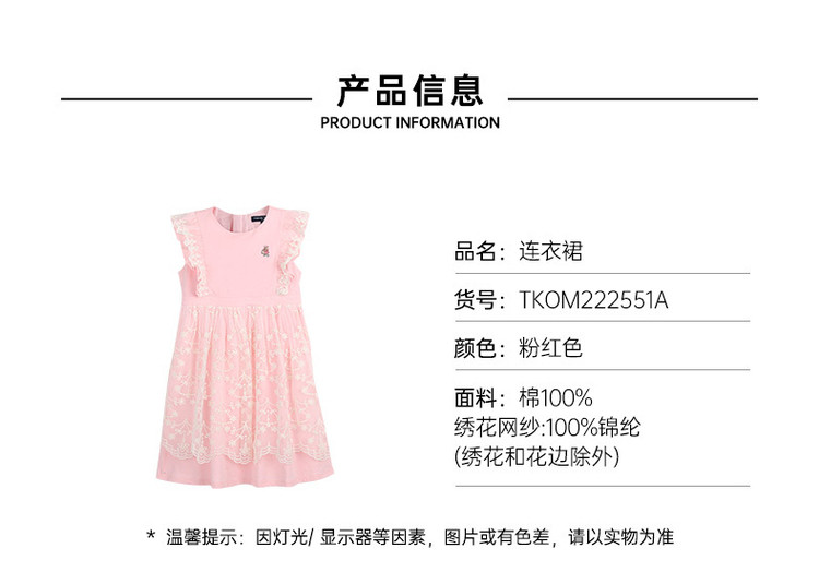 商品名称:【公主裙】小熊童装女童网纱刺绣公主裙连衣裙 421505
