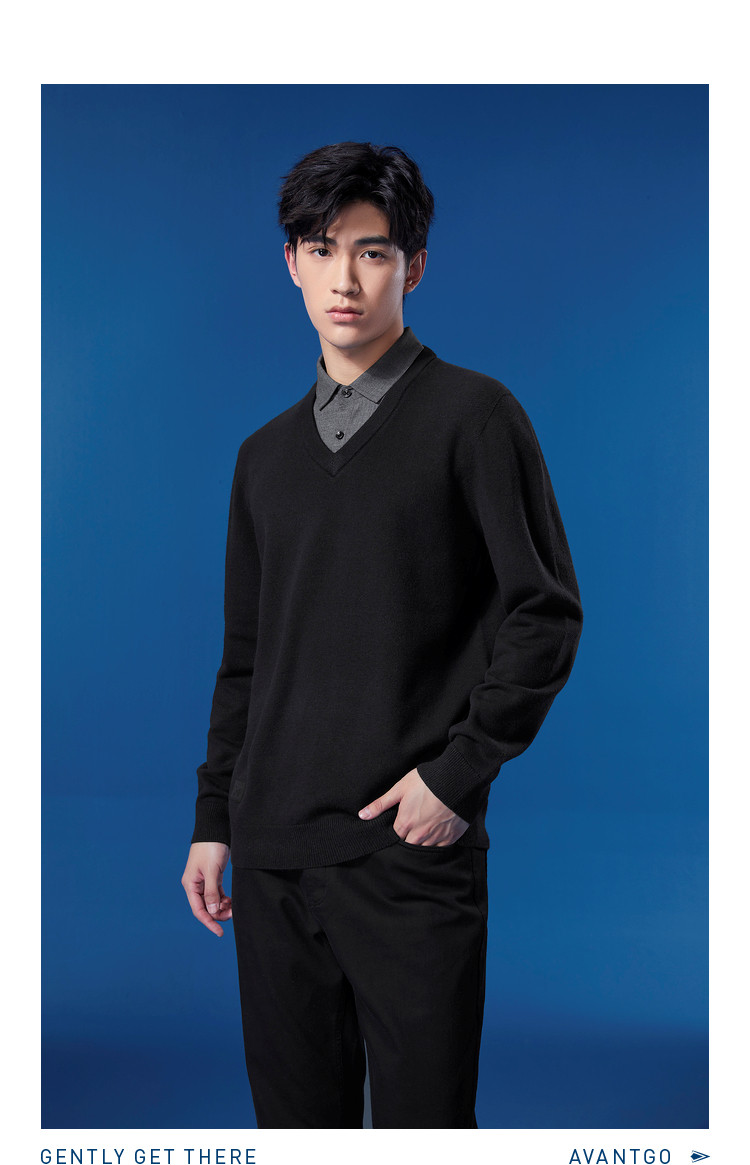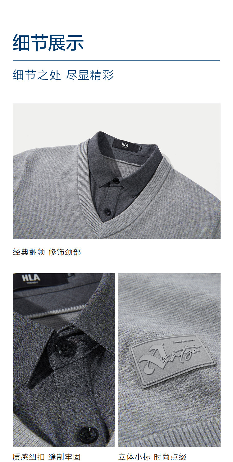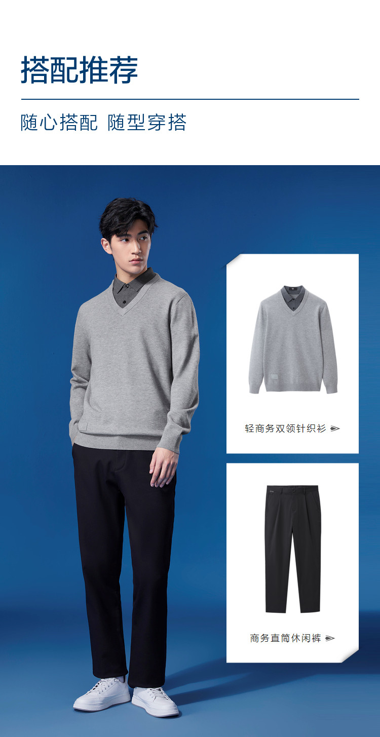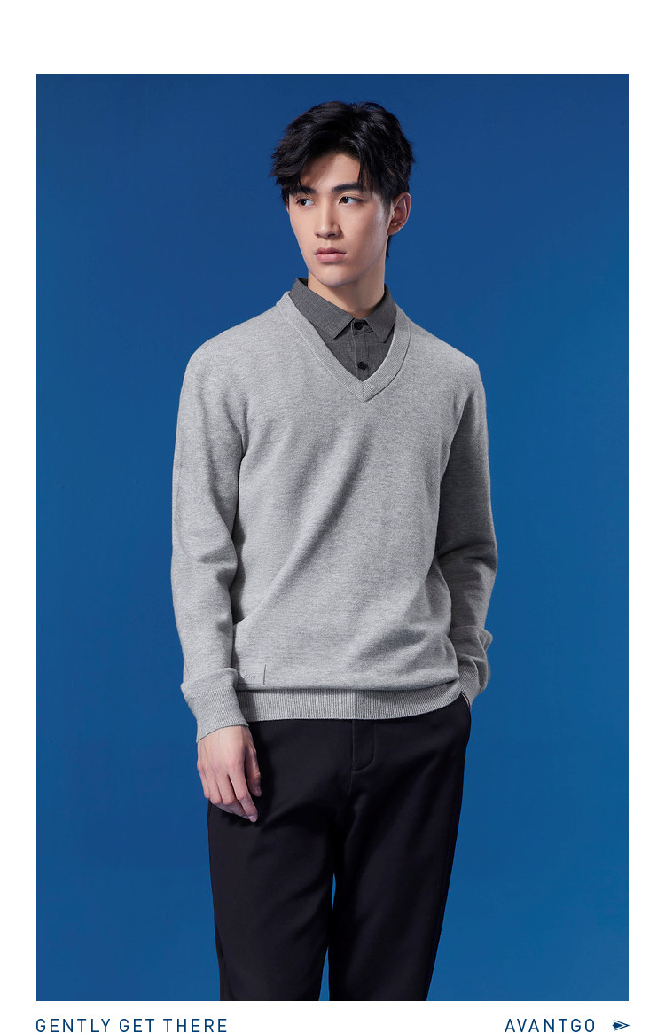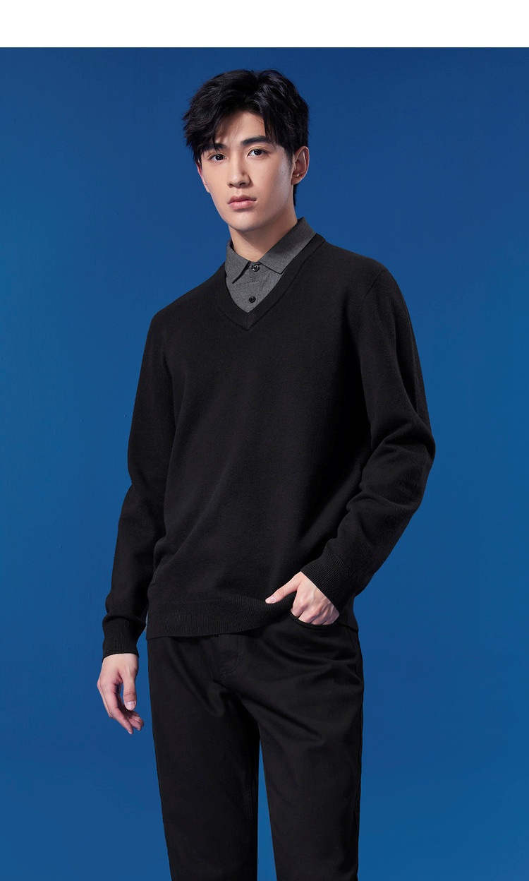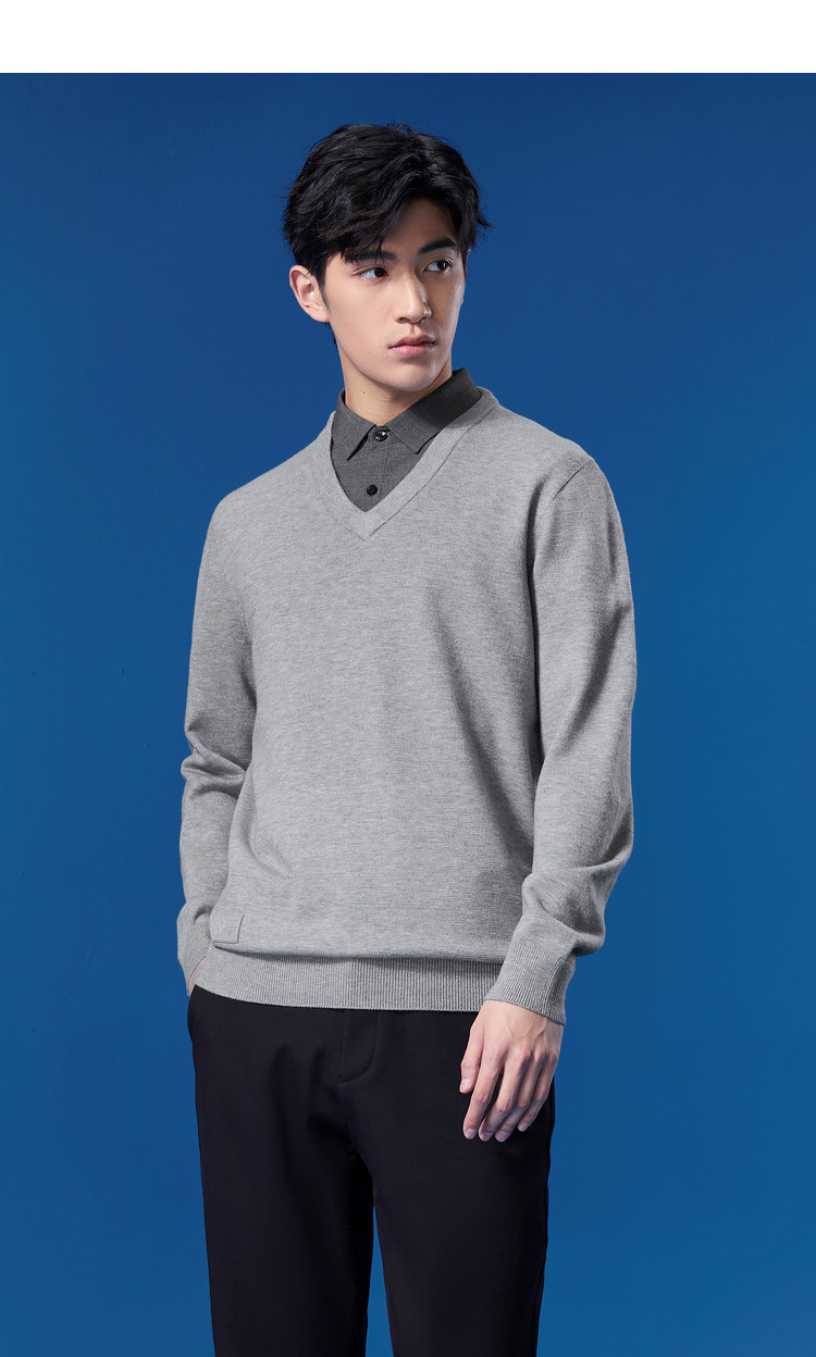 商品名称:【轻商务时尚系列】春秋热销含羊毛假两件V领男士双领针织衫 035016