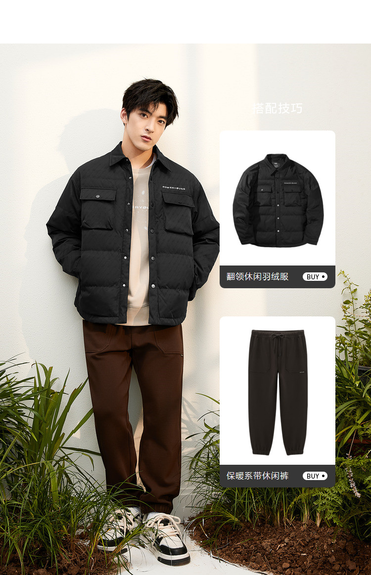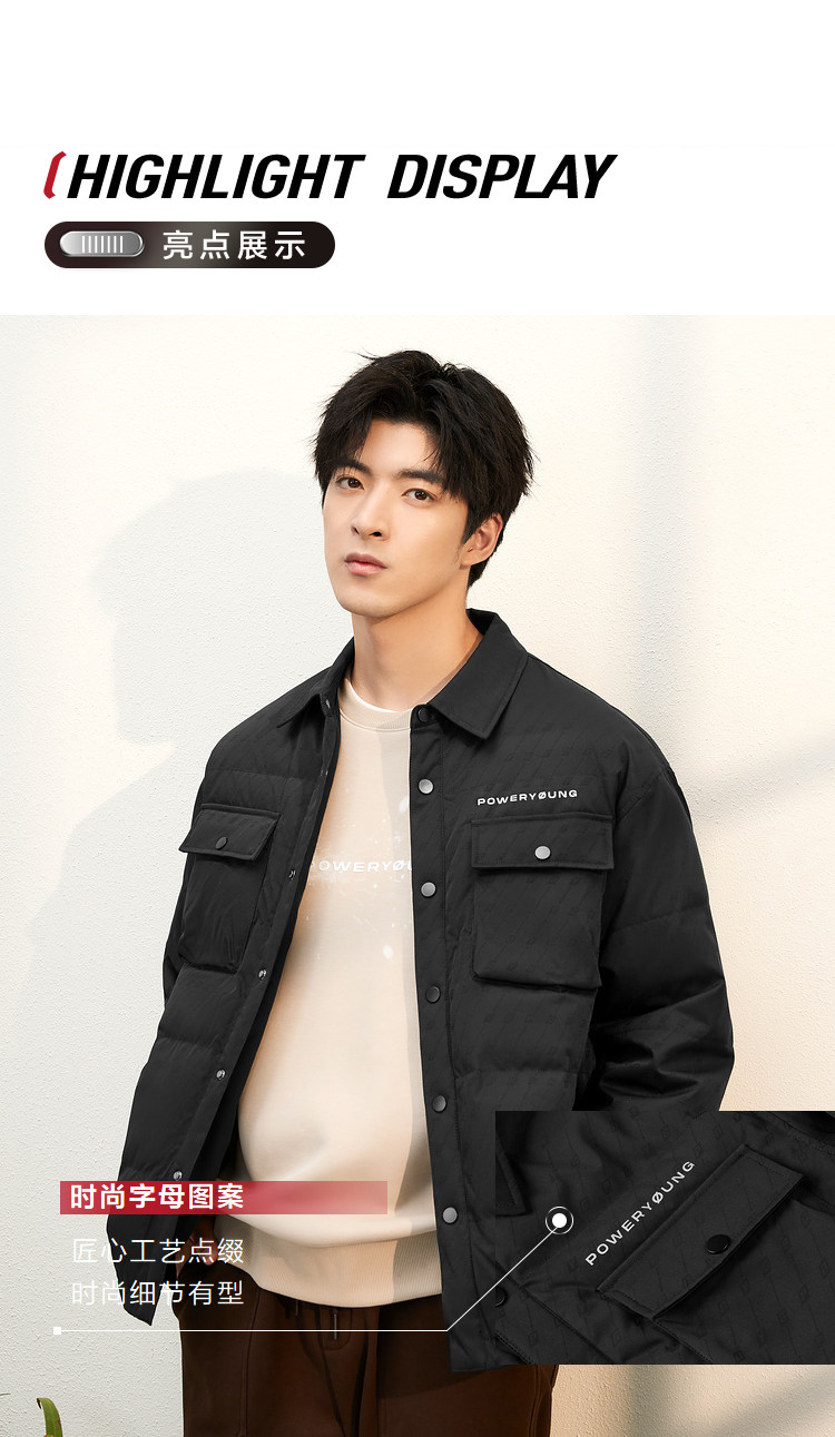 商品名称:【轻薄-新街潮】冬季抗皱防钻绒翻领工装保暖男士羽绒服 304840