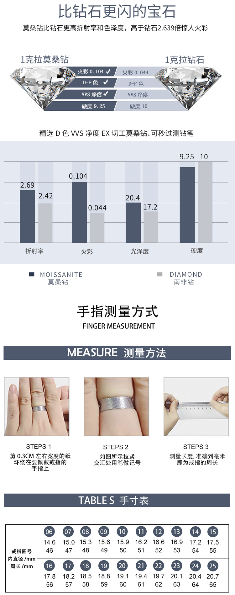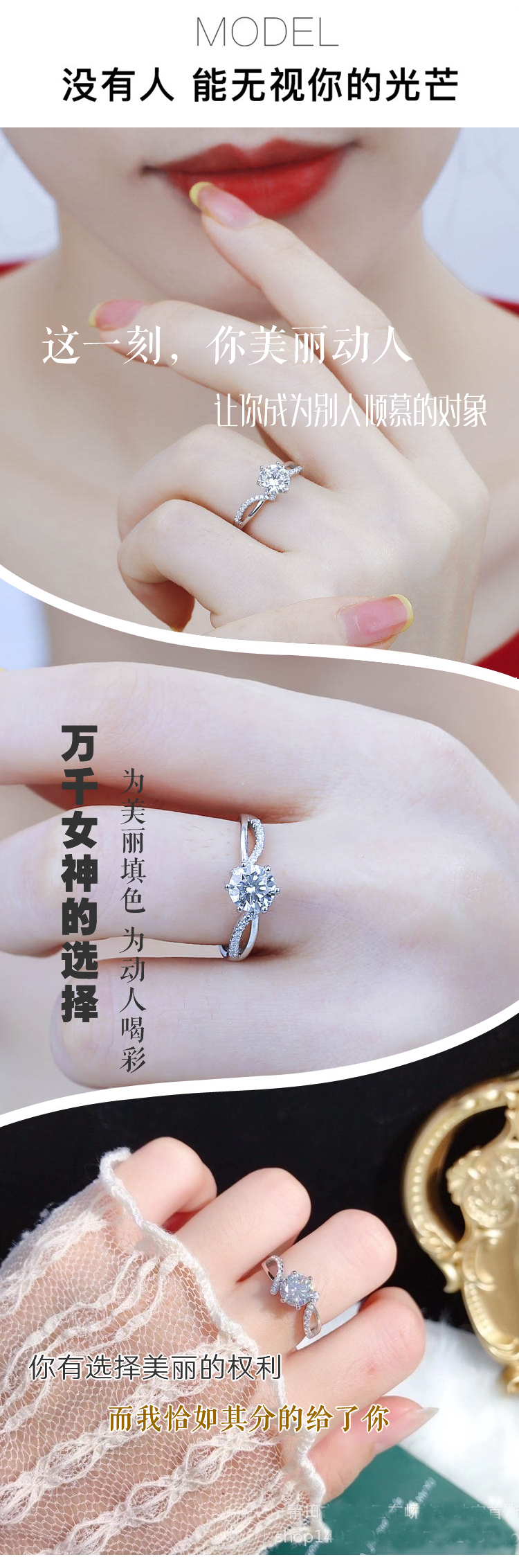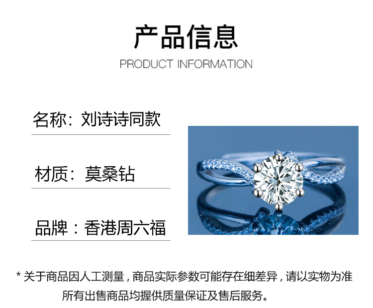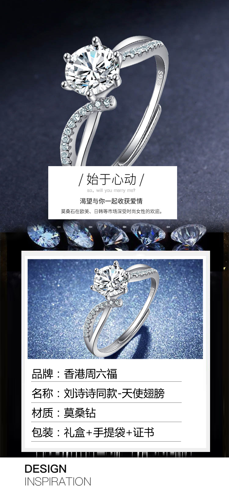 商品名称:香港周六福莫桑钻钻戒-刘诗诗同款(可调节)D级无暇莫桑钻+S925银 1克拉