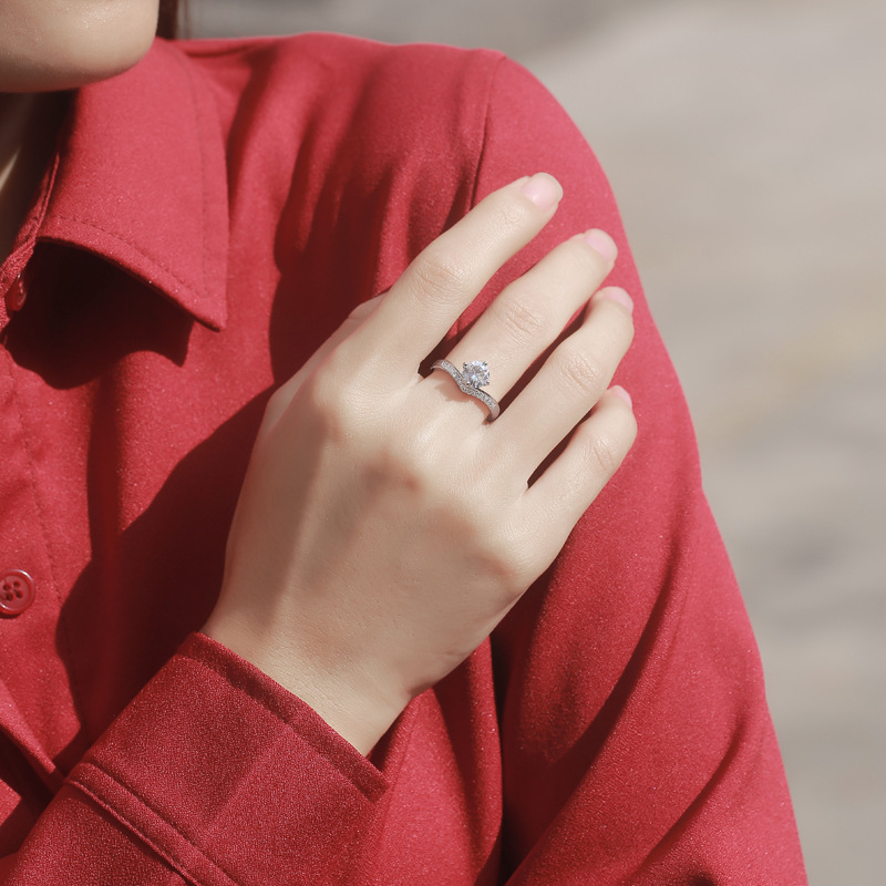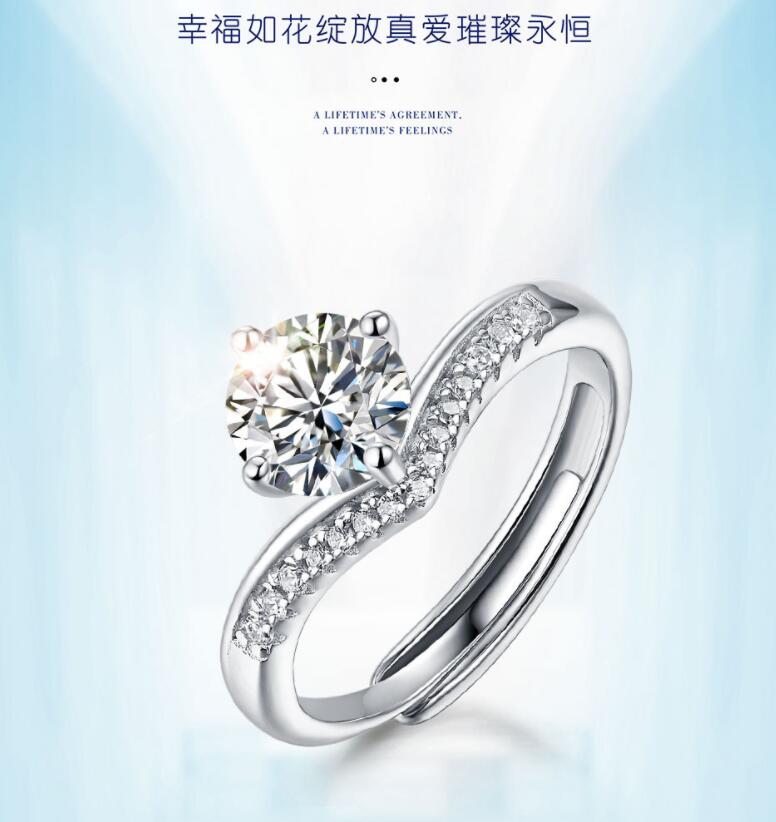 香港周六福莫桑钻钻戒-公主皇冠【D级无暇莫桑钻+S925银 主石:6.5mm 1克拉】