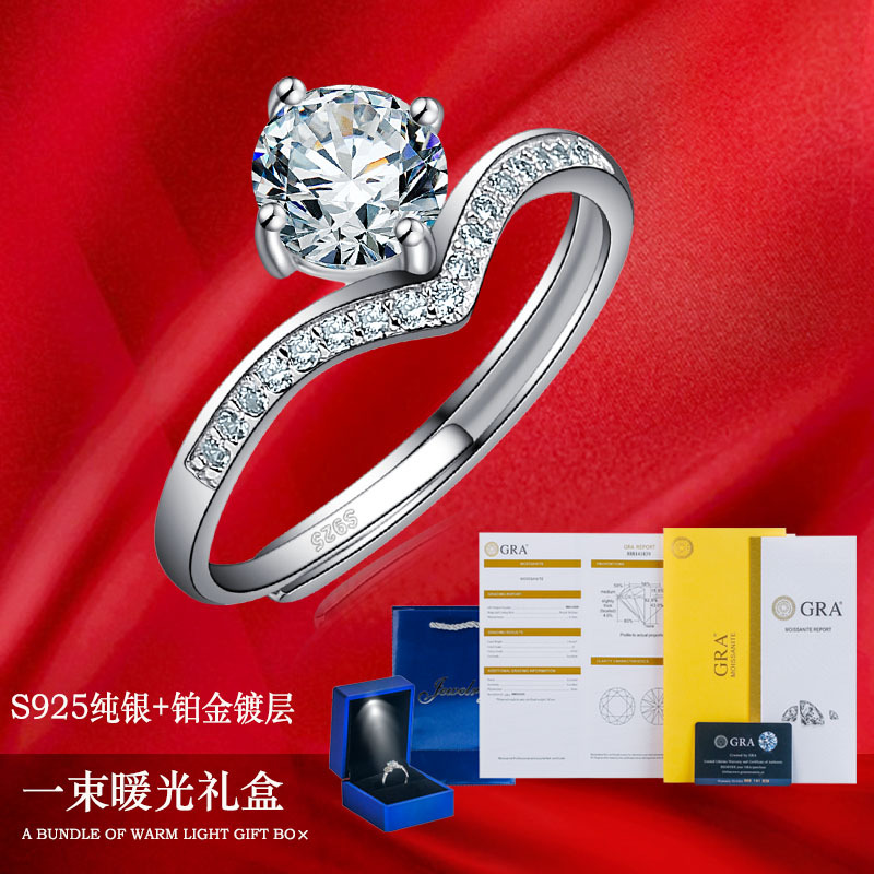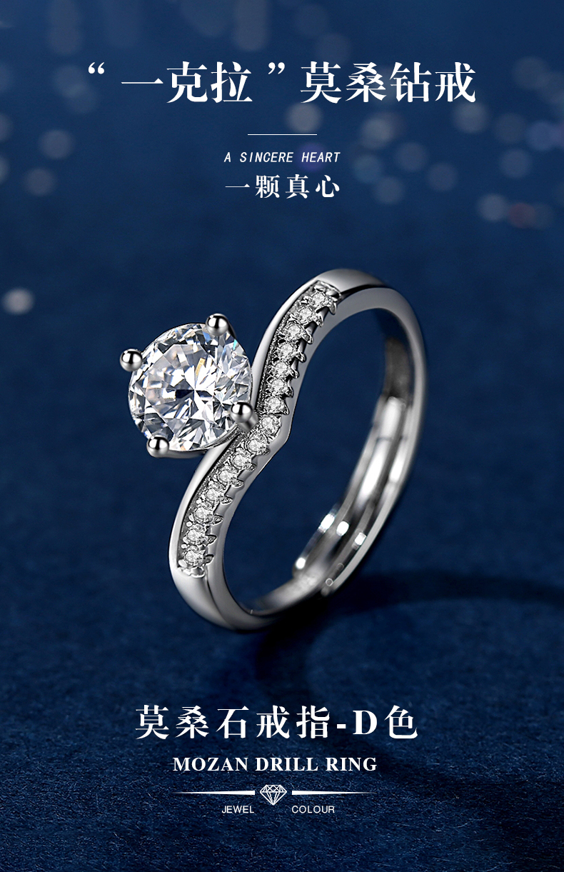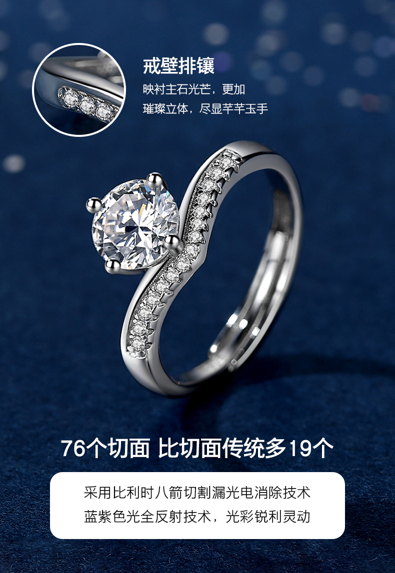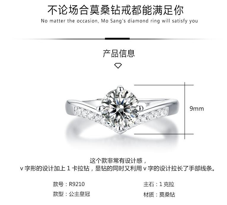 商品名称:香港周六福莫桑钻钻戒-公主皇冠【D级无暇莫桑钻+S925银 主石:6.5mm 1克拉】