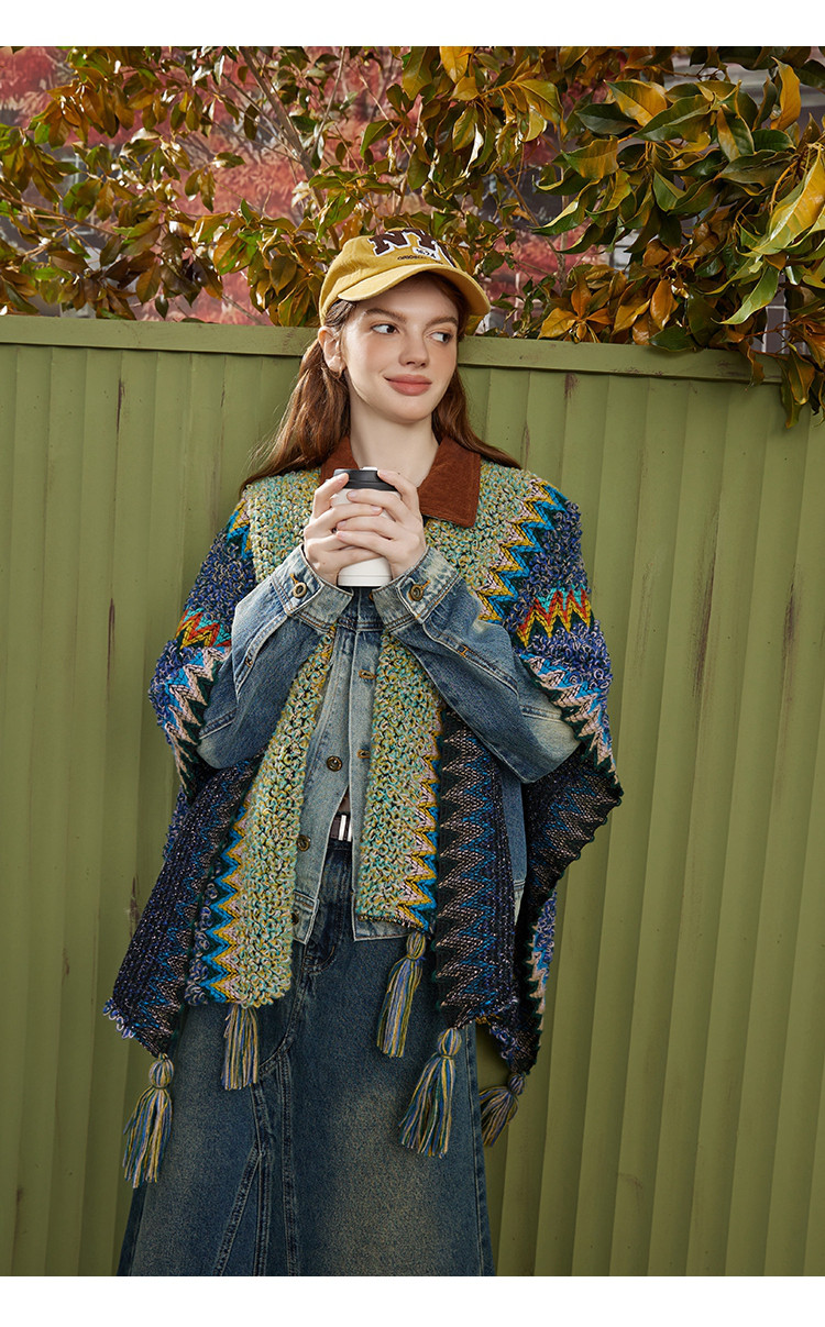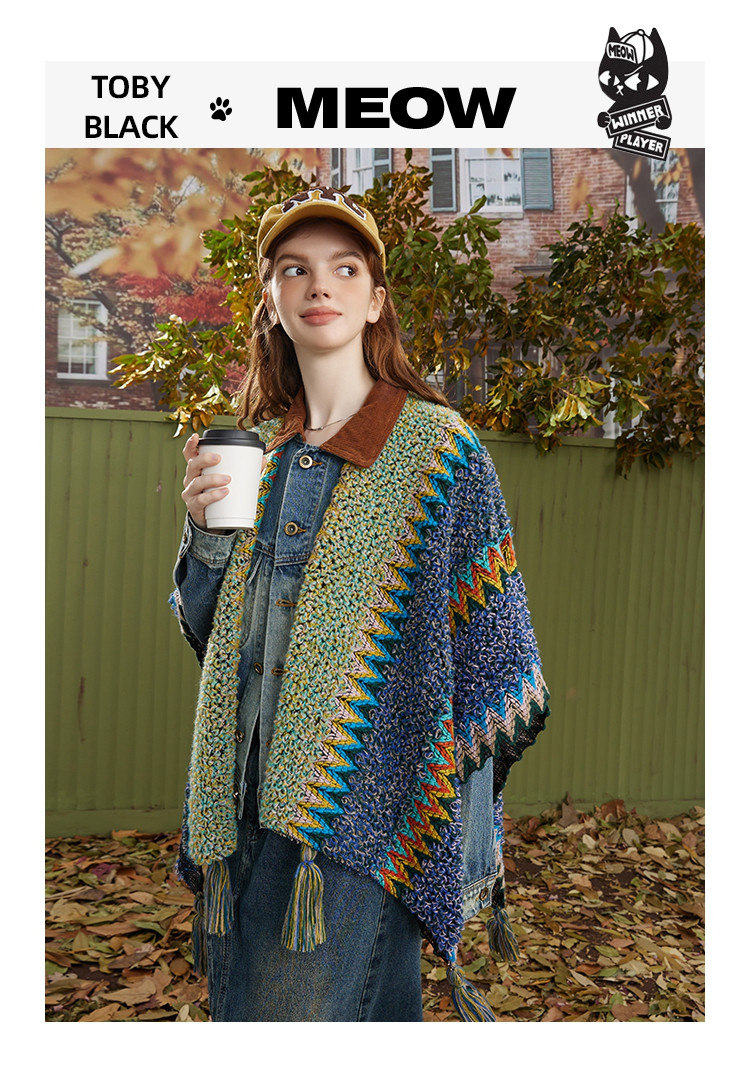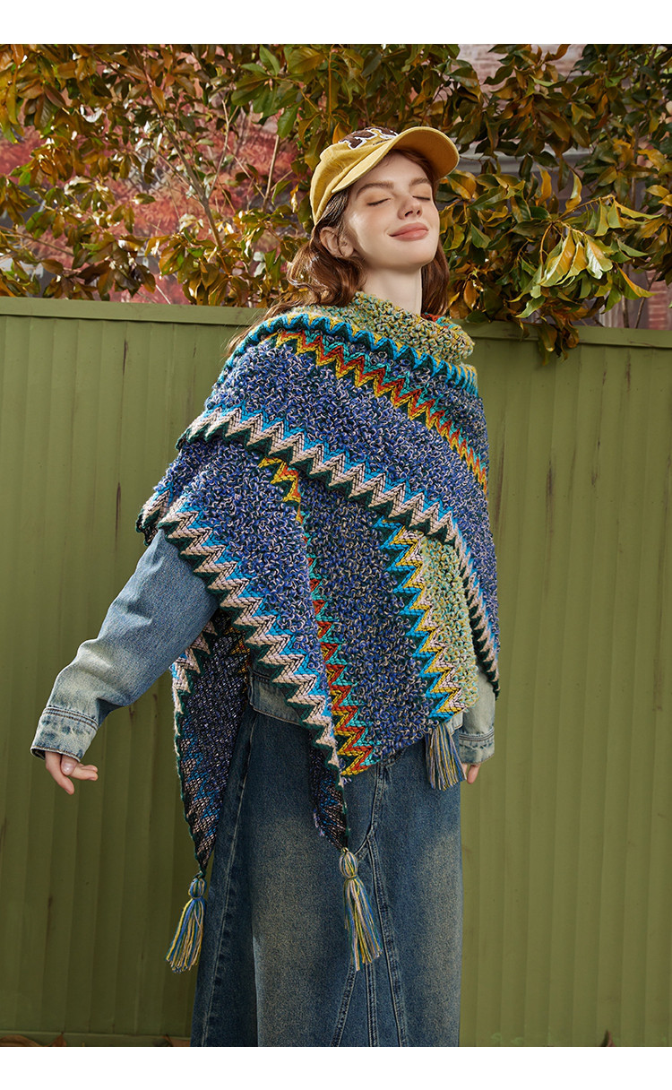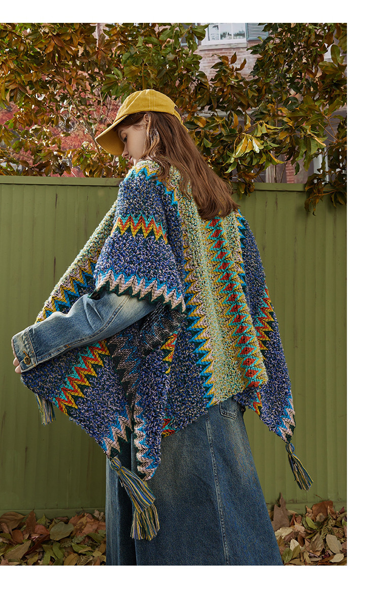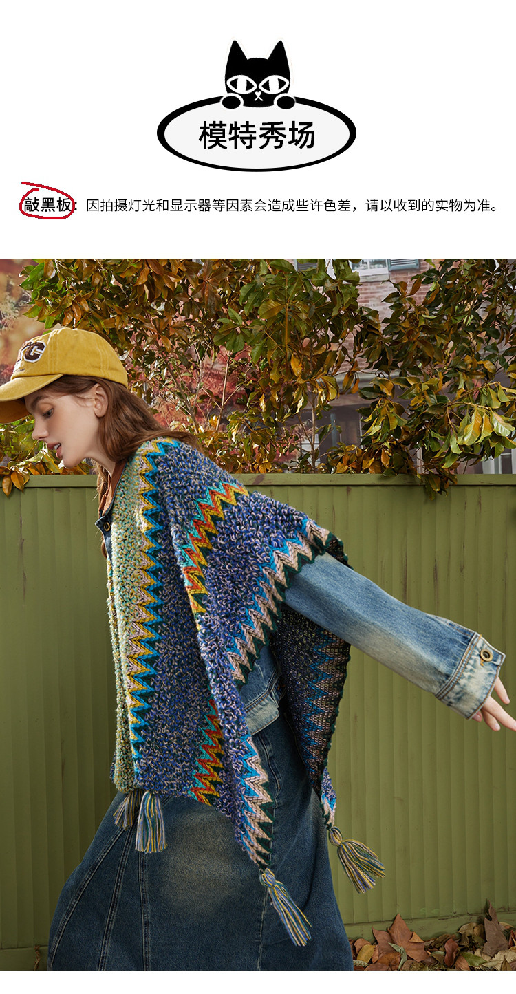 商品名称:新撞色花纹设计流苏披肩复古民族风围巾毛毯 518749
