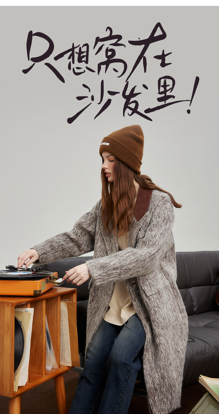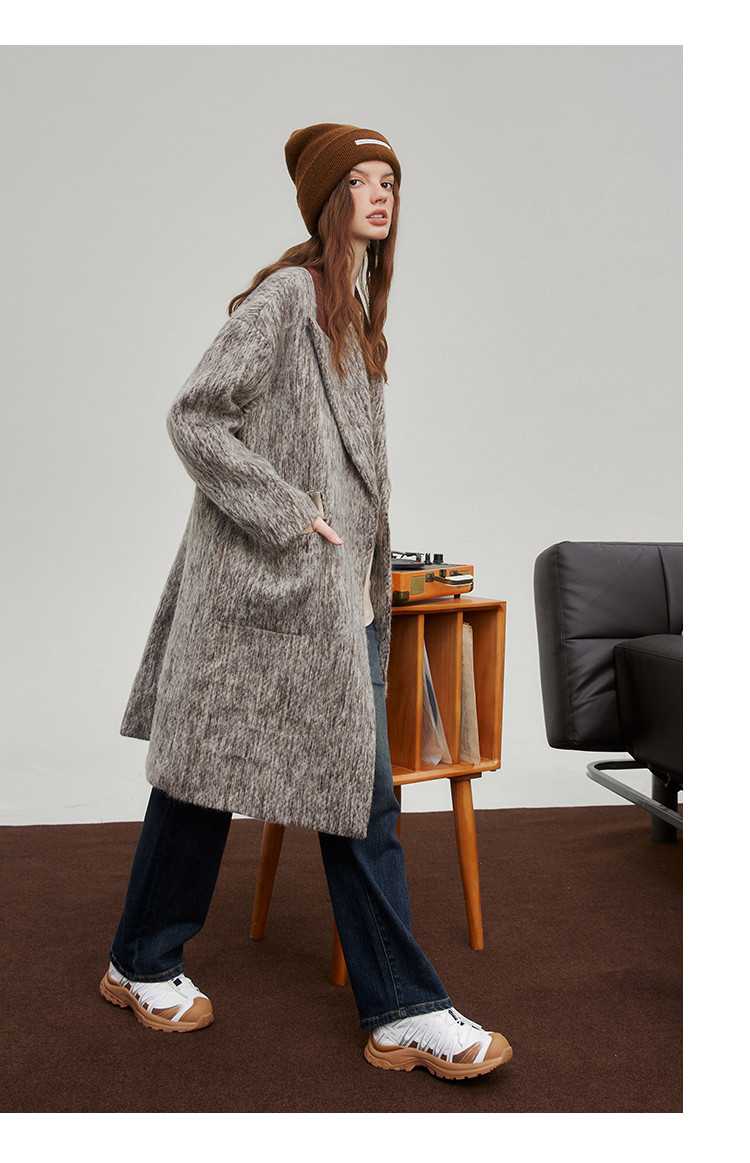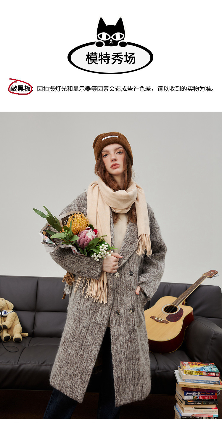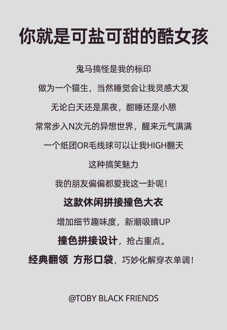 商品名称:新休闲拼接撞色中长款上衣百搭气质女式大衣 589149