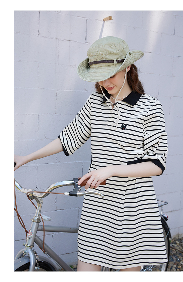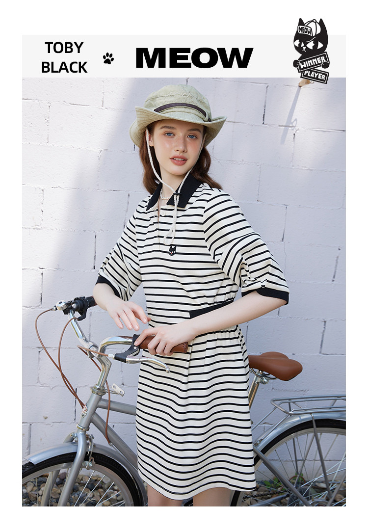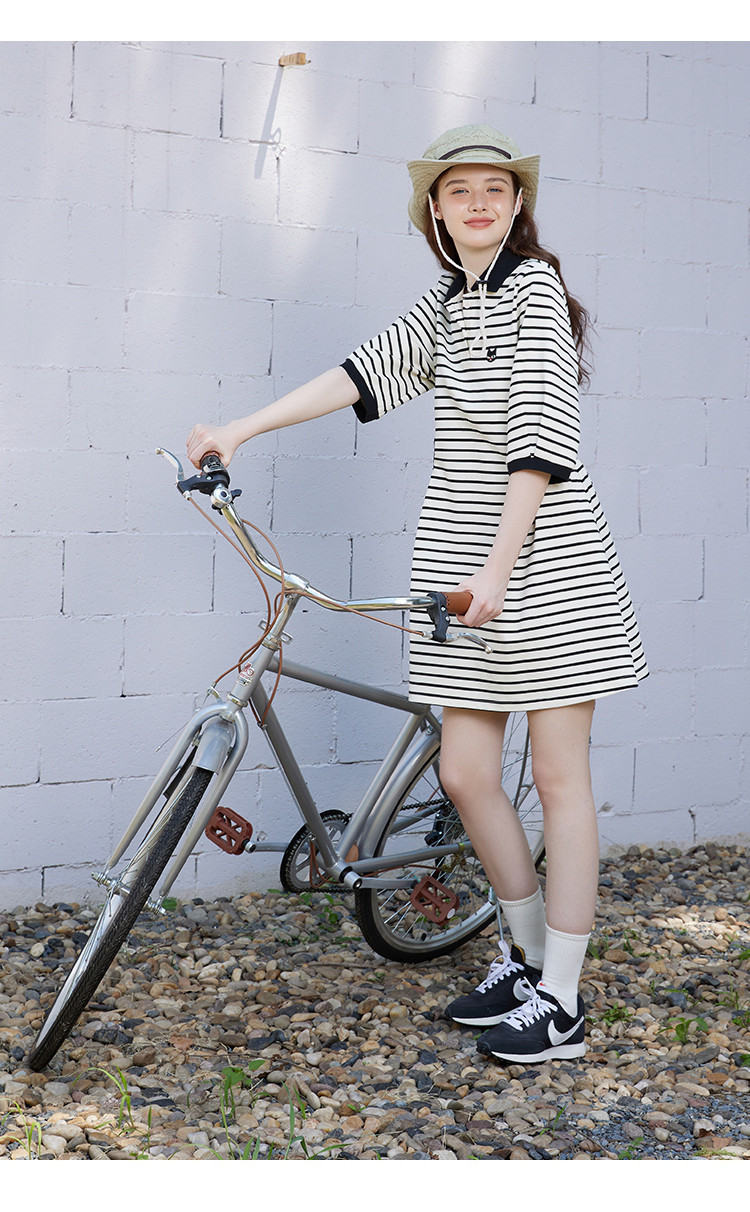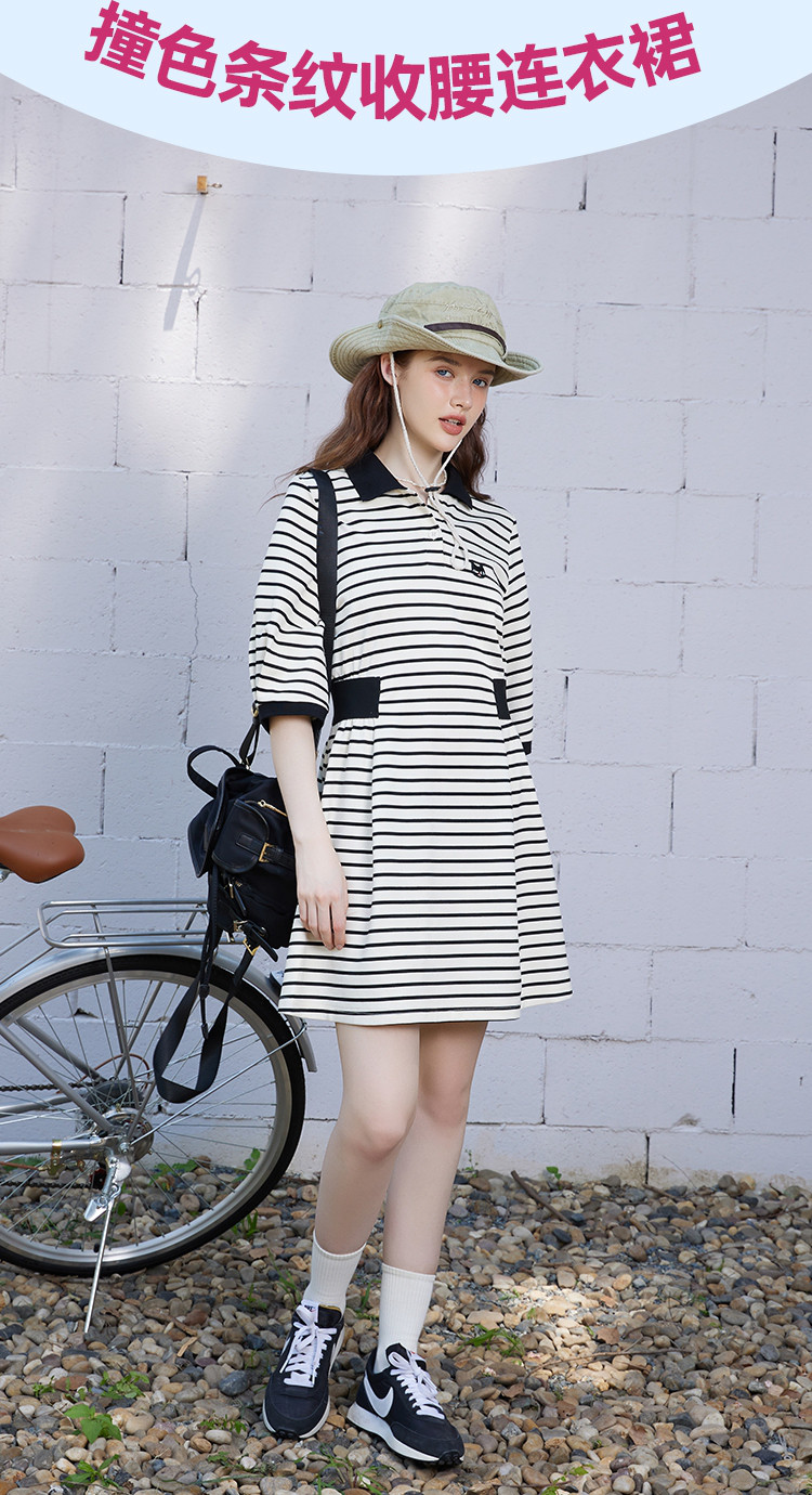商品名称:夏季条纹设计收腰正肩a字裙休闲气质百搭连衣裙 453725