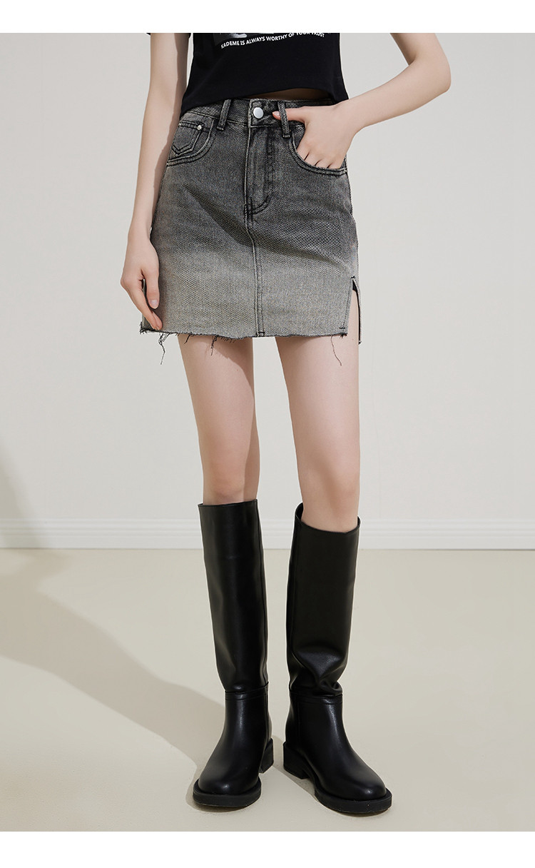 商品名称:夏季高腰显腿长辣妹包臀裙渐变设计微开叉半截裙 193437