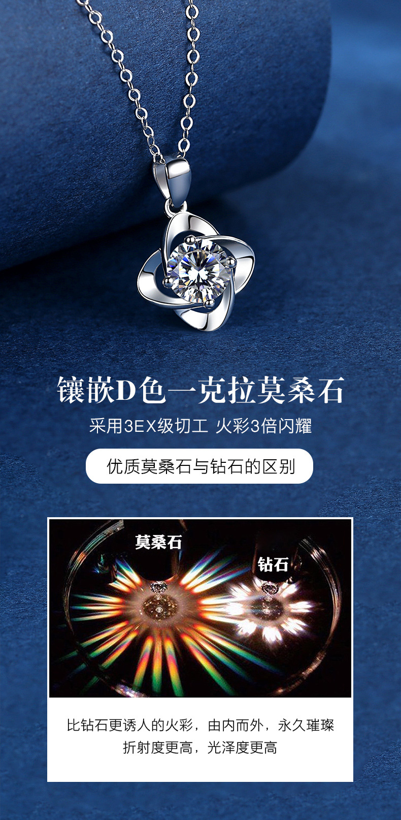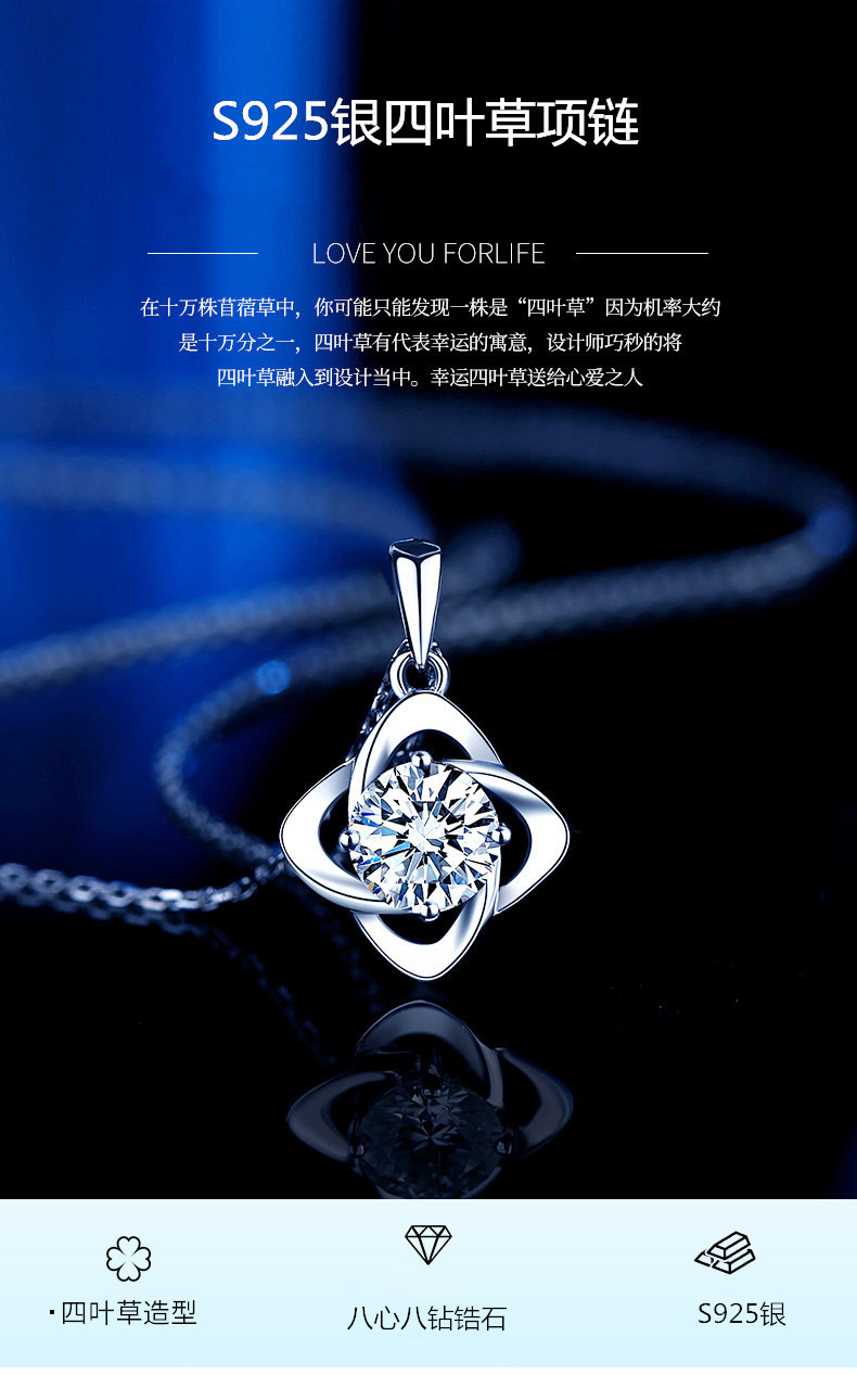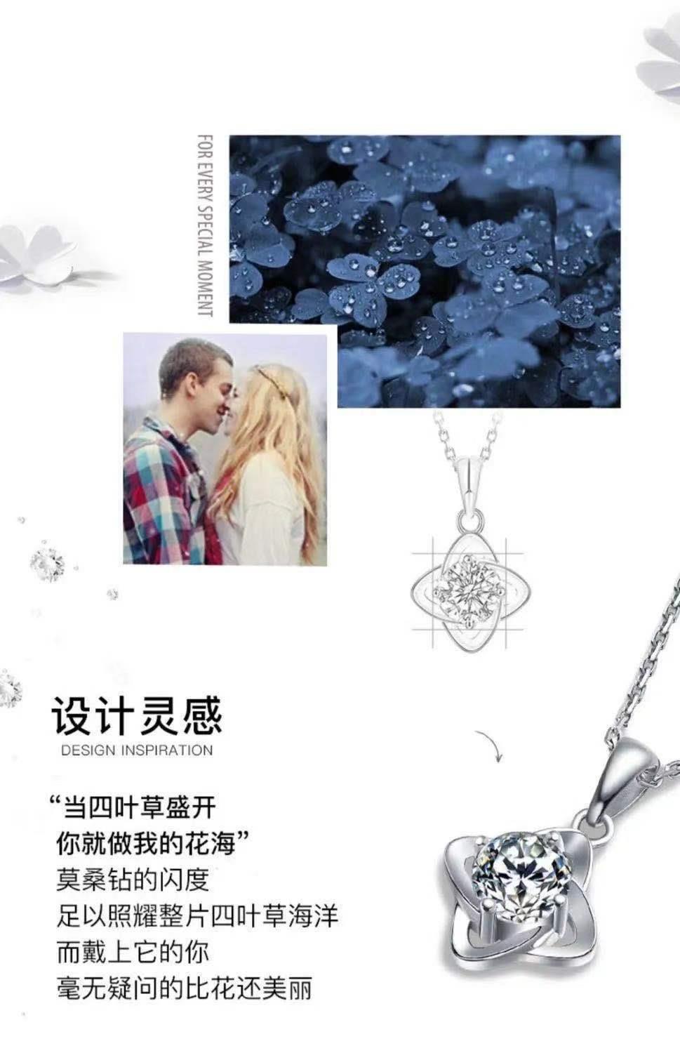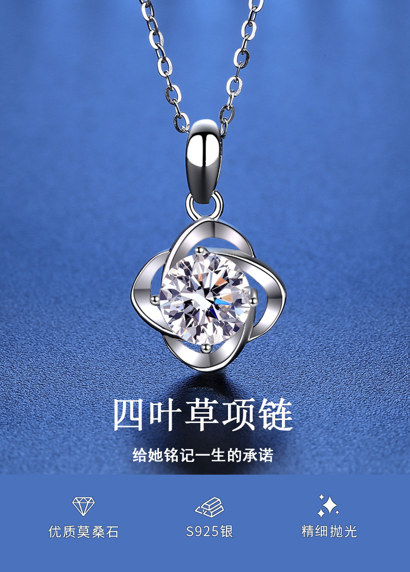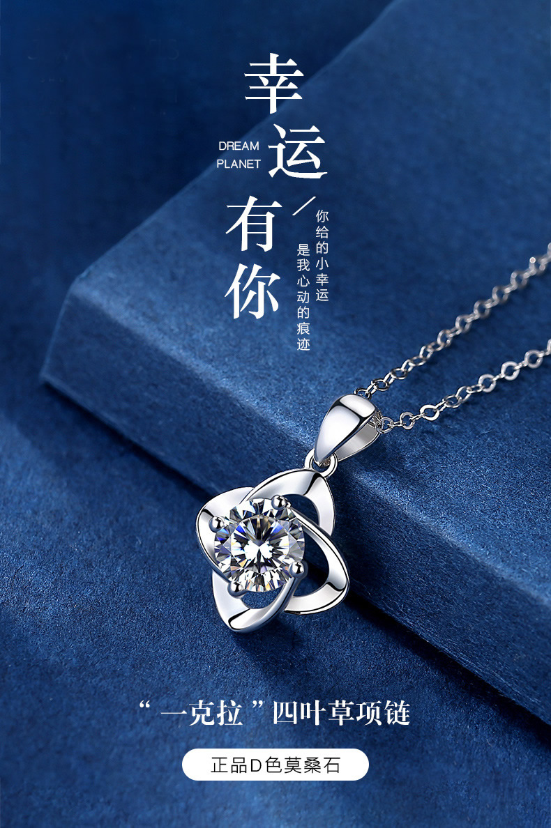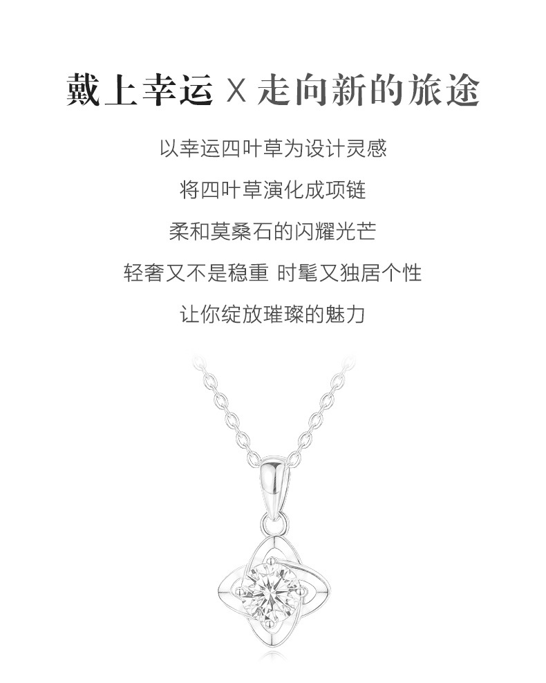 商品名称:香港周六福莫桑钻项链-四叶草【D级无暇莫桑钻+S925银 主石:6.5mm 1克拉】