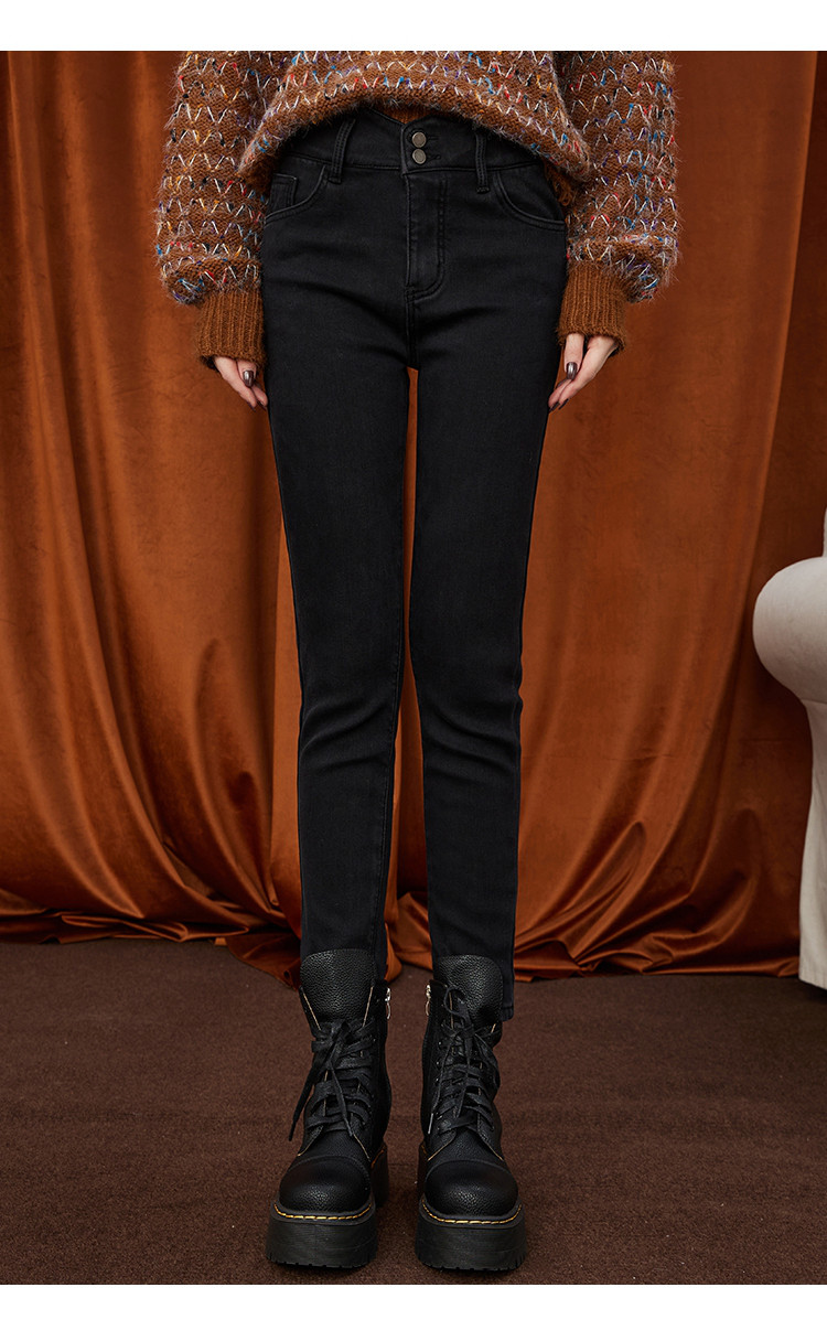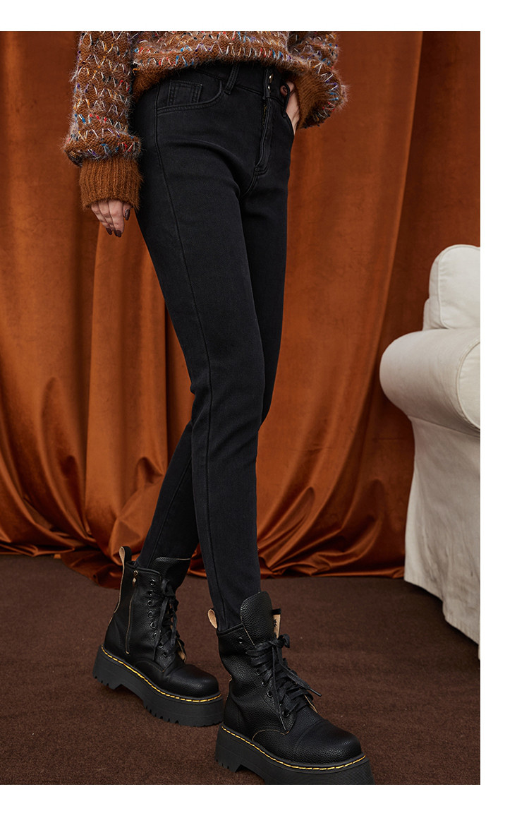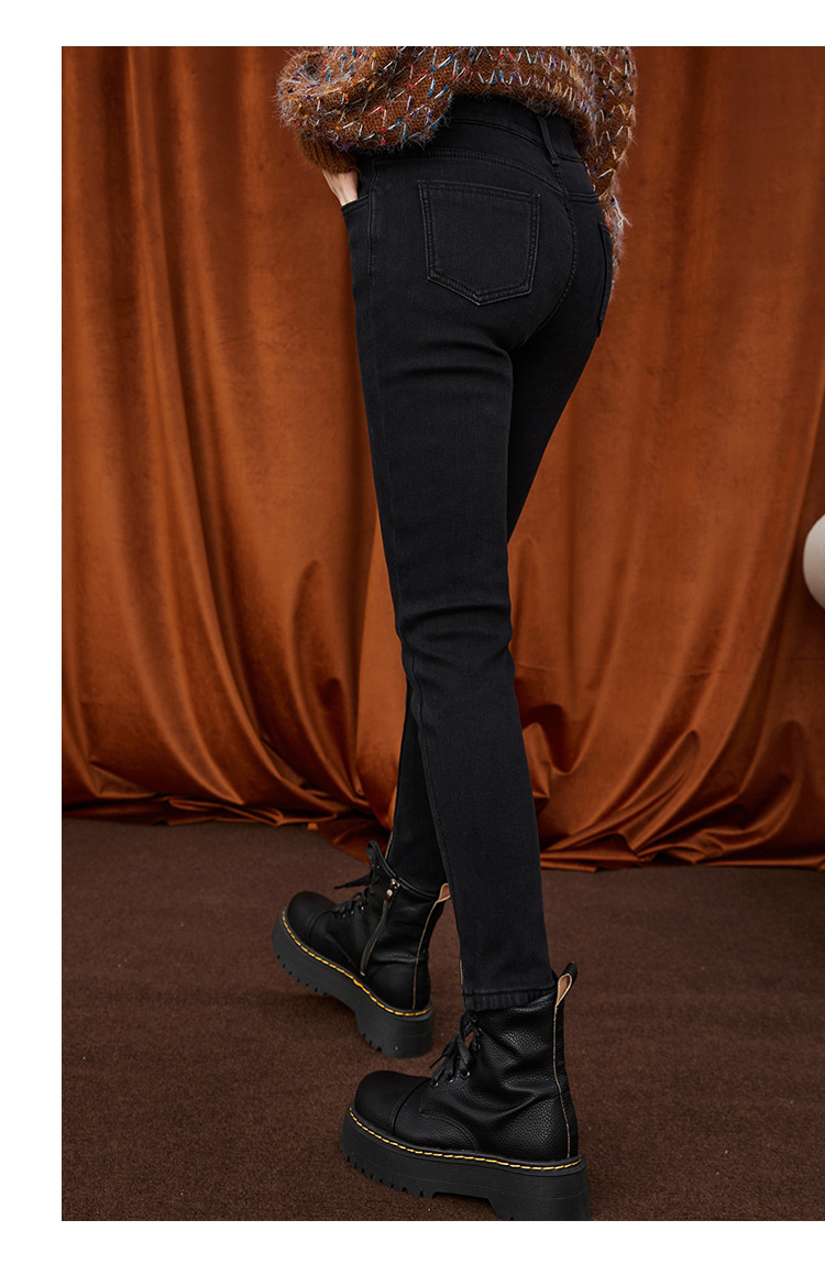 商品名称:街头风高腰休闲小脚裤秋季经典款纯色简约百女式牛仔裤 478237