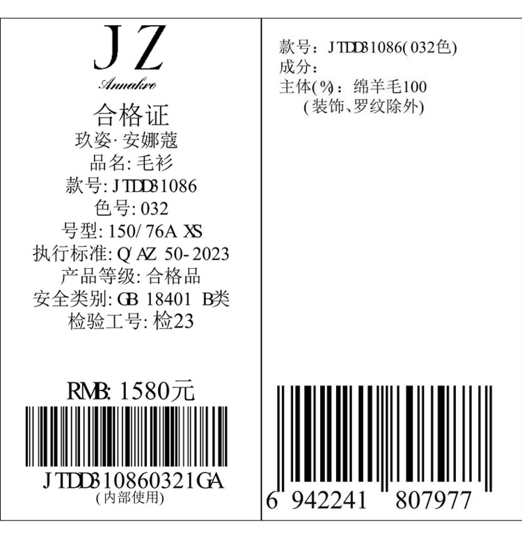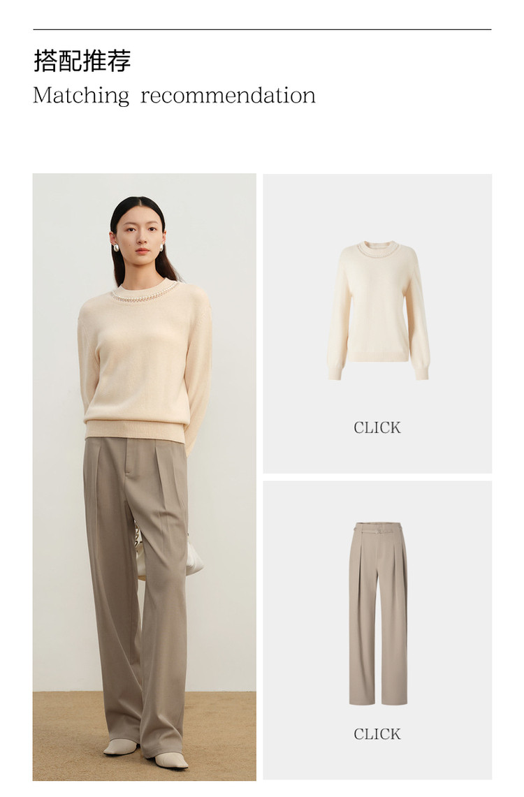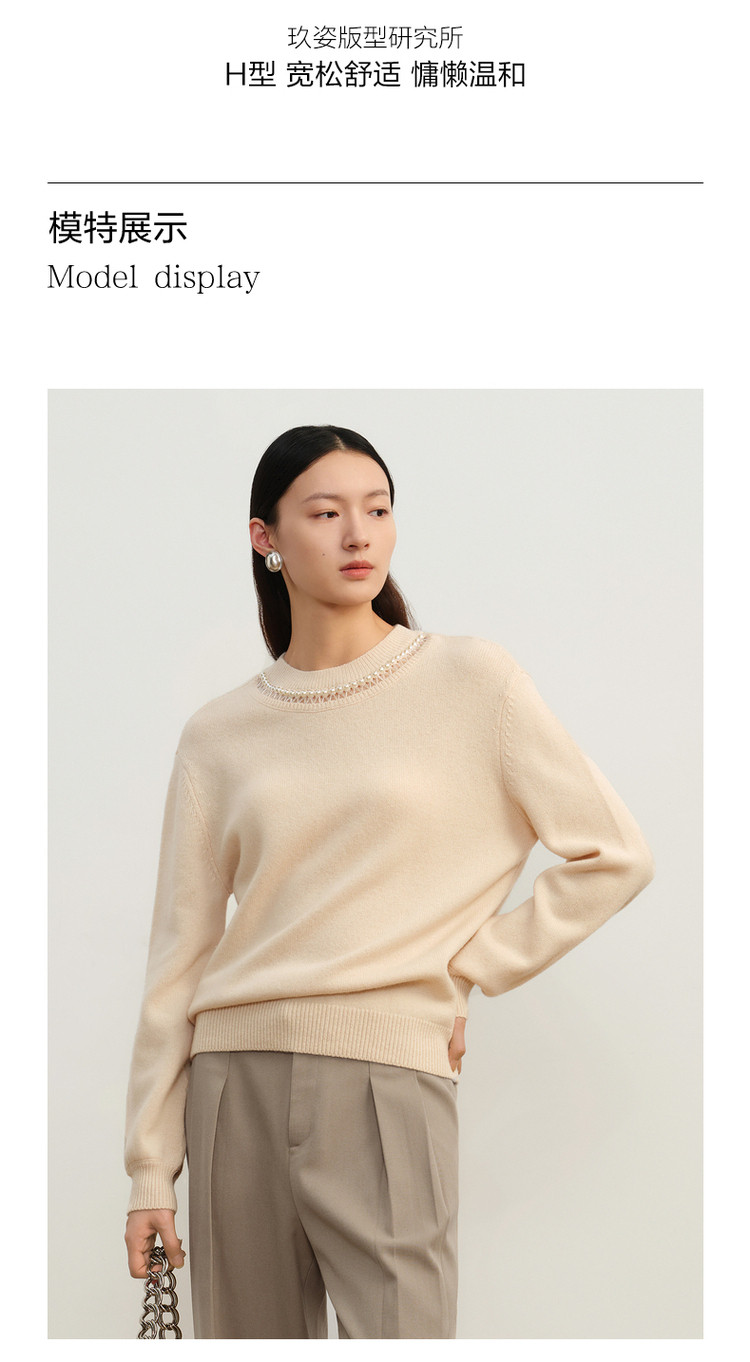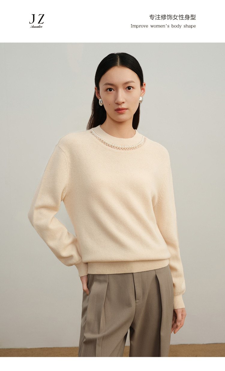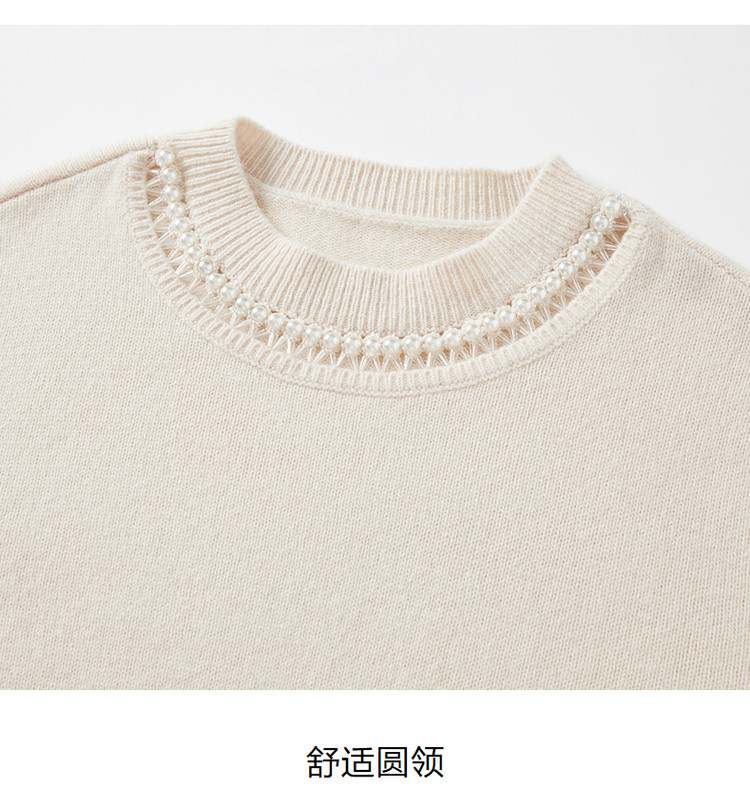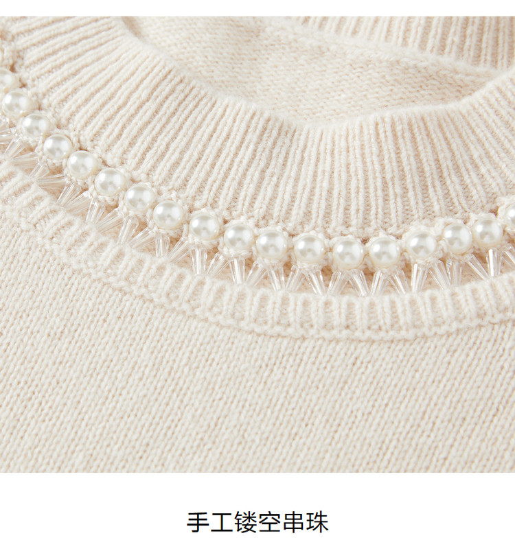商品名称:玖姿旗下安娜蔻系列珍珠镂空串珠羊毛衫圆领针织衫女冬季 169612