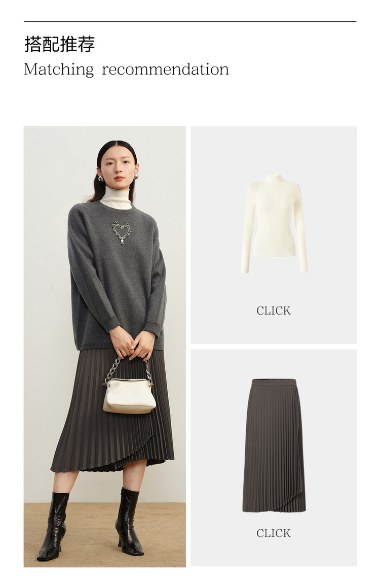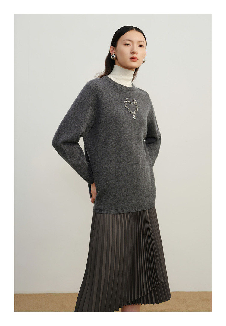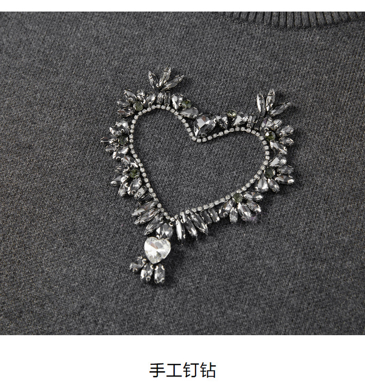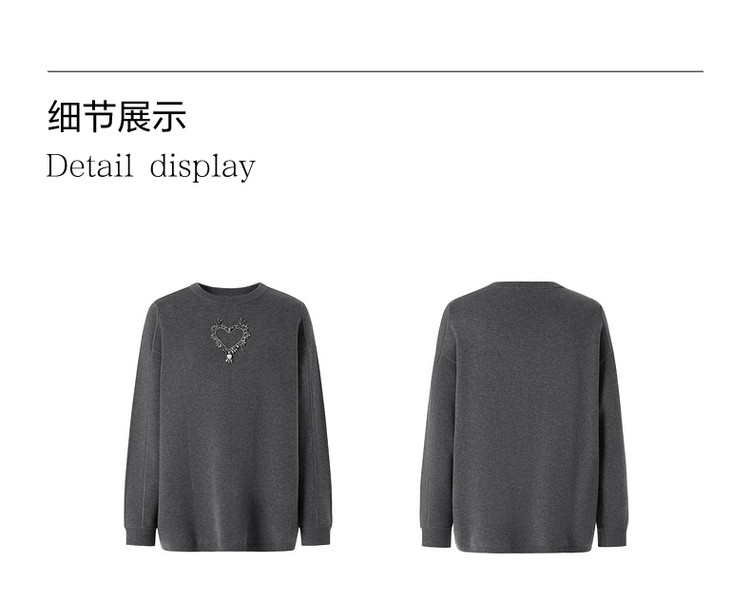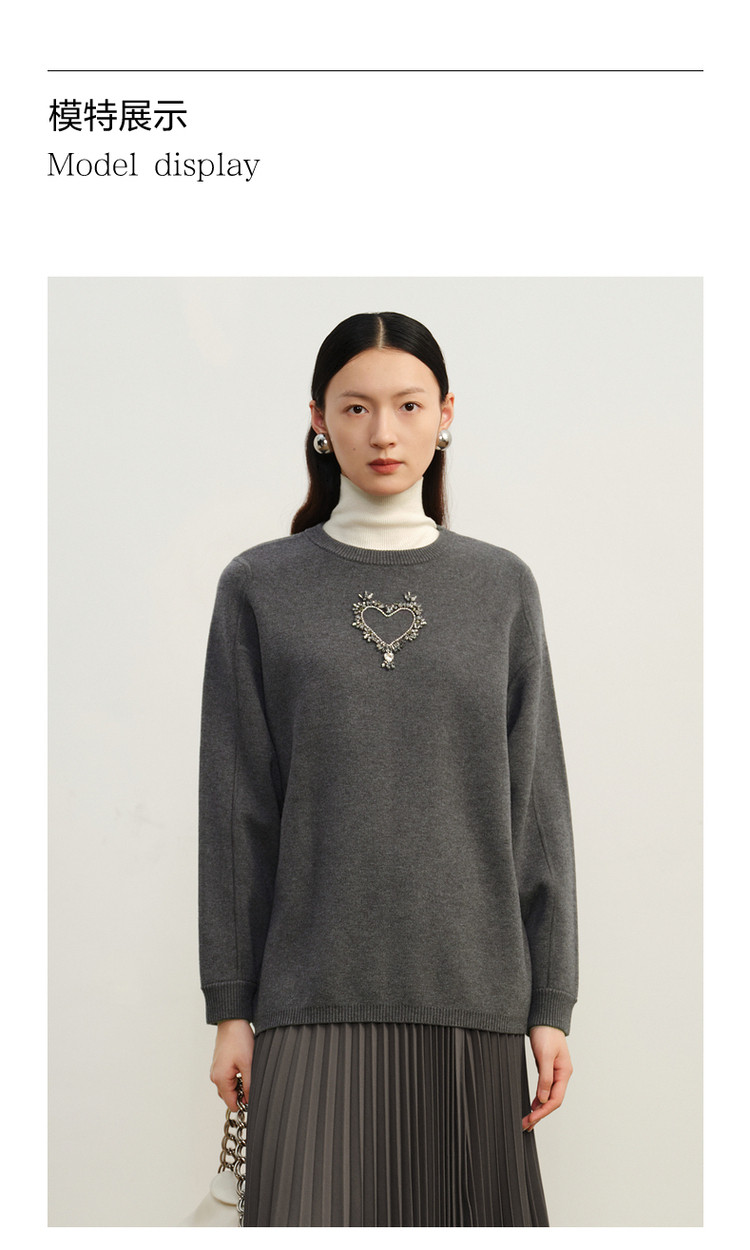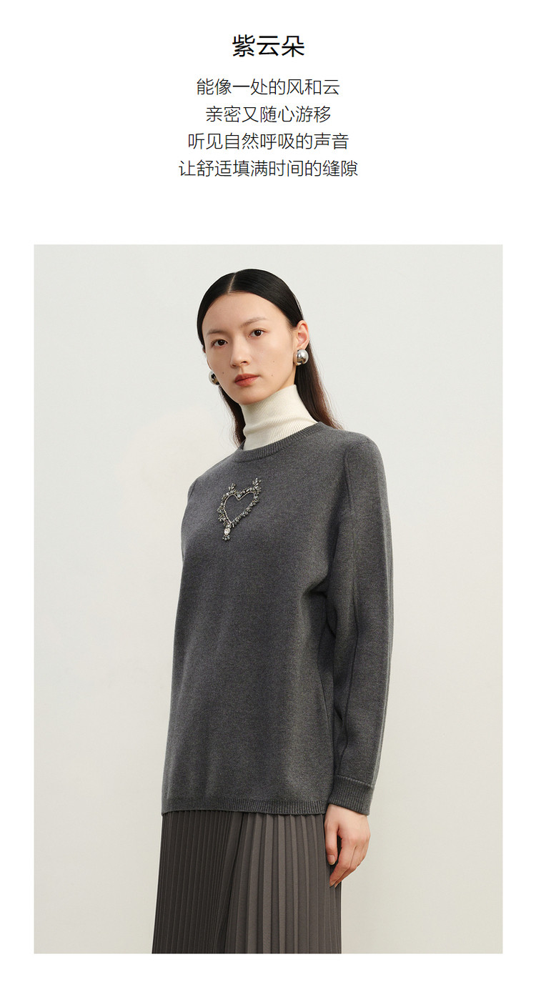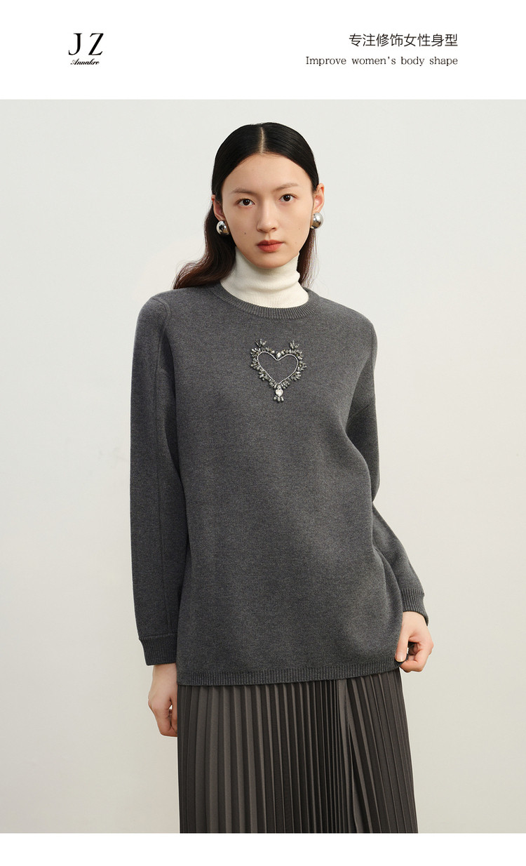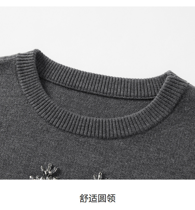 商品名称:玖姿旗下安娜蔻系列优雅手工钉钻花纱长袖圆领毛衣女冬季 791244