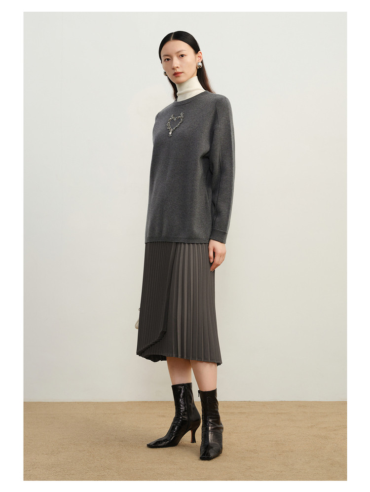 玖姿旗下安娜蔻系列优雅手工钉钻花纱长袖圆领毛衣女冬季 791244
