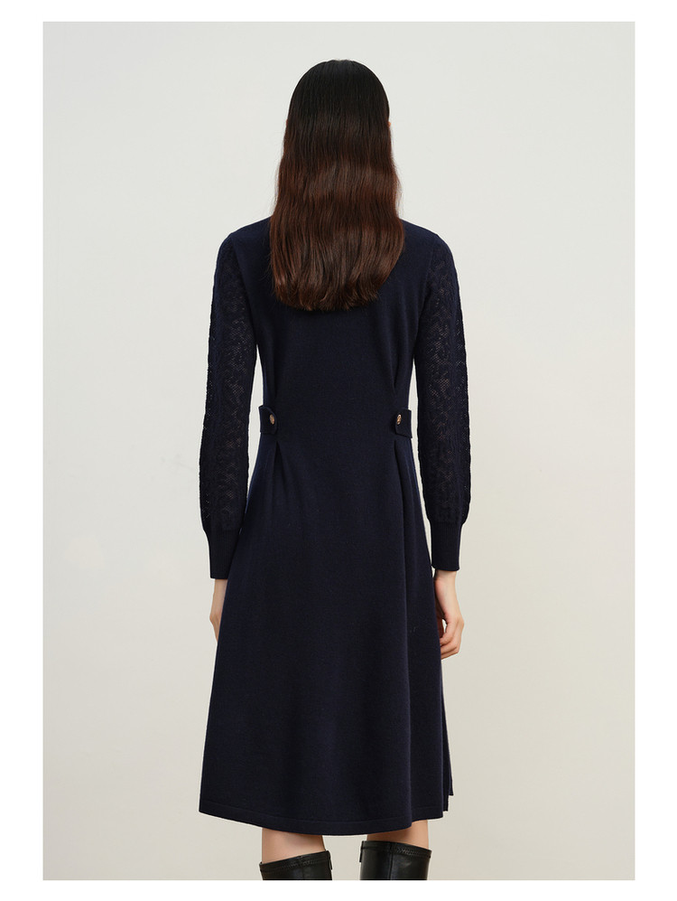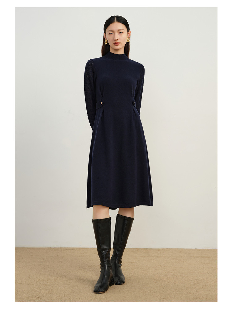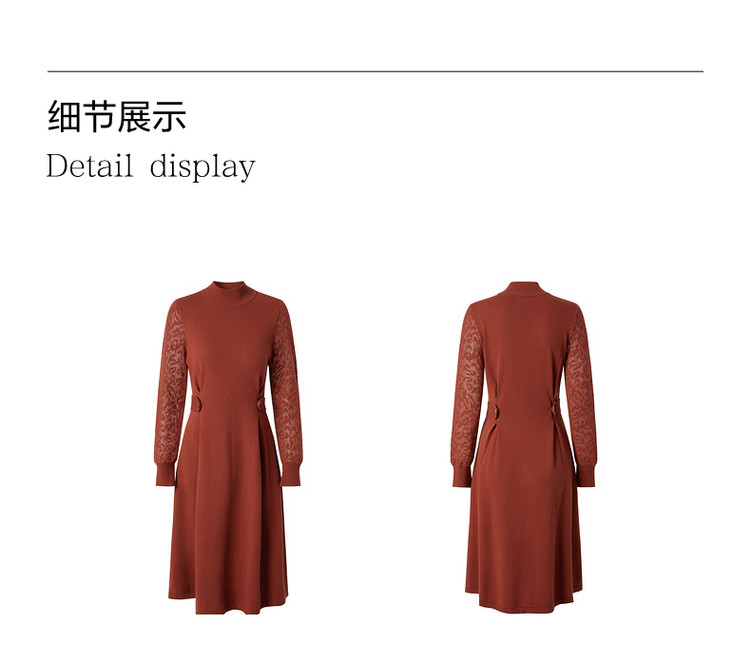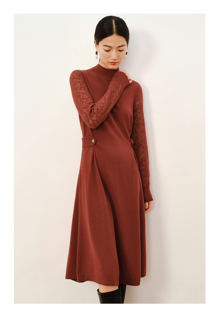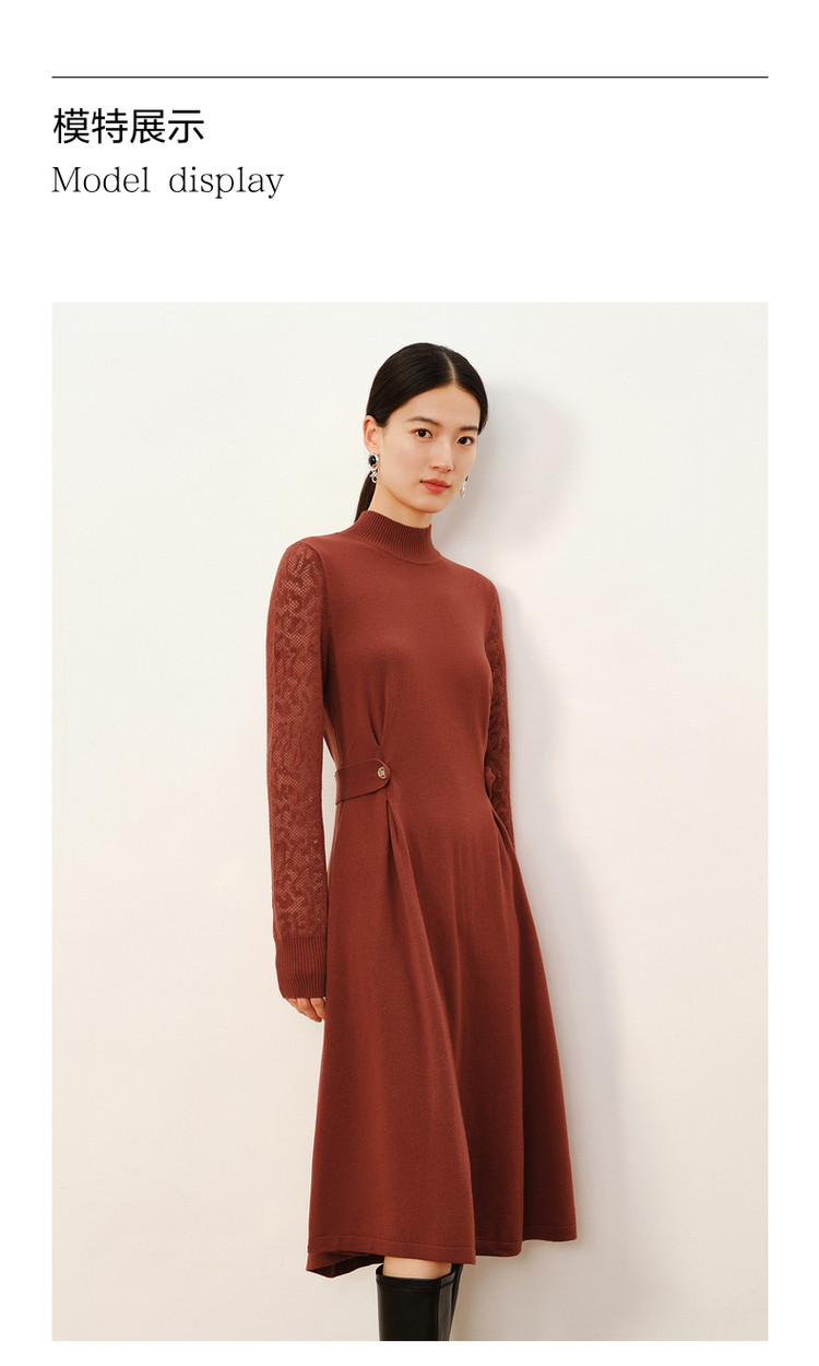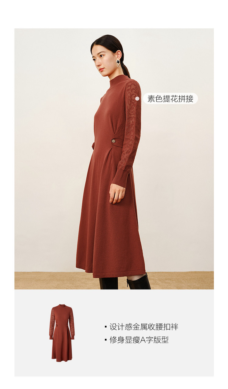 商品名称:玖姿旗下安娜蔻系列简约大气素色提花修身A字羊毛连衣裙冬季 921612