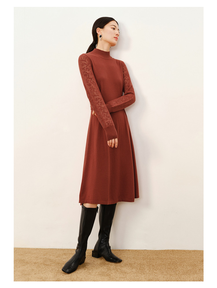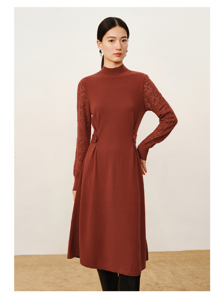 玖姿旗下安娜蔻系列简约大气素色提花修身A字羊毛连衣裙冬季 921612