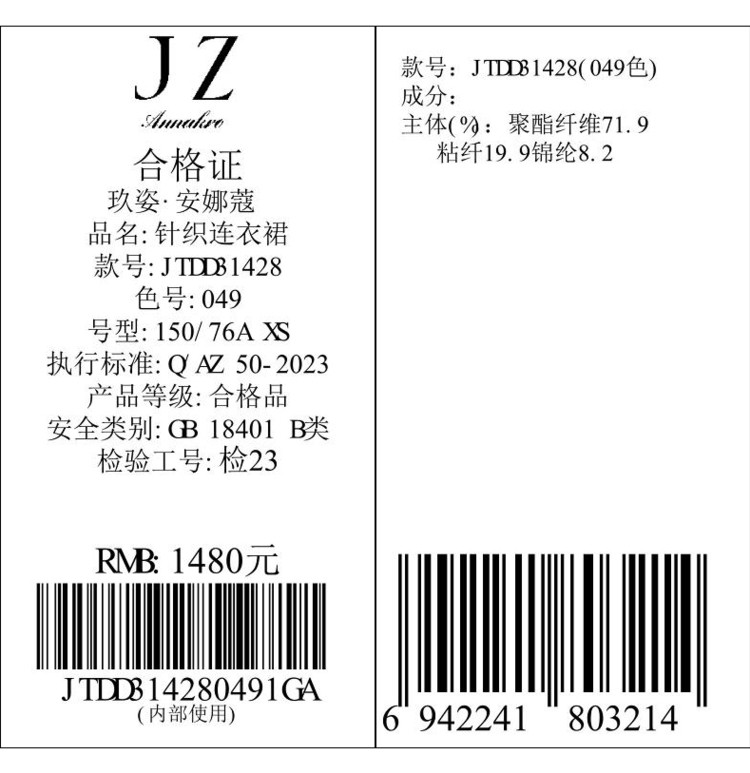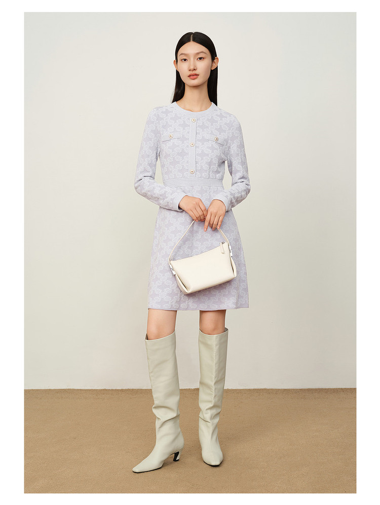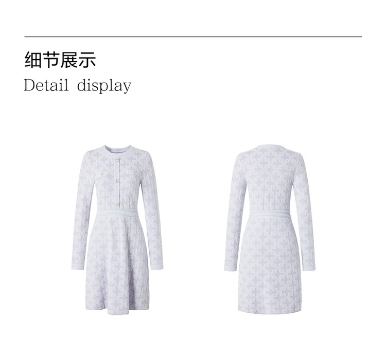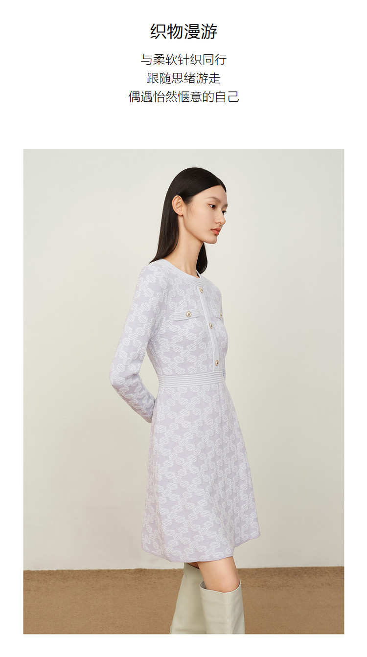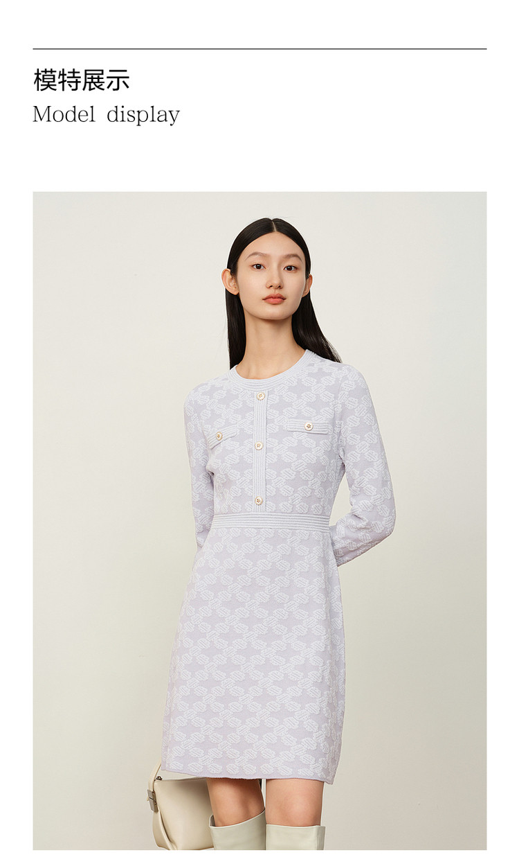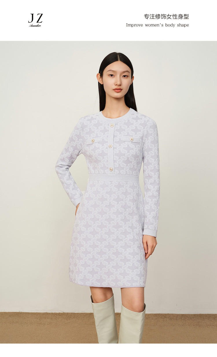 商品名称:玖姿旗下安娜蔻系列优雅圆领雪尼尔混纺收腰毛衫连衣裙女冬季 062092