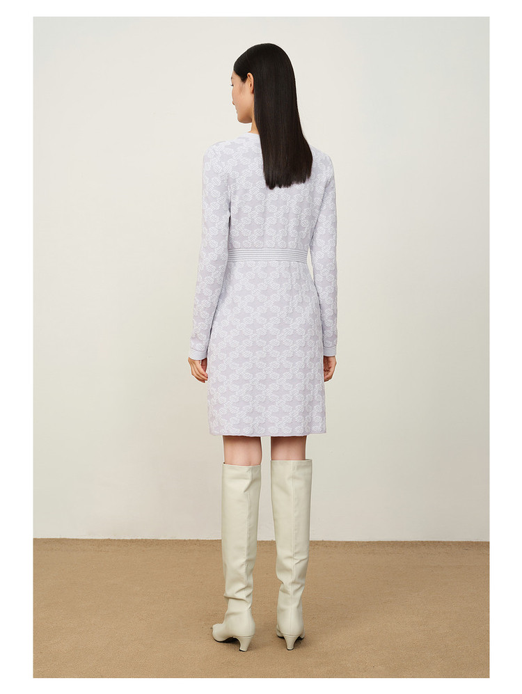 玖姿旗下安娜蔻系列优雅圆领雪尼尔混纺收腰毛衫连衣裙女冬季 062092