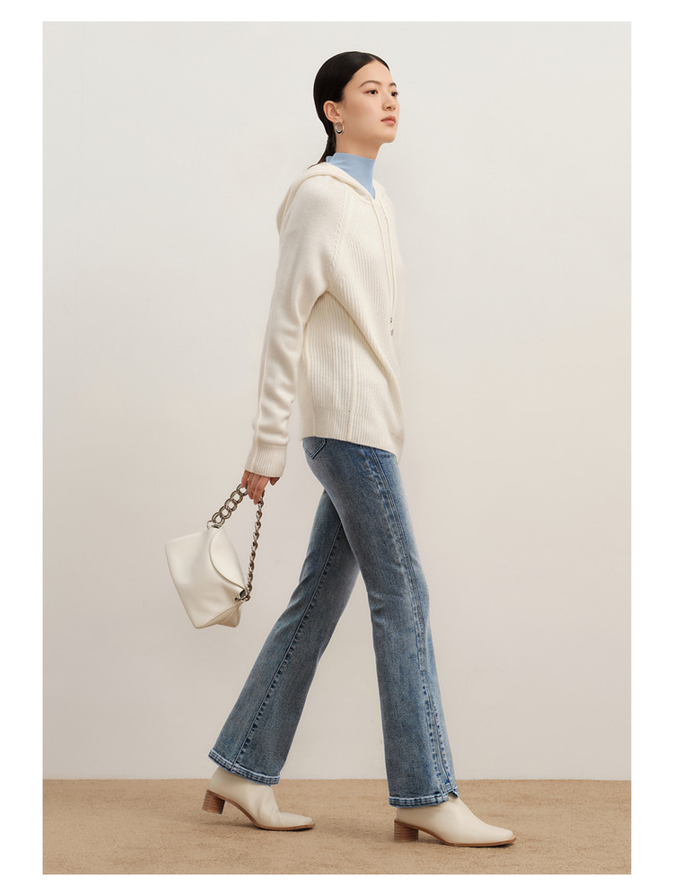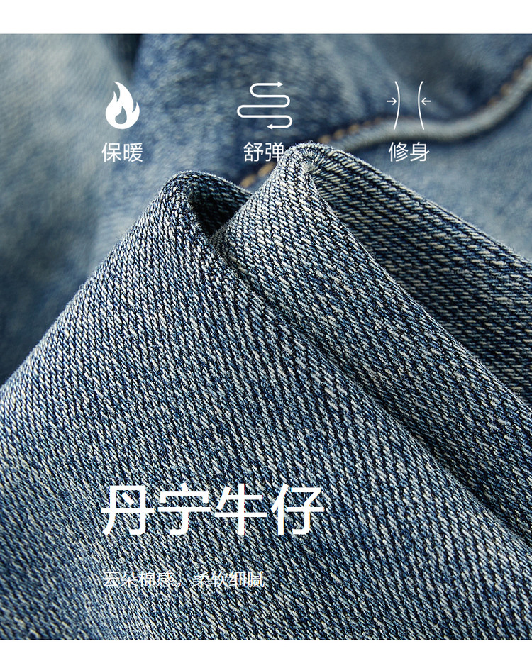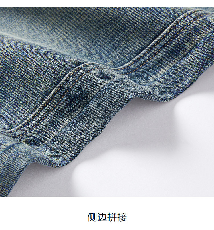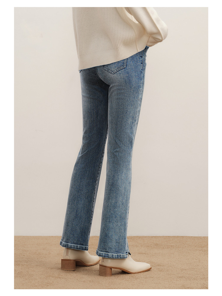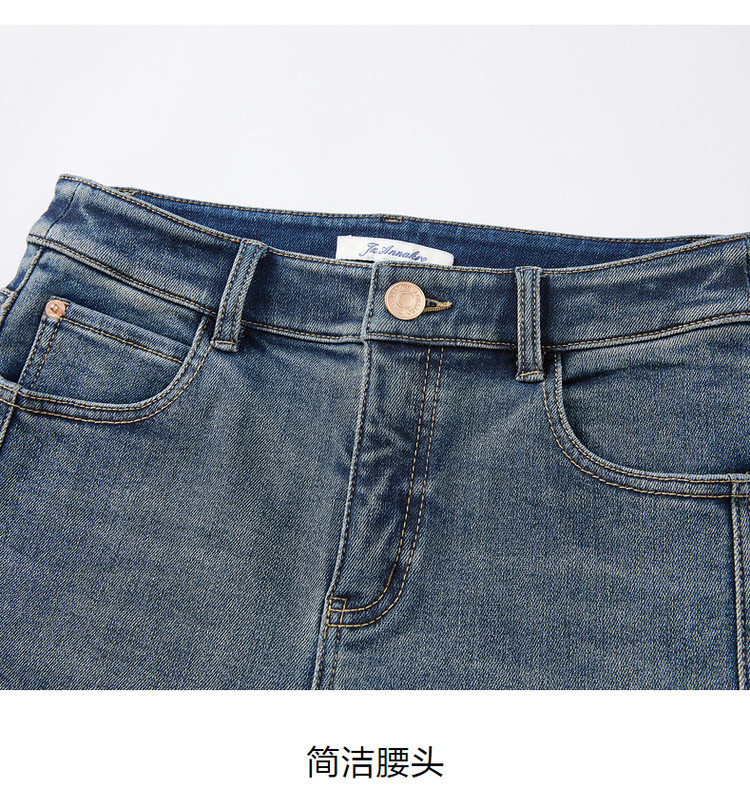 商品名称:玖姿旗下安娜蔻系列复古拼接设计感加绒微喇裤牛仔长裤女冬季 206348
