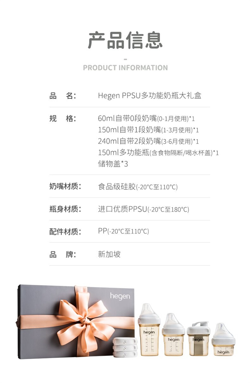 商品名称:hegen 奶瓶新款原装进口初乳新生儿宝宝防胀气耐摔PPSU礼盒