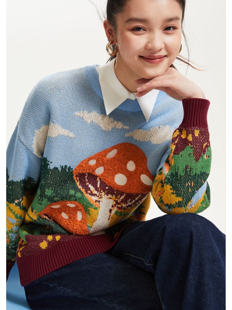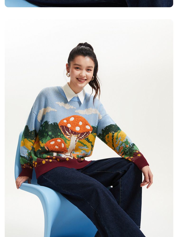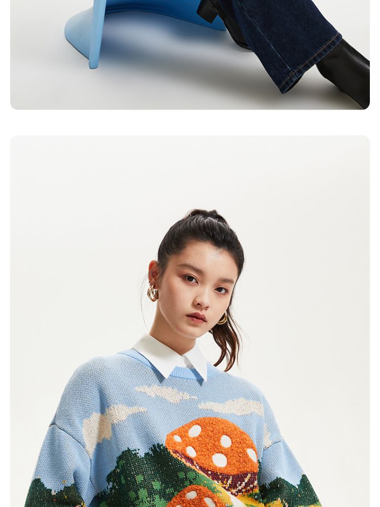商品名称:【艺术图案设计】春夏季专柜宽松落肩毛衣针织衫女气质百搭时尚 357073
