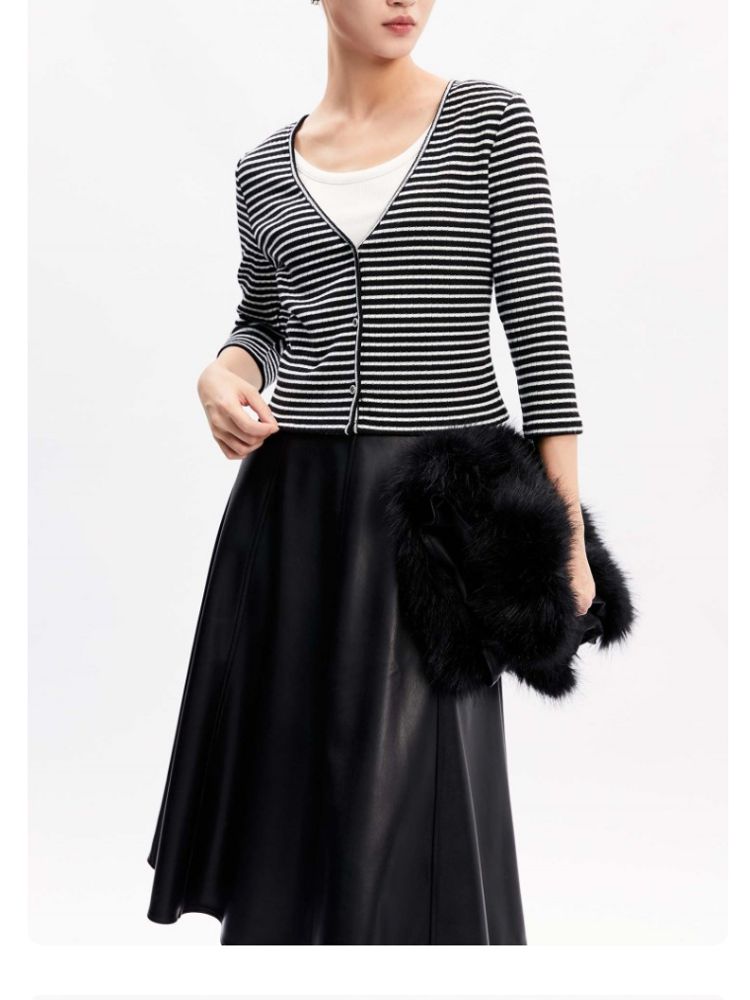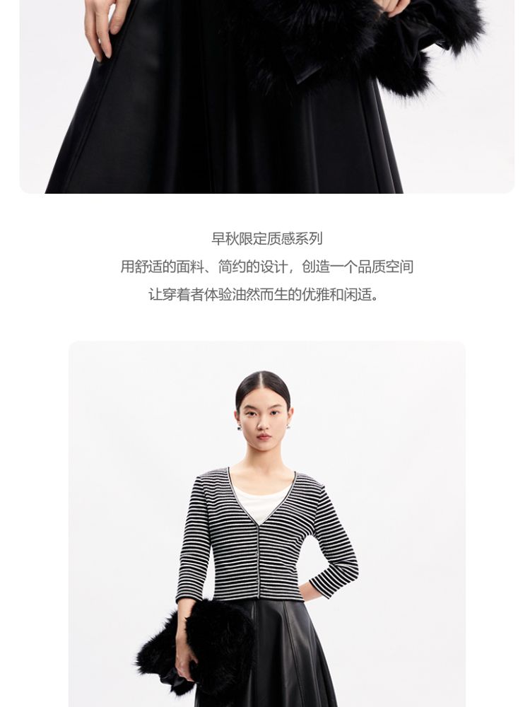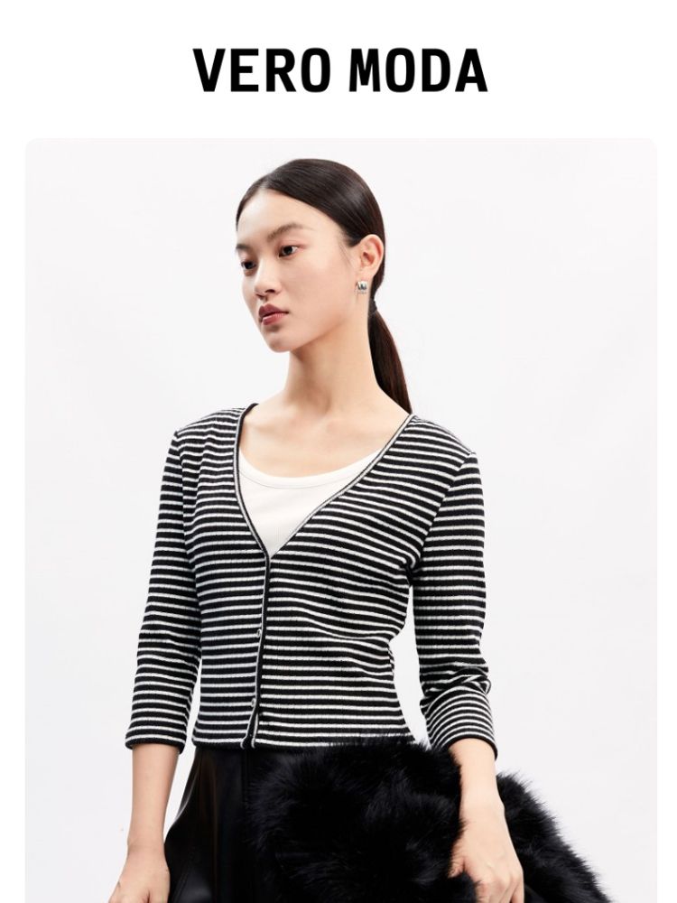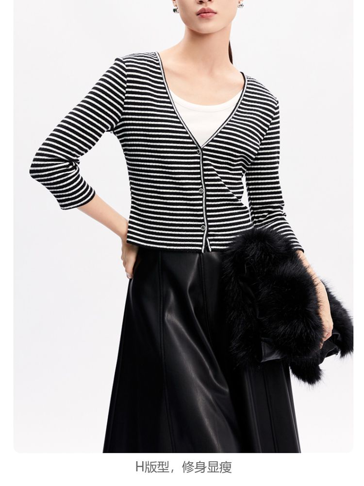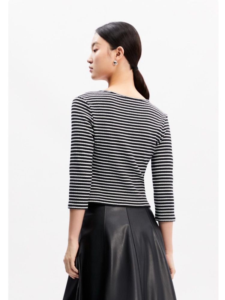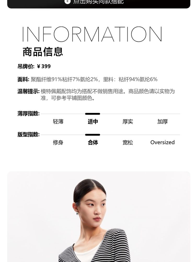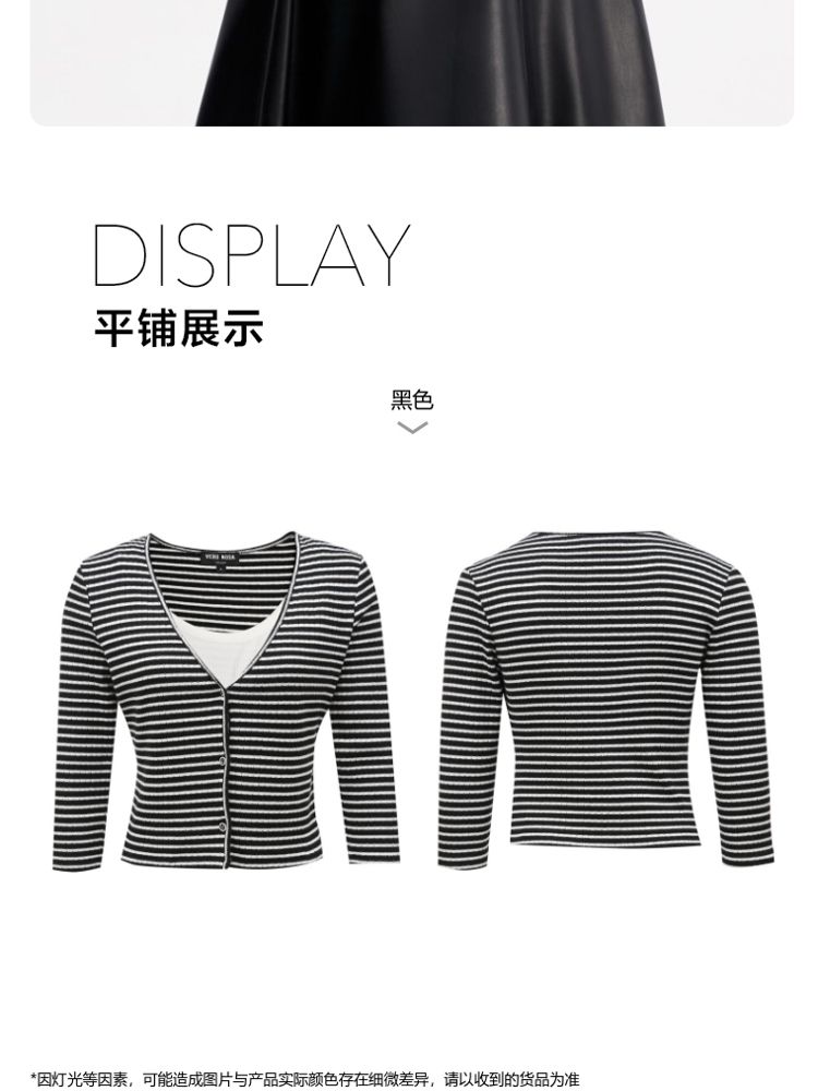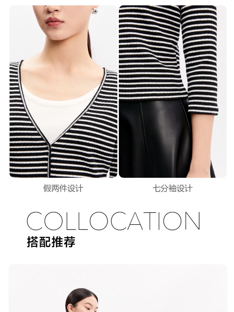 商品名称:【假两件设计】春秋专柜款条纹休闲简约气质T恤上衣女 466065