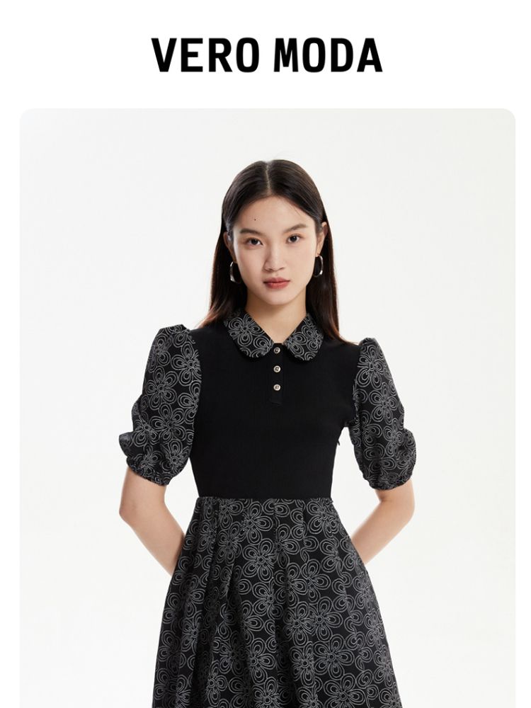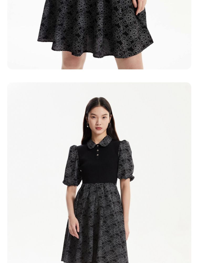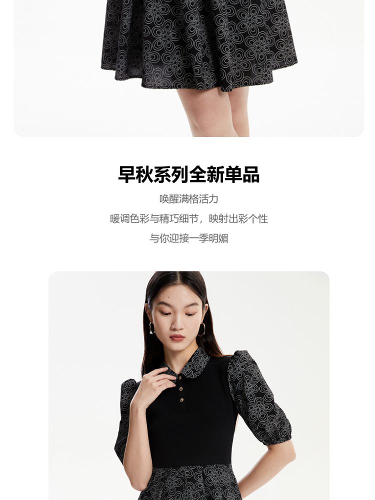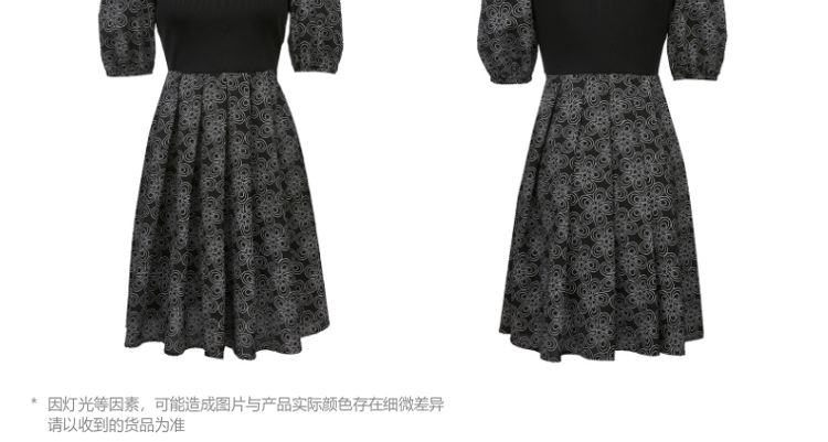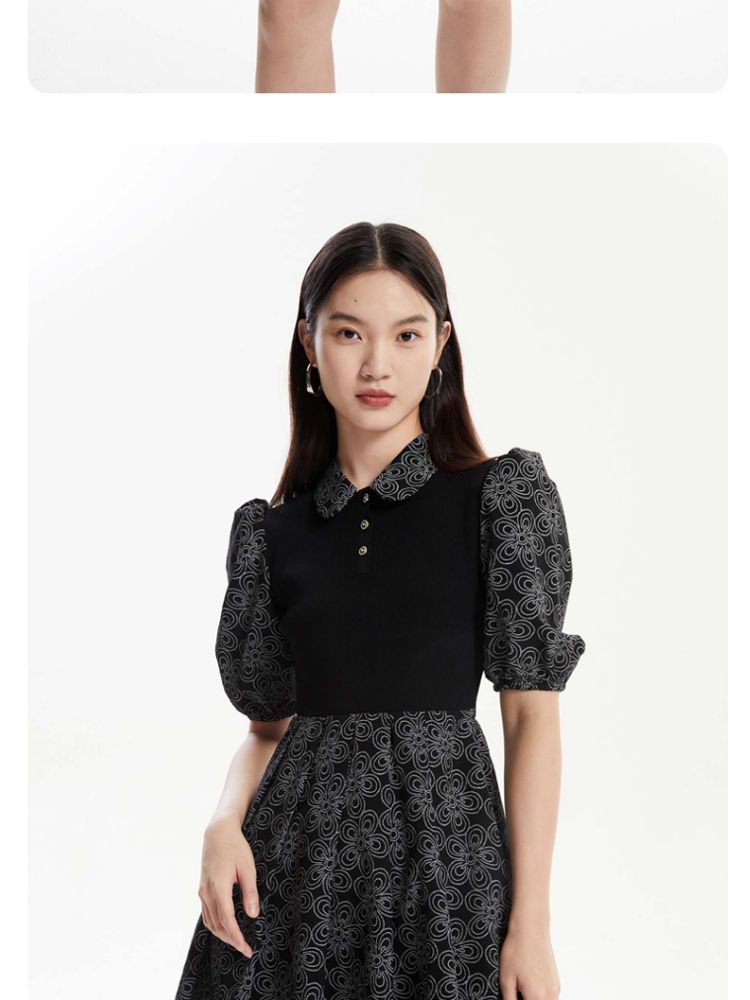 商品名称:【春夏专柜款】拼色高腰显瘦减龄泡泡袖娃娃领连衣裙气质百搭时尚 101201