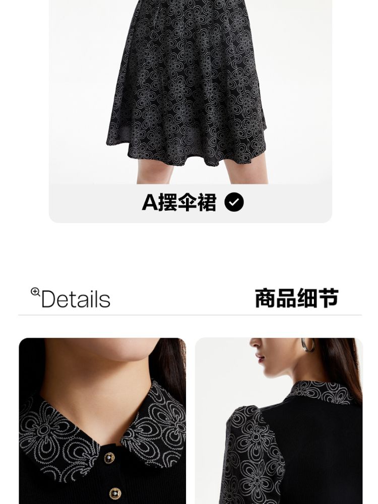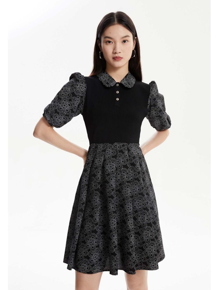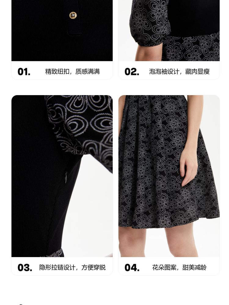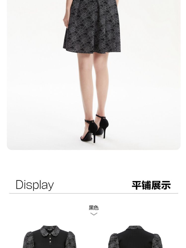 商品名称:【春夏专柜款】拼色高腰显瘦减龄泡泡袖娃娃领连衣裙气质百搭时尚 101201
