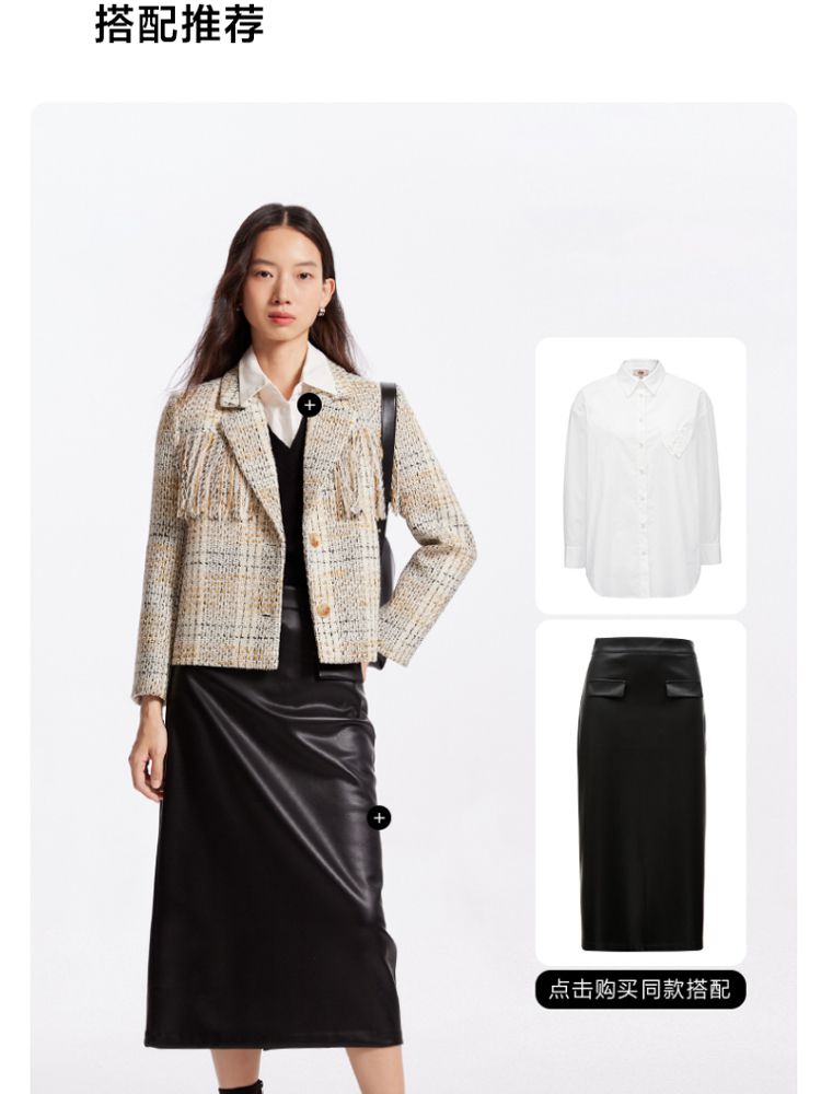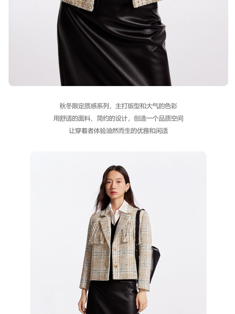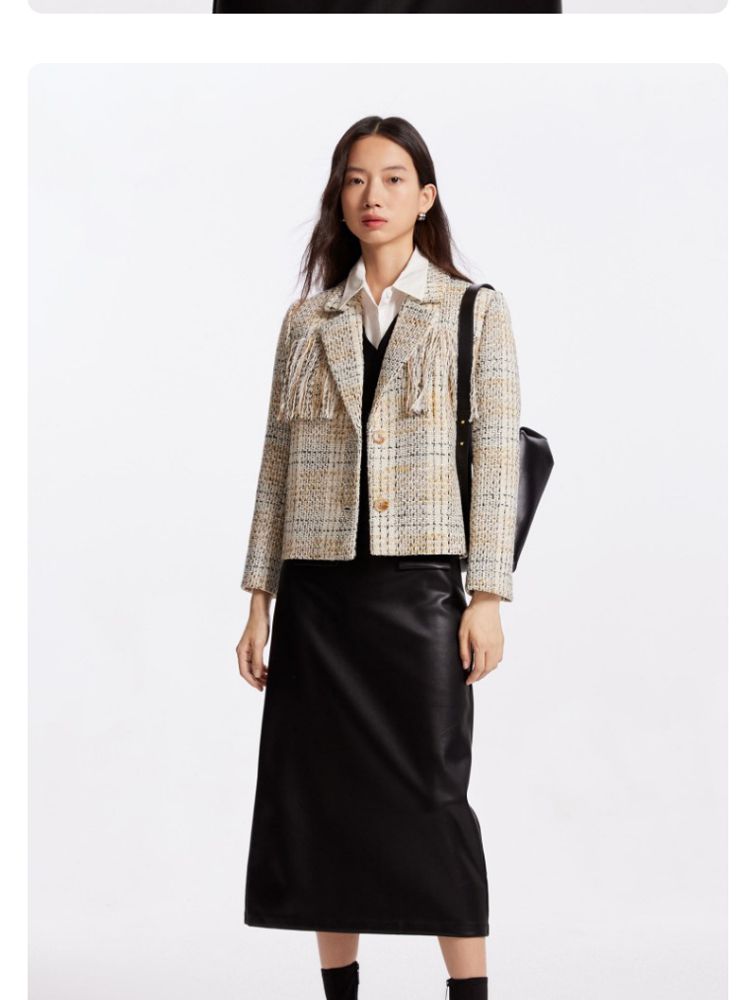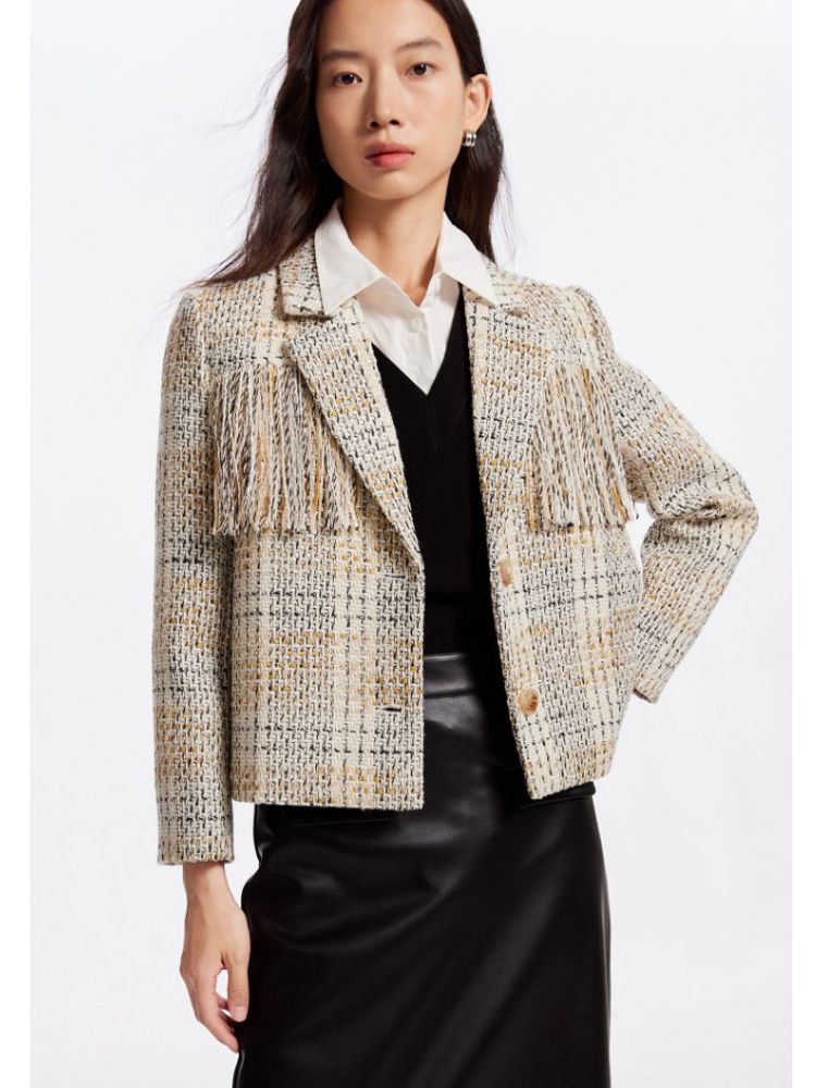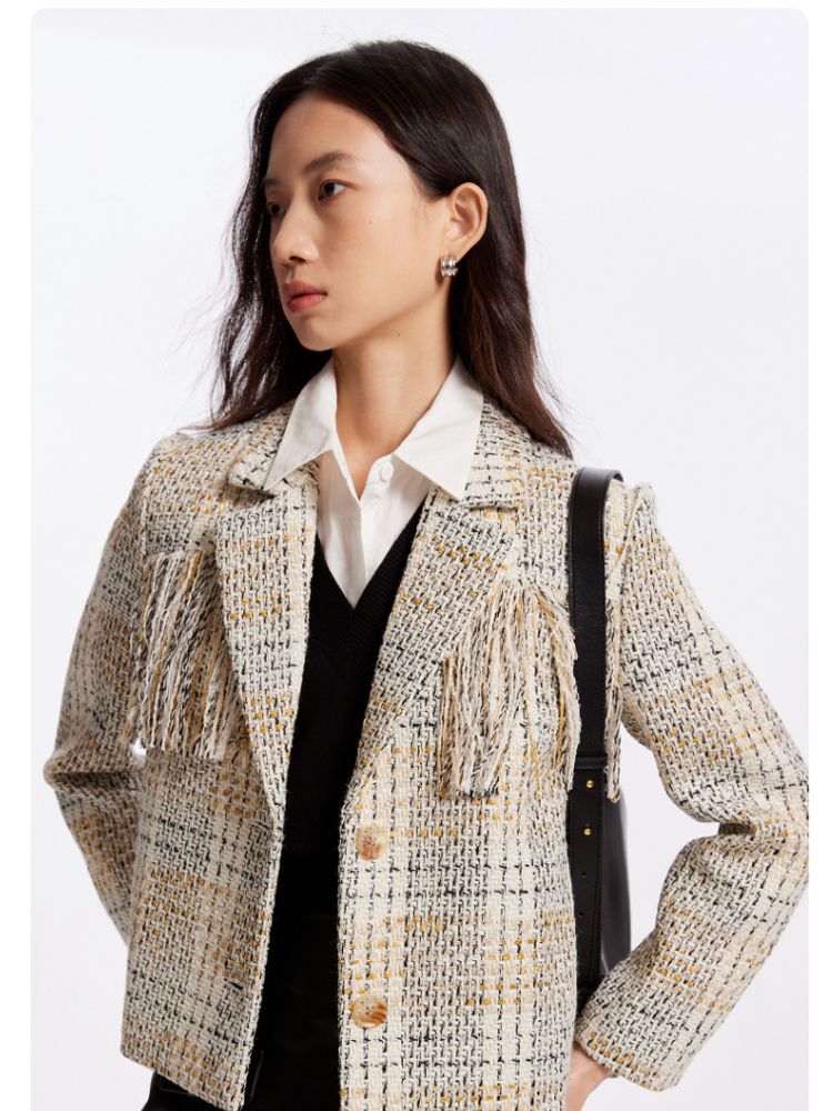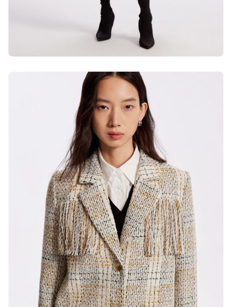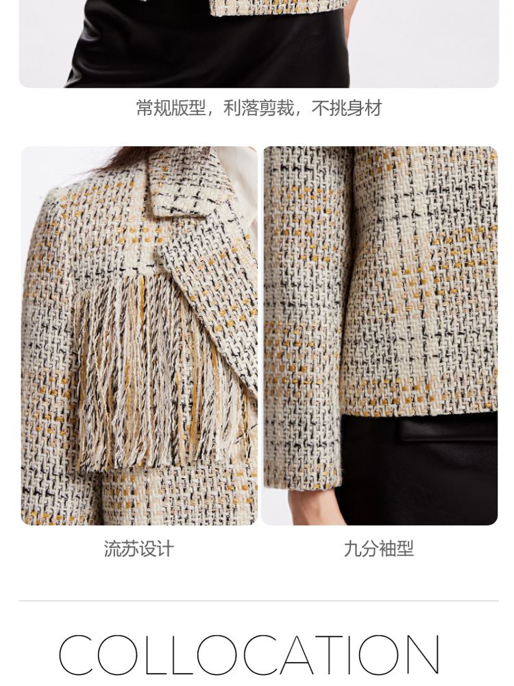 商品名称:【粗花呢面料】春夏季专柜优雅流苏九分袖西服外套气质百搭时尚 361553