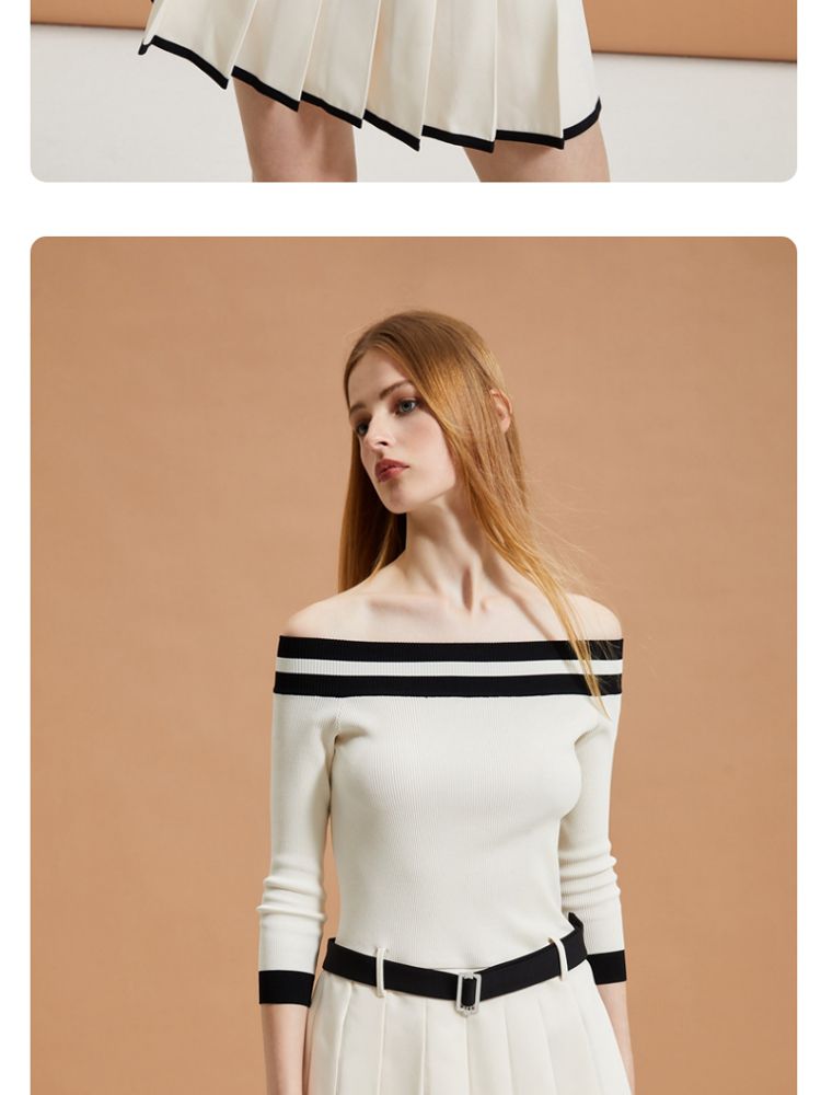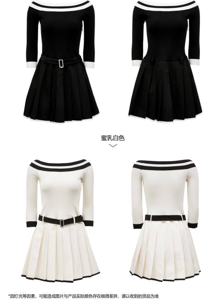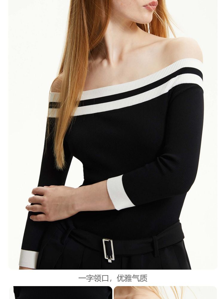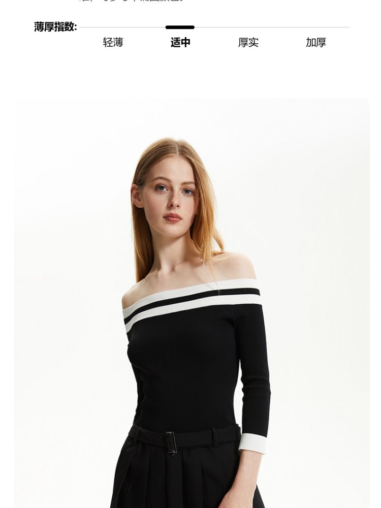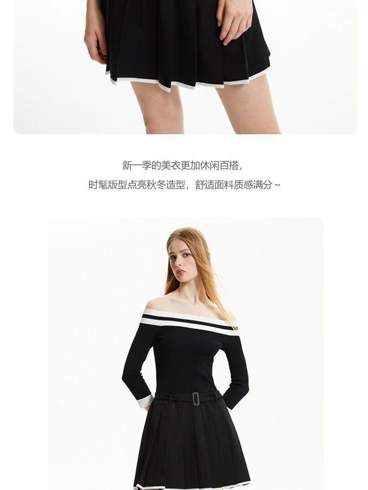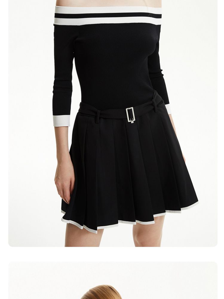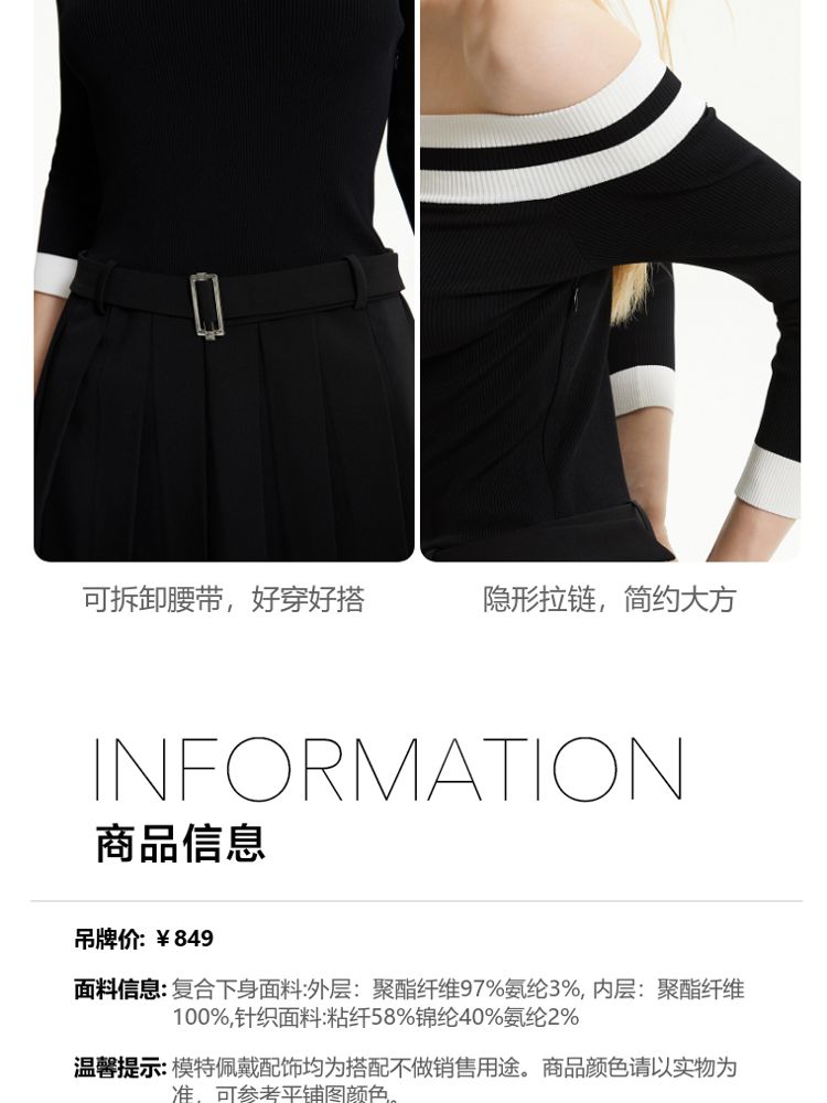 商品名称:【春夏专柜款】时髦辣妹七分袖一字领撞色连衣裙女气质百搭时尚 957329