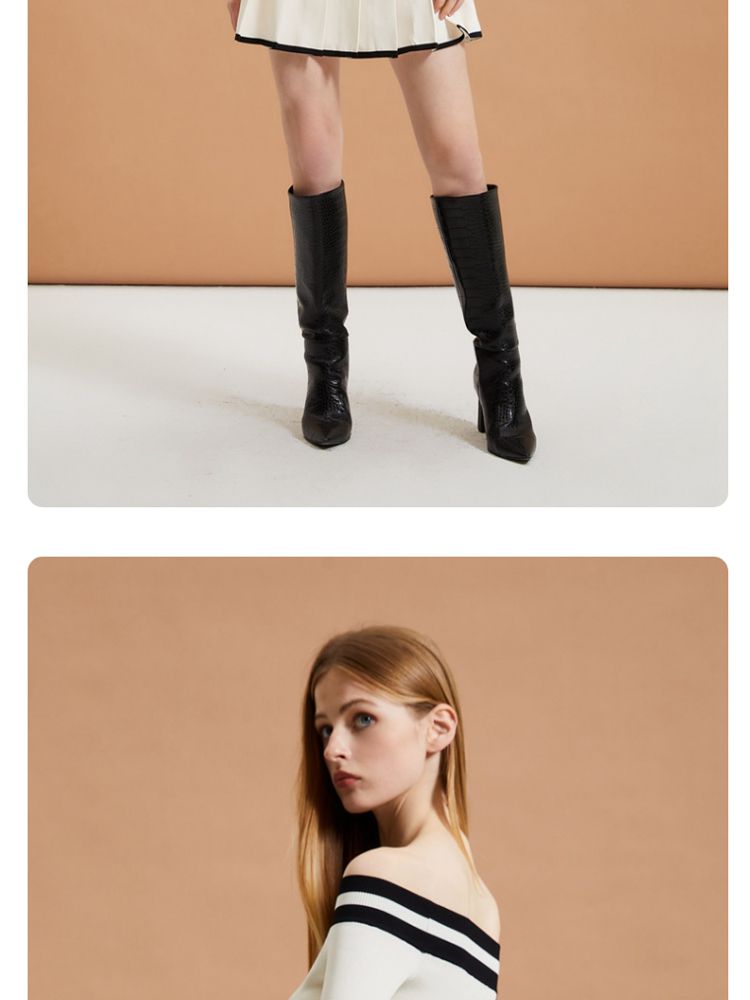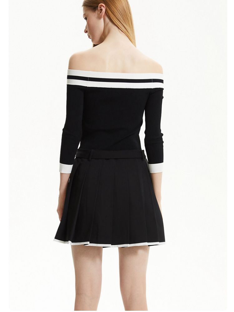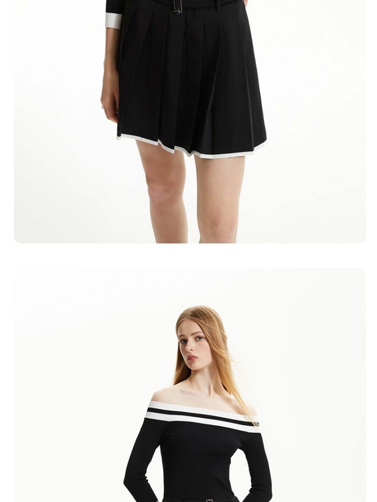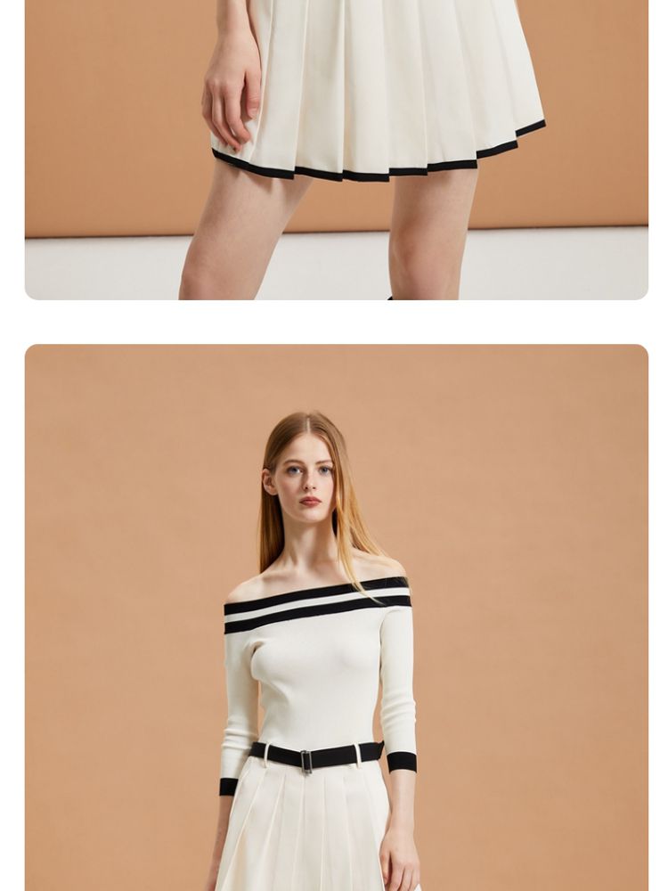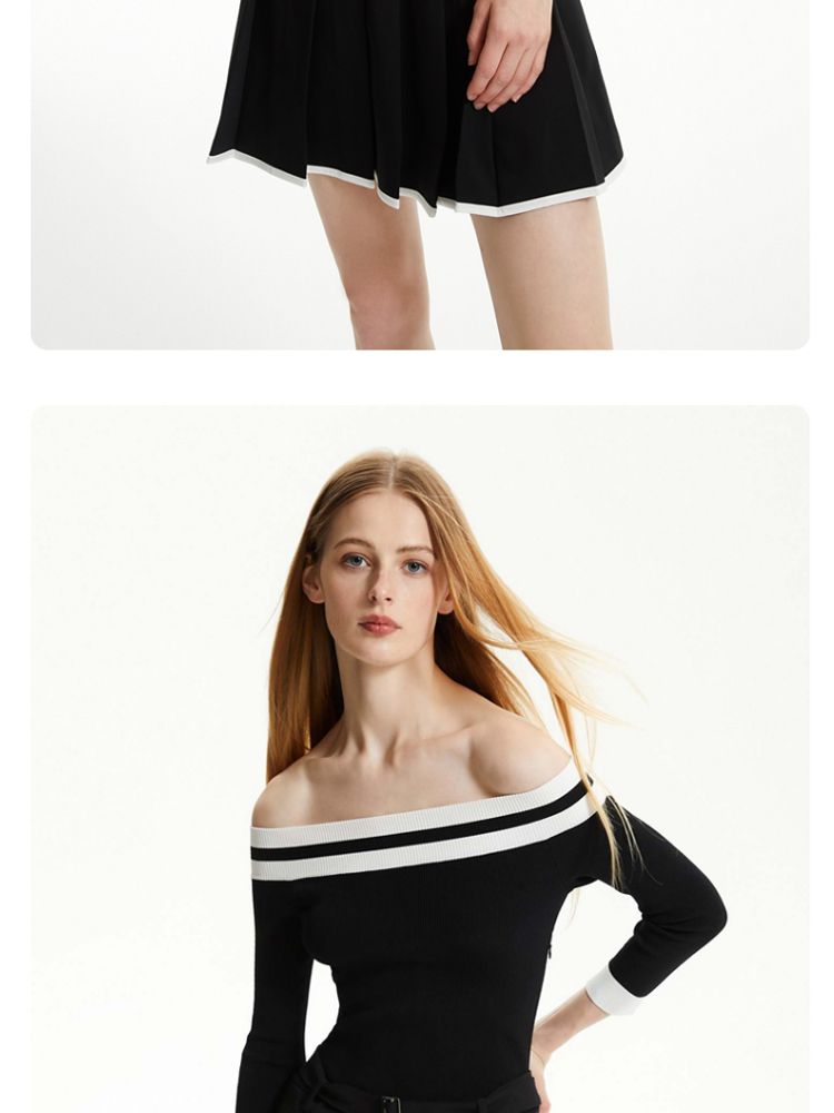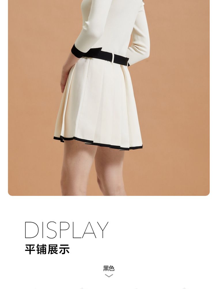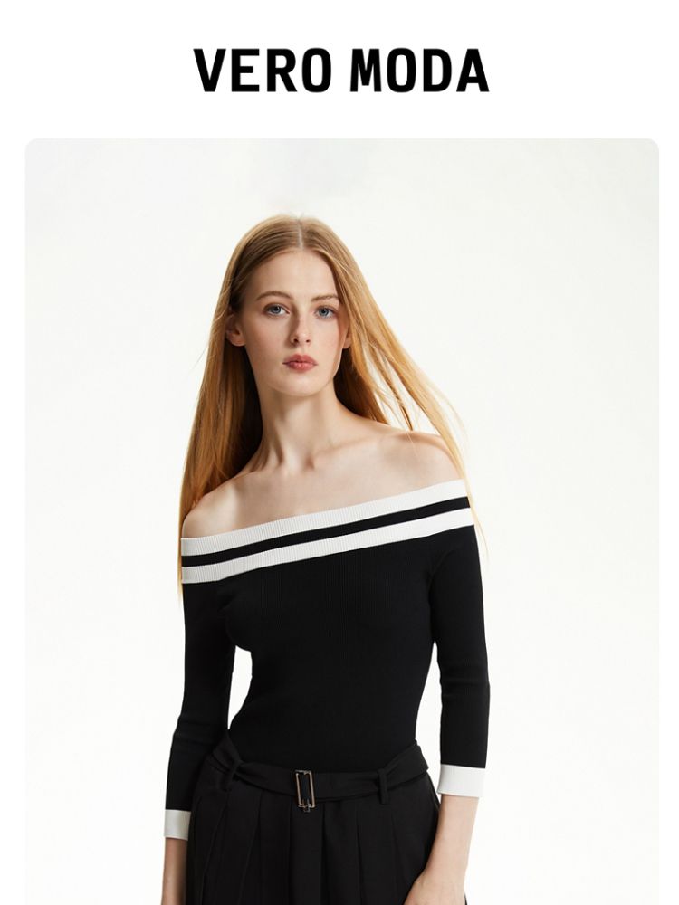 商品名称:【春夏专柜款】时髦辣妹七分袖一字领撞色连衣裙女气质百搭时尚 957329
